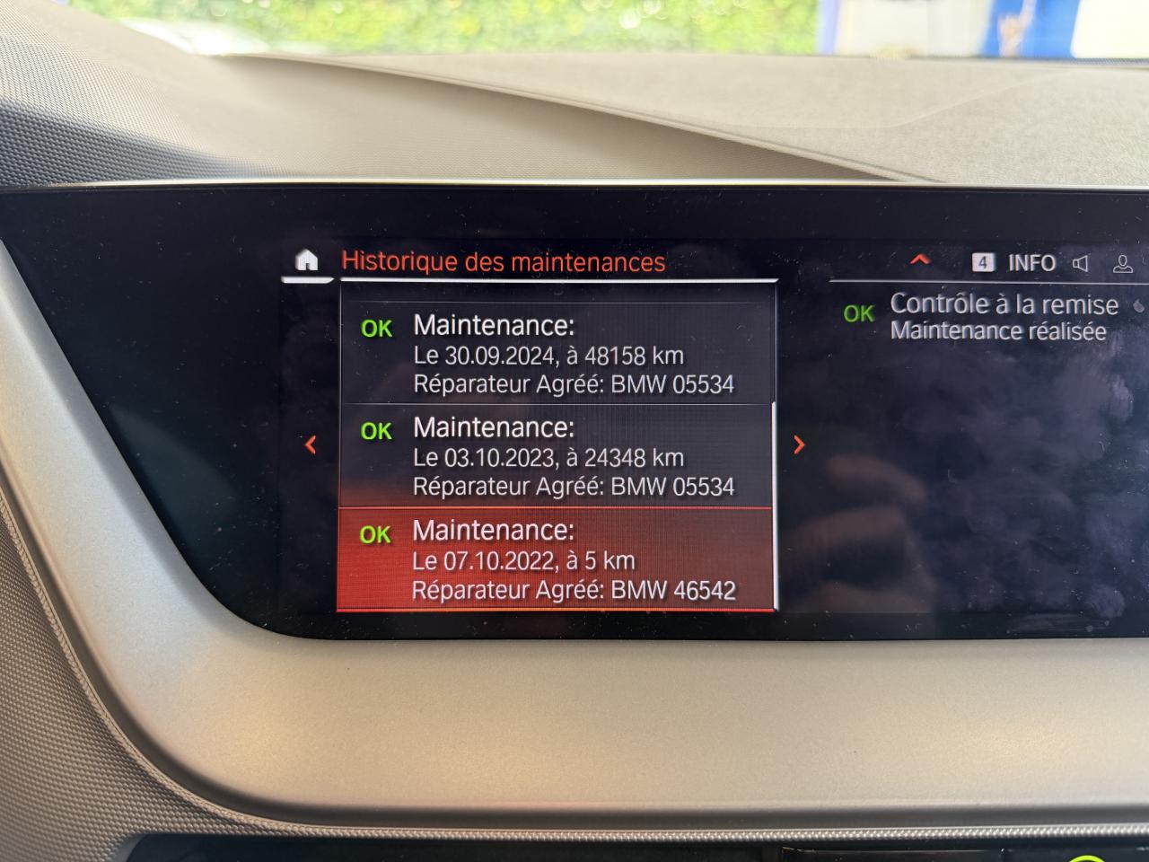 ABS, y compris assistant de freinageAccoudoir central avant coulissantAirbag passager déconnectableAirbags conducteur et passagerAirbags latéraux avantAirbags rideauxAnneaux d'arrimage dans le coffre sur le seuil de chargementAppuis-tête à toutes les placesAvertisseur de franchissement de ligne avec intervention dans la directionBaguettes de pare-chocs AV et AR couleur carrosserieBMW Live Cockpit Navigation ProBoîte steptronicClés radiocommandées à mémorisation automatique des réglages "Personal Profile"Climatisation automatiqueConnexion multiple de téléphonesContrôle de freinage en courbe CBCContrôle dynamique de la stabilité DSCContrôle Dynamique de la Traction DTCDémarrage sans cléDétecteur de pluie et allumage automatique des projecteursDéverrouillage électrique du coffre arrièreDirection Servotronic à assistance variable en fonction de la vitesseEclairage d'accueil et d'accompagnementFeux de jour à LEDFeux de stop bi-intensitéFonction Start/StopIndicateur de limitation de vitesseInserts décoratifs "Quartzsilver" mat grainé avec accents en chrome perléJantes alliage 16" style 517 Ferric GreyMesure individuelle de pression des pneumatiques avec 3 niveaux d'alerteOrdinateur de bord, Check-Control et indicateur de température extérieurePack Connected ProPoignées de portes couleur carrosseriePorte-gobelets sur la console centraleProjecteurs antibrouillard à LEDProjecteurs Full LEDProtection active des piétonsRécupération de l'énergie au freinageRéglage en hauteur du siège conducteurRétroviseurs extérieur côté conducteur à miroir asphériqueRétroviseurs extérieurs avec rappels de clignotants intégrésRétroviseurs extérieurs couleur carrosserieRétroviseurs extérieurs électriques et dégivrantsSellerie Tissu "Grid" AnthraciteSiège passager réglable en hauteurSortie d'échappement ronde de chaque côté chroméeSystème anti-collision à basse vitesseTapis de sol en veloursTeinte de carrosserie "Schwarz" unieToit couleur carrosserieTuner DABVerrouillage automatique des portes dès 15km/hVerrouillage centralisé des portes, du coffre et de la trappe à essenceVide-poches ergonomiques dans les portes avantVitres avant électriques avec système à impulsionVolant gainé cuir avec touches multifonctions