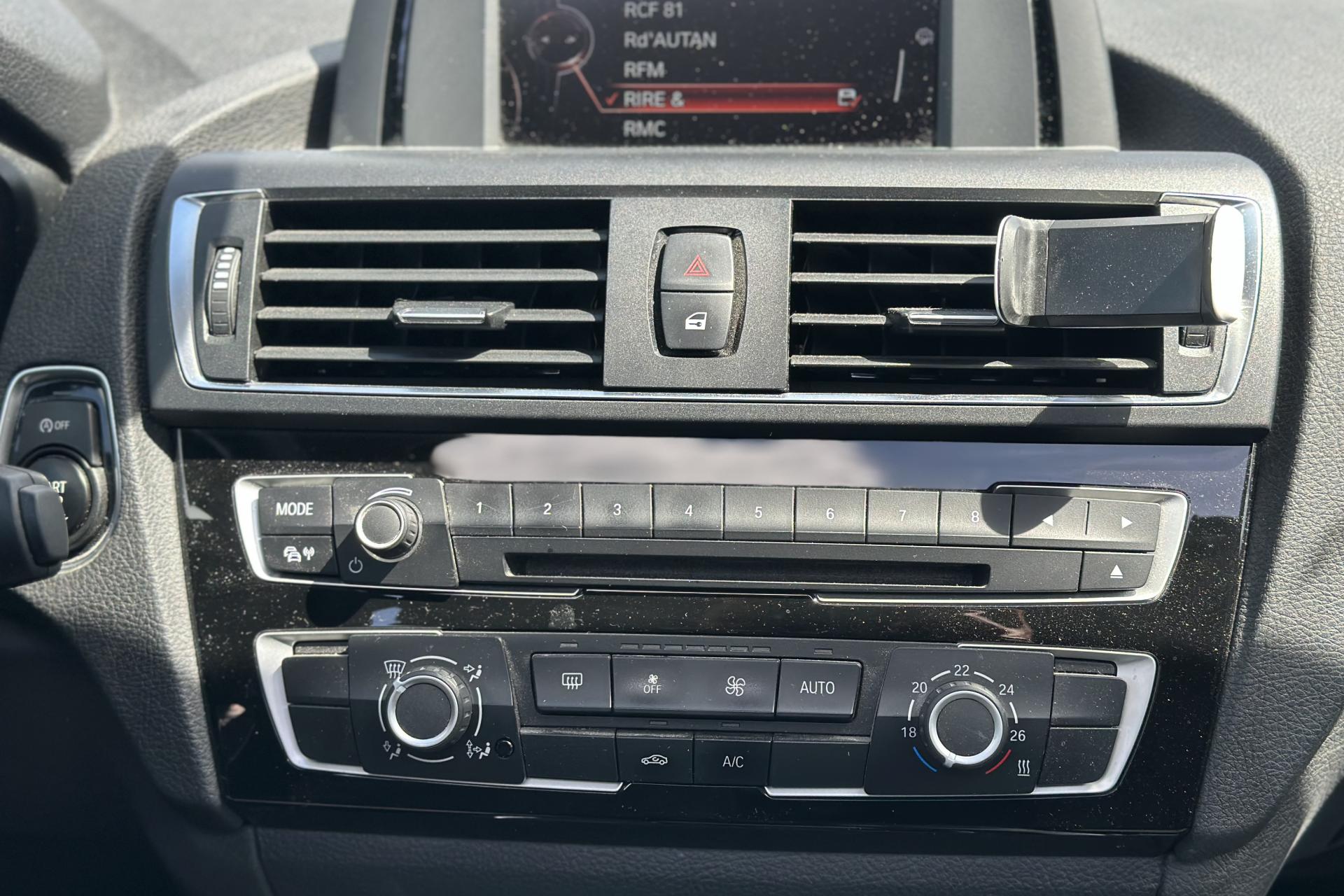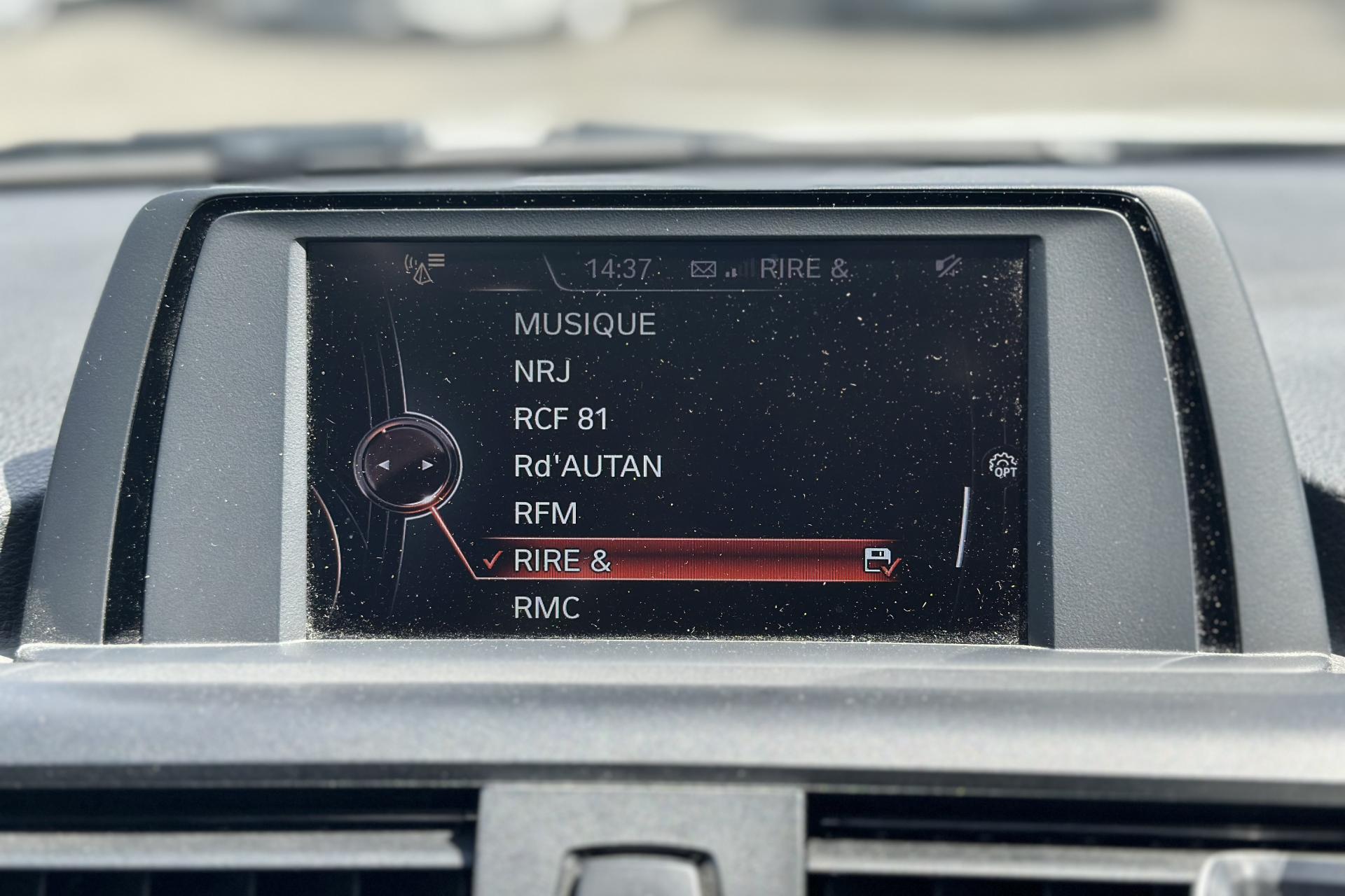 ABS (Antiblocage de roues)Accoudoir central avant coulissantAffichage BMW EfficientDynamics dans le cadran d'instrumentationAide au démarrage en côte, pré-charge du circuit de freinage au lever de pied, séchage des disques de freins et compensation du fadingAirbags conducteur et passagerAirbags de tête avant et arrière avec voile de protection contre les débris de verreAirbags latéraux avantAnneaux d'arrimage dans le coffreAntenne de toit « aileron de requin »Anti-démarrage électroniqueAppel d'Urgence IntelligentAppuis tête ajustablesAssistance au freinage d'urgenceAutoradio BMW Professional CD compatible MP3, 6 haut-parleurs, prise AUX-IN, port audio USB, double Tuner, RDS et streaming audio Bluetooth (avec "Music Search")Baguettes de seuil de portes sigléesBanquette arrière 3 places avec dossiers rabattables en deux parties (60/40)BMW TwinPower TurboBoîte de vitesses automatique à 8 rapportsCeintures de sécurité à 3 points (tous les sièges) avec prétensionneur pyrotechnique et limiteur de tension (à l'avant)Clés radiocommandées à mémorisation automatique des réglages "Personal Profile"Climatisation automatique avec filtre microporeux et fonction de recyclage d'airConsole centrale noir laquéeConstruction allégée intelligenteContour de calandre chroméContrôle de freinage en courbe CBCContrôle Dynamique de la Stabilité DSC+Contrôle Dynamique de la Traction DTCDémarrage sans clé via le bouton de démarrage Start/Stop avec contour chroméDésactivation de l'airbag du passager avantDétecteur de pluie et allumage automatique des projecteursDeux porte-boissons dans la console centrale avantDirection Servotronic à assistance variable en fonction de la vitesseEclairage de bienvenue et d'accompagnement "Follow-me-home"Eclairage plafonnier soft-on/soft-off et éclairage du coffreEcran d'information central couleur 6,5" (16,5 cm) avec commande par "Controller" iDrive et 6 touches de raccourcis programmablesEcrous antivolFeux arrière avec guides de lumière à LEDFeux de jour à LEDFeux de stop dynamiquesFiltre à particulesFixations Isofix aux places latérales arrièreFonction d'arrêt et de redémarrage automatique du moteurFreins à disques ventilés à l'avantIndicateur de maintenance CBS tenant compte des conditions de conduiteInserts décoratifs "Silber" satiné matInterface Bluetooth et port USBJantes en alliage léger 16'' style 378 à rayons en VKit fumeurKit rangementLimiteur et régulateur de vitesse avec maintien de la vitesse en descenteMesure individuelle de pression des pneumatiquesMiroirs de courtoisie intégrés aux pare-soleilNotice d'utilisation intégréeOrdinateur de bord, Check-Control et indicateur de température extérieurePare-chocs auto-régénérants jusqu'à 4 km/h avec éléments déformables jusqu'à 15 km/hPrise 12 V sur console centrale avantProjecteurs antibrouillardProtection contre les erreurs de ravitaillementRadars de stationnement arrière PDC avec représentation graphique des obstacles sur l'écran centralRappels de clignotants à LED intégrés aux rétroviseurs extérieursRétroviseurs et buses de lave-glace chauffantsRétroviseurs extérieurs à réglages électriquesSécurité enfants aux portes arrièreSélecteur de mode de conduite - 3 modes : "ECO PRO", "Confort" et "Sport"Sellerie tissu MoveServices Après-Vente connectés BMW TeleServicesSortie d'échappement simple et rondeSystème de récupération de l'énergie au freinageTapis de sol en veloursTeinte de carrosserie unieTouches de chrome autour des buses d'aération de la console centrale, de la radio et de la climatisationTouches multifonctions sur le volantTrain arrière multibrasTrain avant à double articulationTriangle de présignalisation avec kit de premiers secoursTroisième feu stop à LEDVerrouillage centralisé avec télécommandeVide-poches ergonomiques dans les portes avantVitrage teinté pour réduire l'échauffement dû à l'ensoleillementVitres avant et arrière électriques à impulsion avec système ant-ipincementVolant 3 branches gainé de cuir, réglable en hauteur et profondeur