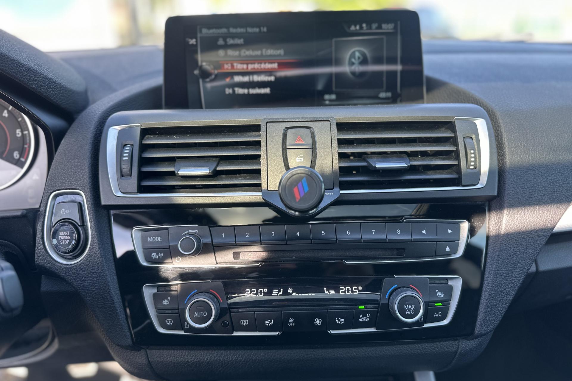 ABS (Antiblocage de roues)Accoudoir central AV coulissant, avec espace de rangement intérieurAffichage BMW EfficientDynamics dans le cadran d'instrumentationAide au démarrage en côte, pré-charge du circuit de freinage au lever de pied, séchage des disques de freins et compensation du fadingAirbags de tête avant et arrière avec voile de protection contre les débris de verreAirbags frontaux conducteur et passager (déconnectable côté passager)Airbags latéraux avantAnneaux d'arrimage dans le coffreAntenne de toit « aileron de requin »Anti-démarrage électroniqueAppel d'Urgence IntelligentAppuis tête ajustablesAssistance au freinage d'urgenceAutoradio BMW Professional CD, 6 haut-parleurs, prise AUX-IN, port audio USB et streaming audio Bluetooth (avec fonction "Music Search")Baguettes de seuil de portes sigléesBMW TwinPower TurboBoîte de vitesses manuelle 6 rapportsCeintures de sécurité à 3 points (tous les sièges) avec prétensionneur pyrotechnique et limiteur de tension (à l'avant)Chrome-Line extérieurClés radiocommandées à mémorisation automatique des réglages "Personal Profile"Clés radiocommandées avec application chroméeClimatisation automatique 3 zones avec filtre microporeux, fonction recyclage d'air automatique et capteur d'ensoleillementConsole centrale laquée noireConstruction allégée intelligenteContour de calandre chroméContrôle de freinage en courbe CBCContrôle Dynamique de la Stabilité DSC+Contrôle Dynamique de la Traction DTCDémarrage sans clé via le bouton de démarrage Start/Stop avec contour chroméDétecteur de pluie et allumage automatique des projecteursDeux porte-boissons dans la console centrale avantDiffuseurs aérodynamiques avant "Air Curtain"Direction Servotronic à assistance électrique variable selon la vitesseDossiers de banquette arrière rabattable 40/20/40 avec accoudoir central arrièreEclairage d'ambiance à deux couleurs au choixEclairage de bienvenue et d'accompagnement "Follow-me-home"Eclairage plafonnier soft-on/soft-off et éclairage du coffreEcran d'information central couleur 6,5" (16,5 cm) avec commande par "Controller" iDrive et 6 touches de raccourcis programmablesEcrous antivolFeux arrière avec guides de lumière à LEDFeux de stop dynamiquesFiltre à particulesFixations Isofix aux places latérales arrièreFonction d'arrêt et de redémarrage automatique du moteurFreins à disques ventilés à l'avant et à l'arrièreGrilles de calandre cerclées de chrome avec 11 barreaux verticaux chromésHotspot Wi-FiIndicateur de changement de rapportIndicateur de maintenance CBS tenant compte des conditions de conduiteInserts chromés sur le bouclier avantInserts décoratifs en bois précieux "Fineline Stream" soulignés d'"Oxidsilber" matInterface Bluetooth pour téléphone portable (mains-libres)Jantes en alliage léger 17" (43 cm) style 380 à rayons en YKit éclairageKit fumeurKit rangementLames décoratives avant et arrière en chrome brillantLimiteur et régulateur de vitesse avec maintien de la vitesse en descenteMesure individuelle de pression des pneumatiquesMiroirs de courtoisie intégrés aux pare-soleilNavigation multimédia BusinessOrdinateur de bord, Check-Control et indicateur de température extérieurePare-chocs auto-régénérants jusqu'à 4 km/h avec éléments déformables jusqu'à 15 km/hPneumatiques RSC permettant le roulage à platPrise de courant 12 V dans la console centrale avantProjecteurs antibrouillardProjecteurs bi-xénon avec lave-projecteursProtection contre les erreurs de ravitaillementRadars de stationnement arrière PDC avec représentation graphique des obstacles sur l'écran centralRappels de clignotants intégrés aux rétroviseurs extérieursRespect de la Norme anti-pollution EU6Rétroviseur intérieur électrochromeRétroviseurs extérieurs à réglages électriquesRétroviseurs extérieurs électrochromes rabattables électriquementRétroviseurs extérieurs et buses de lave-glace chauffantsSélecteur de mode de conduite - 3 modes : "ECO PRO", "Confort" et "Sport"Sellerie avec liserés et surpiqures spécifique à la ligneSellerie cuir DakotaServices Après-Vente connectés BMW TeleServicesSièges Advanced pour conducteur et passager avantSortie d'échappement ronde chroméeSystème de récupération de l'énergie au freinageTapis de sol en veloursTeinte de carrosserie "Schwarz" unieTouches de chrome autour des buses d'aération de la console centrale, de la radio et de la climatisationTrain arrière multibrasTrain avant à double articulationTriangle de présignalisation avec kit de premiers secoursTroisième feu stop à LEDVerrouillage centralisé avec télécommandeVide-poches ergonomiques dans les portes avantVitrage teinté pour réduire l'échauffement dû à l'ensoleillementVitres électriques avant avec commande par impulsion et protection anti-pincementVolant 3 branches gainé de cuir, multifonction, réglable en hauteur et en profondeur