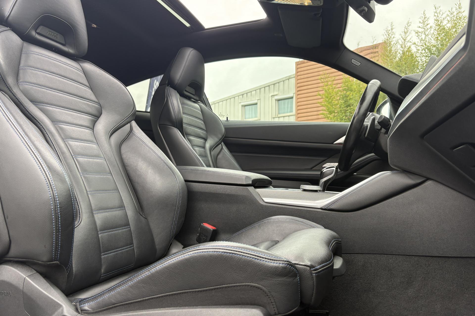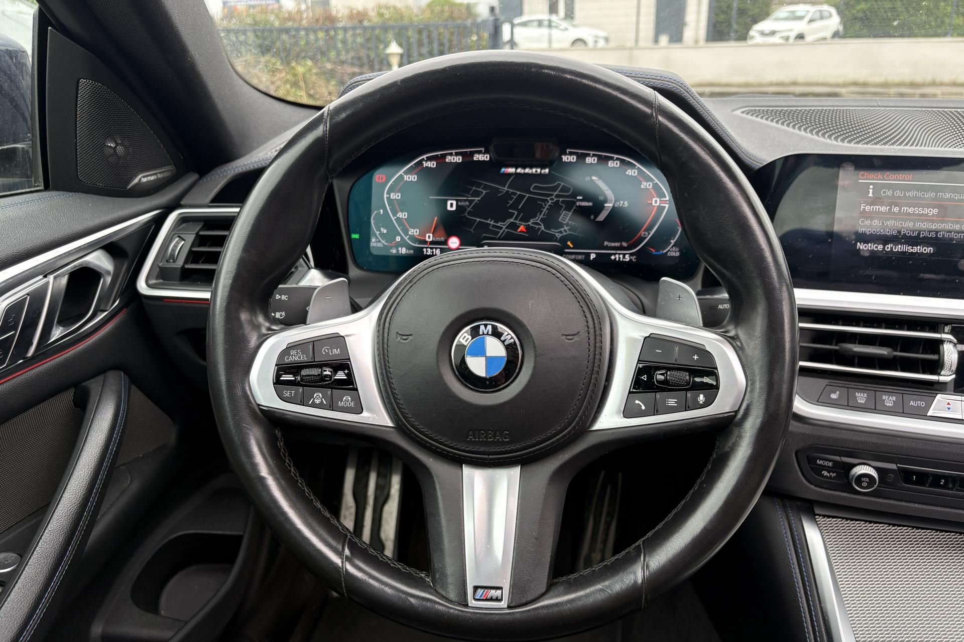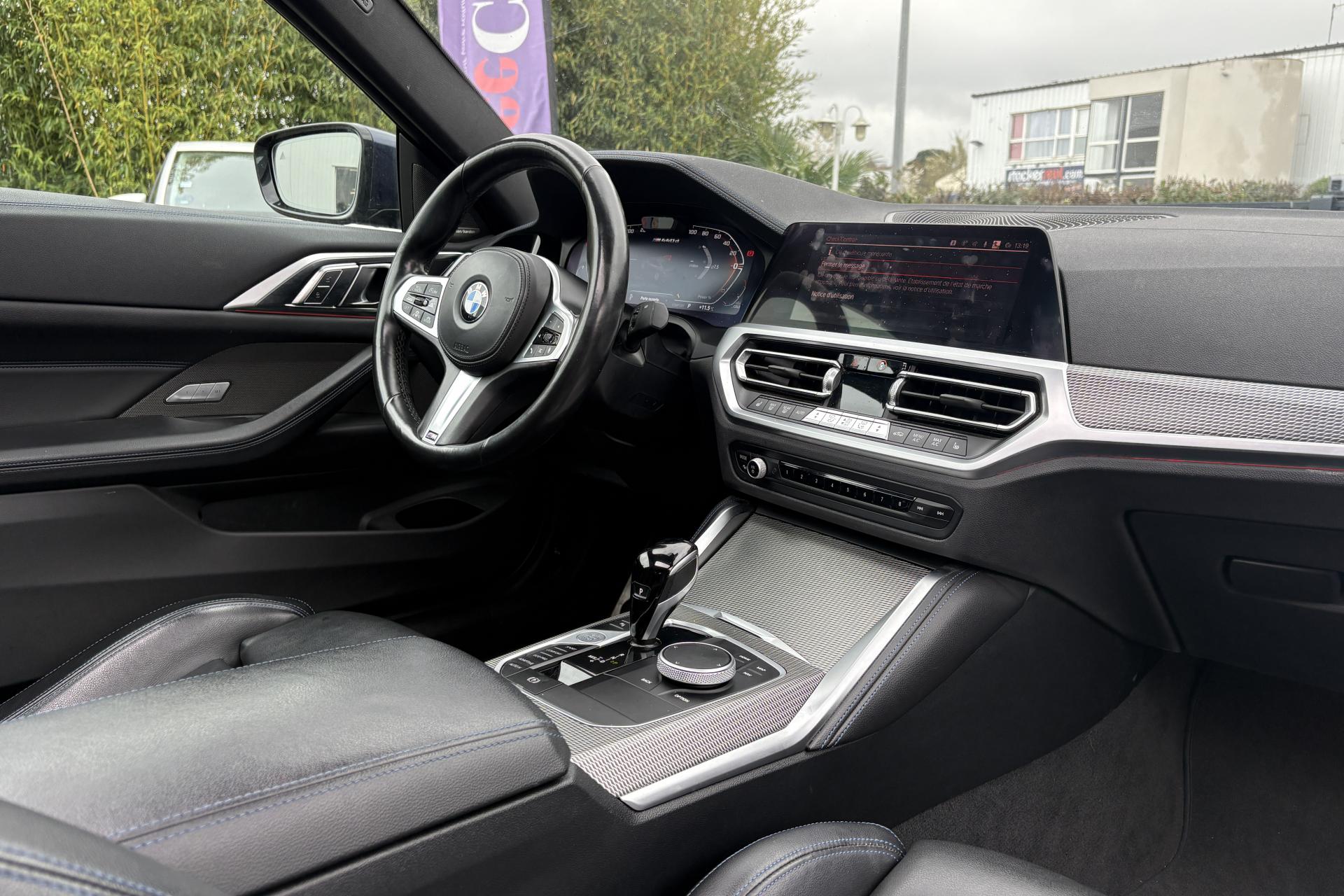 ABS (Antiblocage de roues)Accoudoir central avant coulissantAirbag passager déconnectableAirbags frontaux, latéraux et rideauxAlarme antivolAvertisseur de franchissement de ligne avec intervention dans la directionBadge M situé sur les ailes avantBMW Live Cockpit Navigation ProBoîte de vitesses automatique Sport à 8 rapports et palettes au volantCalandre "Mesheffect" avec applications en Cerium GreyCiel de pavillon anthraciteCiel de pavillon M AnthraciteClés spécifiques avec couleurs "M"Climatisation automatiqueContour de calandre en Cerium GreyContrôle de freinage en courbe CBCContrôle dynamique de la stabilité DSCContrôle Dynamique de la Traction DTCCoques de rétroviseurs exterieurs dans la teinte "Cerium Grey"Démarrage sans cléDésignation de la motorisation en Cerium GreyDésignation du modèle en Cerium GreyDétecteur de pluie et allumage automatique des projecteursDifférentiel autobloquant M SportDiffuseur arrière en “Dark Shadow” avec 1 sortie d’échappement trapézoïdale de chaque côté en “Cerium Grey”Direction DirectDrive à démultiplication variableEclairage d’ambianceFeux diurnes à LED et clignotants à LEDFixations ISOFIX aux places arrièreFreins M Sport bleusIndicateur de limitation de vitesseInserts décoratifs en Aluminium Tetragon soulignés de chrome perléJantes alliage 18’’ style 848 M à rayons doubles, bicoloresKit aérodynamique MKit rangementLame aérodynamique MPack Connected ProPark AssistPédalier spécifique MPréparation aux feux de route anti-éblouissementProjecteurs antibrouillard à LEDProjecteurs Full LEDProtection active des piétonsRéglage en largeur dossier conducteurRégulateur de vitesse avec fonction freinage en descenteRétroviseurs extérieurs rabattables électriquementRétroviseurs intérieur et extérieur côté conducteur électrochromiquesSellerie Alcantara / Similicuir Sensatec Schwarz avec surpiqûres bleuesShadow Line brillant BMW IndividualSièges Advanced conducteur et passager avant réglables en hauteur et inclinaison du dossierSpoiler arrière MSuspension DirectDriveSystème anti-collision à basse vitesseSystème Hi-FiTapis de sol spécifique MTeinte de carrosserie "Alpinweiss" unieTrappe à ski rabattable / Banquette arrière 40/20/40Volant M gainé cuir