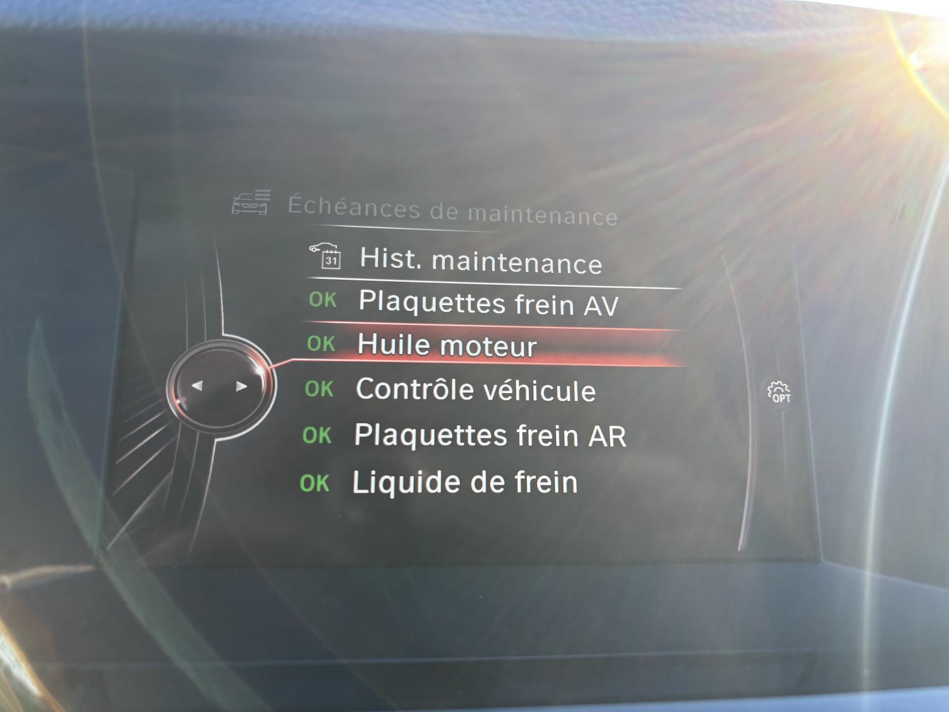 2 porte-boissons dans la console centrale avant3 prises 12VABS (Antiblocage de roues)Accoudoir central arrière avec vide-pochesAccoudoirs centraux avant et arrièreAffichage BMW EfficientDynamics dans le cadran d'instrumentationAide au démarrage en côte, pré-charge du circuit de freinage au lever de pied, séchage des disques de freins et compensation du fadingAirbags de tête avant et arrière avec voile de protection contre les débris de verreAirbags frontaux conducteur et passager (déconnectable côté passager)Airbags latéraux avantAnneaux d'arrimage dans le coffreAntenne de toit « aileron de requin »Anti-démarrage électroniqueAppel d'Urgence IntelligentAppuis tête ajustables et actifs à l'avantAssistance au freinage d'urgenceAutoradio BMW Professional CD, 6 haut-parleurs, prise AUX-IN, port audio USB et streaming audio Bluetooth (avec fonction "Music Search")Baguettes de seuil de portes sigléesBanquette arrière rabattable 40/20/40BMW TwinPower TurboCache-bagage amovible avec fonction dégagement et remise en place automatique lors de l'ouverture de la lunette arrière ou du hayonCalandre avec contour et barres verticales chroméesCapot moteur actif pour la protection des piétonsCapteur d'impact : déverrouillage du véhicule, allumage de l'éclairage de l'habitacle et activation des feux de détresseCeintures de sécurité avec prétensionneur pyrotechnique (à l'avant) et limiteur de tension (à l'avant et aux places arrières latérales).Chrome-Line extérieurClés radiocommandées à mémorisation automatique des réglages "Personal Profile"Clignotants arrière et intégrés aux rétroviseurs extérieurs à diodes électroluminescentesClimatisation automatique 2 zones avec filtre microporeux et fonction de recyclage d'airCommande électrique du hayonConstruction allégée intelligenteContrôle de freinage en courbe CBCContrôle Dynamique de la Stabilité DSC+Contrôle Dynamique de la Traction DTCDémarrage sans clé via le bouton de démarrage Start/Stop avec contour chroméDétecteur de pluie et allumage automatique des projecteursDétection de l'occupation du siège passager avantDeux porte-boissons dans l'accoudoir central arrièreDirection à assistance électrique variable en fonction de la vitesseEclairage de bienvenue et d'accompagnement "Follow-me-home"Eclairage plafonnier soft-on/soft-off et éclairage du coffreEcran d'information central couleur avec commande par "Controller" iDrive et 8 touches de raccourcis programmablesEcran de contrôle central couleur 6,5" (16,5 cm)Ecrous antivolFeux arrière avec guides de lumière à LEDFeux de stop dynamiquesFilet de rangement côté passager sur le tunnel de transmissionFiltre à particulesFixations ISOFIX pour sièges aux places latérales arrières pour sièges enfantFonction d'arrêt et de redémarrage automatique du moteurFrein de parking électromécaniqueFreins à disque ventilés à l'avant et à l'arrièreIndicateur de maintenance tenant compte des conditions de conduiteInserts décoratifs brillants "Schwarz"Instrumentation avec écran couleur d'information 5,7'' (14,5 cm)Interface Bluetooth pour téléphone portable (mains-libres)Jantes en alliage léger 17'' style 236 à rayons en VKit fumeurKit mobilitéLunette arrière à ouverture indépendante du hayonMesure individuelle de pression des pneumatiquesMesures BMW EfficientDynamicsMiroirs de courtoisie éclairés intégrés aux pare-soleilNotice d'utilisation de la voiture intégrée et carnet d'entretien électronique avec BMW Service HistoryOrdinateur de bord avec Check-Control et indicateur de température extérieurePare-chocs auto-régénérants jusqu'à 4 km/h avec éléments déformables jusqu'à 15 km/hPlanche de bord en cuir Merino BMW Individual en relation avec Sellerie tout-cuir Merino fine fleur BMW IndividualPoches aumonières dans le dossier des sièges avantPortes arrière avec sécurité enfantProjecteurs bi-xénon avec lave-projecteursProtection contre les erreurs de ravitaillementQuatre anneaux lumineux à technologie DEL pour éclairage diurneRadars de stationnement avant et arrière PDC avec représentation graphique des obstacles sur l'écran d'information centralRails de toit noir matRangement dans la console centrale avantRégulateur de vitesse avec fonction freinage (pour maintenir la vitesse dans les descentes) et limiteur de vitesseRépartiteur de freinage EBVRespect de la Norme anti-pollution EU6Rétroviseur intérieur électrochromeRétroviseurs et buses de lave-glace chauffantsRétroviseurs extérieurs à réglages électriquesSélecteur de mode de conduite - 3 modes : "ECO PRO", "Confort" et "Sport"Sellerie tissu DiagonalServices Après-Vente connectés BMW TeleServicesSortie d'échappement double à gaucheSystème de récupération de l'énergie au freinageTrain arrière multibrasTrain avant à double articulationTriangle de présignalisation avec kit de premiers secoursTroisième feu stop à LEDVerrouillage centralisé avec télécommandeVide-poches ergonomiques dans les portes avant et arrièreVide-poches ergonomiques dans les portes avant et sous le volantVitrage teinté pour réduire l'échauffement dû à l'ensoleillementVitres avant et arrière électriques à impulsion avec système ant-ipincementVolant 3 branches gainé cuir avec touches multifonctionsVolant réglable en hauteur et en profondeur