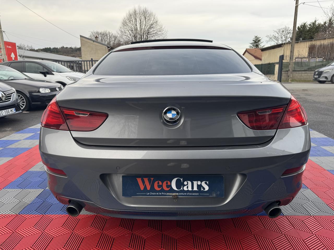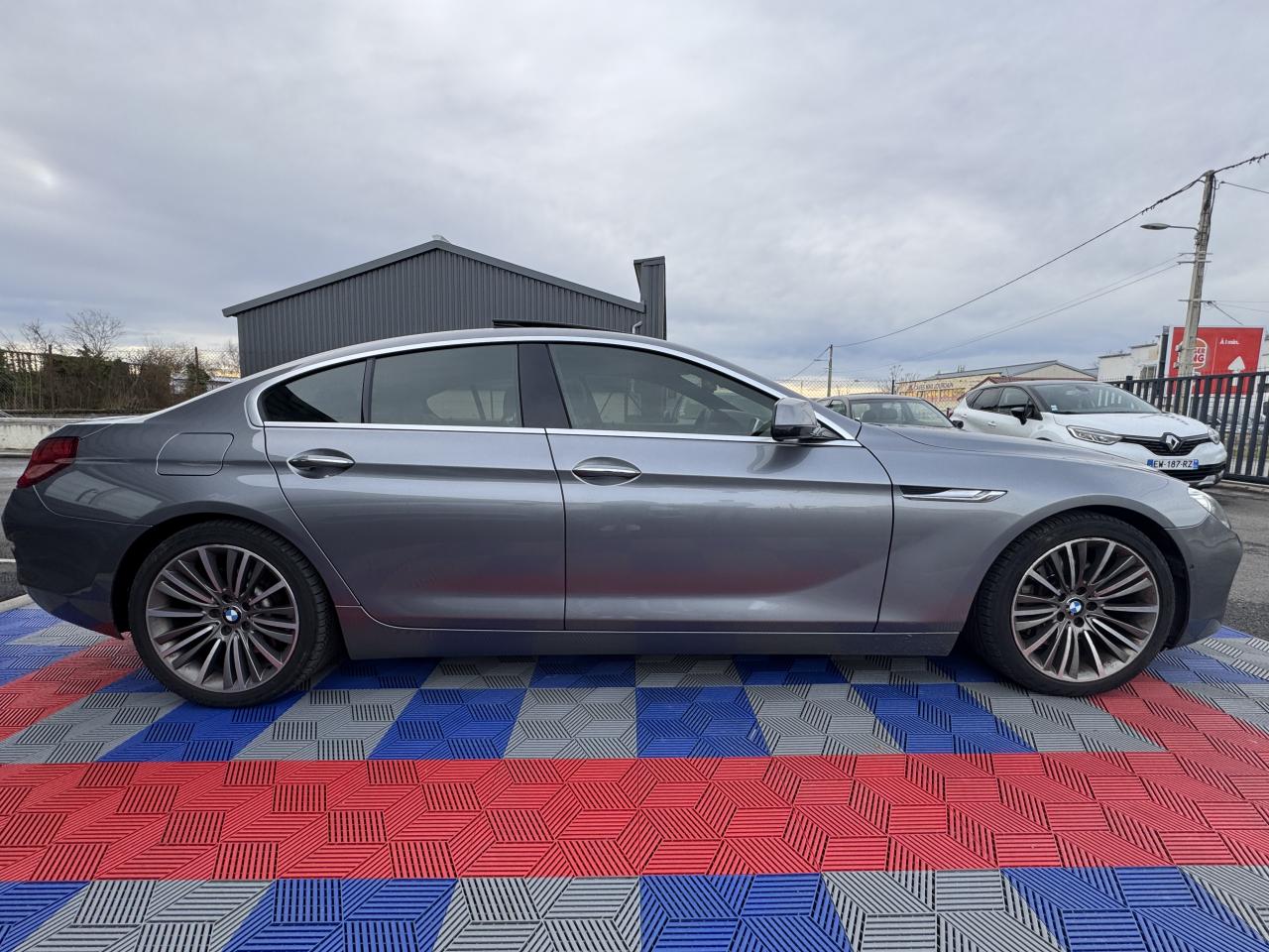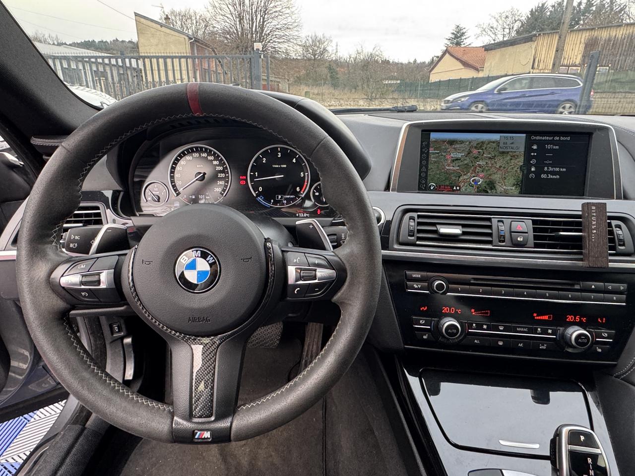 3 prises 12V3ème feu stop à technologie LEDABS (Antiblocage de roues)Accès ConfortAccoudoir central avant et arrièreAffichage BMW EfficientDynamics dans le cadran d'instrumentationAirbags de tête avant/arrièreAirbags frontaux avec détecteur d'occupation du siège passagerAirbags latéraux pour conducteur et passager avantAluminium Line satinéAnti-démarrage électronique EWS IIIAppuie-tête actifs à l'avantBanquette arrière équipée d'une 3ème place assise (4+1), rabattable 60/40Bouton Start/Stop avec démarrage sans manipulation de la cléCaméra de reculCeintures 3 points pour toutes les placesChrome-Line extérieurCiel de pavillon "Anthrazit "Clés radiocommandées à mémorisation automatique des réglages "Personal Profile"Clignotants blancs à technologie LEDClimatisation automatique bi-zone à fonctionnalités étenduesCompteur de vitesse et compte tours cerclés de chromeConstruction allégée intelligenteContour de calandre chromé avec barres longitudinales noiresContrôle de freinage en courbe CBCContrôle dynamique du freinage (DBC)Désactivation des airbags passager avant avec commutateur à cléDétecteur de pluie et allumage automatique des projecteursDeux porte-boissons dans la console centrale avant et dans l'accoudoir central arrièreDirection à assistance électriqueDirection Servotronic à assistance variable en fonction de la vitesseEclairage d’ambianceEcran de contrôle central couleur 10.2'' (25,9 cm) à affichage 16/9èmeEcrous de jantes antivolEmbouts d'échappement ronds chromés, à gauche et à droiteFermeture assistée des portières - Soft CloseFeux de stop bi-intensitéFilet de rangement côté passager sur le tunnel de transmissionFixations ISOFIX pour sièges enfant à l'arrièreFonction d'arrêt et de redémarrage automatique du moteurFrein de parking électrique avec fonction "Automatic Hold"Freins à disques ventilés à l'avant et à l'arrièreIndicateur de perte de pression des pneumatiques (RPA)Inscription "Gran Coupé" sur la découpe de vitre arrièreInserts chromés situés entre les prises d'air et les projecteurs antibrouillardInserts décoratifs en bois précieux de peuplier veiné '' Grau ''Instrumentation 9.2'' (23,4 cm) avec technologie Black PanelJantes en alliage léger 19" style 366 à rayons en V, avec pneumatiques RSC permettant le roulage à platKit EclairageKit fumeurMesures BMW EfficientDynamicsMode "ECO PRO" sur la commande de régulation du comportement dynamiqueMotorisations BMW TwinPower TurboPoches aumônières au dos des sièges avantPréparation BMW ConnectedDrive et interface Bluetooth pour téléphone portable avec port audio USBPréparation et interface Bluetooth pour téléphone portable avec port audio USBProjecteurs antibrouillard à LEDProjecteurs bi-Xénon avec éclairage diurne à quatre anneaux lumineux et lave projecteursRéglage électrique de la colonne de direction avec fonction mémoireRégulateur de vitesse avec fonction freinage et limiteur de vitesseRépartiteur de freinage (EBV)Rétroviseurs extérieurs couleur carrosserie à réglages électriques et dégivrants asphériques, dégivrants et rabattables électriquementRétroviseurs intérieur et extérieurs électrochromesSellerie cuir DakotaSeuils de porte chromés et siglés BMWSièges avant avec soutien lombaireSièges avant chauffantsSièges avant confortSièges avant électriques à mémoires conducteurSurpiqûres contrastées assorties à la couleur du cuirSystème antipatinage (ASC)Système d'aide au stationnement PDC avant et arrièreSystème de contrôle dynamique de la stabilité (DSC+)Système de navigation ProfessionalSystème de navigation Professional 3D avec lecteur DVD compatible MP3, disque dur de 12Go pour stockage de musique et 8 touches programmablesSystème de récupération de l'énergie au freinageSystème Hi-FiSystème Hi-Fi 9 haut-parleurs 205 WattsSystème Hi-Fi ProfessionalSystème iDrive avec fonctionnalités optimisées et touches de raccourciTableau de bord en cuirTeinte de carrosserie métalliséeTeinte de carrosserie unieToit panoramique en verreTriangle de présignalisation avec trousse de premiers secoursVerrouillage centralisé à télécommandeVitrage calorifugeVitres avant et arrière électriques à impulsion avec système ant-ipincementVitres sans encadrement à l'avant et à l'arrièreVolant Sport 3 branches gainé cuir avec touches multifonctionsVolets d'air pilotés