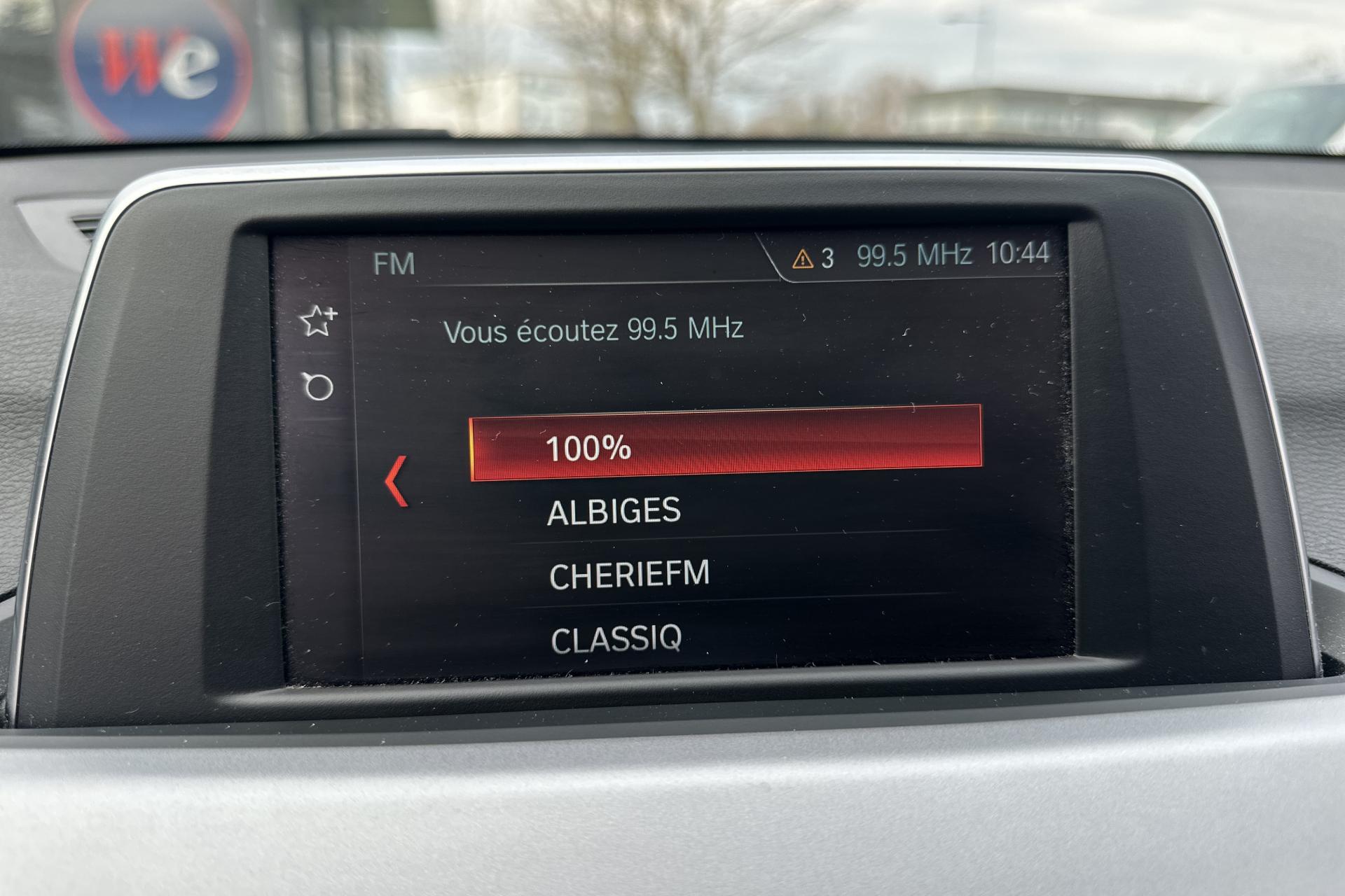 ABS (Antiblocage de roues)Accoudoir central arrière avec 2 porte-boissons et compartiment de rangement intégrésAccoudoir central avant coulissantAide au démarrage en côte, pré-charge du circuit de freinage au lever de pied, séchage des disques de freins et compensation du fadingAirbags de tête avant et arrière avec voile de protection contre les débris de verreAirbags frontaux conducteur et passager (déconnectable côté passager)Airbags latéraux avantAluminium Line satinéAntenne de toit « aileron de requin »Anti-démarrage électroniqueAppel d'Urgence IntelligentAppuis tête ajustablesAssistance au freinage d'urgenceAutoradio BMW Professional CD, 6 haut-parleurs, prise AUX-IN, port audio USB et streaming audio Bluetooth (avec fonction "Music Search")Baguettes de seuil de portes sigléesBanquette arrière 3 places avec dossiers rabattables en trois parties (40/20/40)Boîte de vitesses manuelle 6 rapportsBouton de démarrage Start/Stop avec contour chroméBuses de lave-glace chauffantesCalandre cerclée de chrome avec 7 barreaux verticaux noirsCapteur d'impact : déverrouillage du véhicule, allumage de l'éclairage de l'habitacle et activation des feux de détresseCeintures de sécurité à 3 points (tous les sièges) avec prétensionneur pyrotechnique et limiteur de tension (à l'avant)Clés radiocommandées à mémorisation automatique des réglages "Personal Profile"Climatisation automatique 2 zones avec filtre microporeux et fonction de recyclage d'airContrôle de freinage en courbe CBCContrôle Dynamique de la Stabilité DSC+Contrôle Dynamique de Traction DTCDétecteur de pluie et allumage automatique des projecteursDirection Servotronic à assistance variable en fonction de la vitesseEclairage de bienvenue et d'accompagnement "Follow-me-home"Eclairage plafonnier soft-on/soft-off et éclairage du coffreEcran d'information central couleur 6.5" (16,5 cm) avec commande par "Controller" iDrive et 8 touches de raccourcis programmablesEcrous antivolFeux arrière avec guides de lumière à LEDFeux de jour à LEDFeux de stop dynamiquesFreins à disques ventilés à l'avant et à l'arrièreIndicateur de maintenance CBS tenant compte des conditions de conduiteInserts décoratifs Oxidsilber matInterface Bluetooth pour téléphone portable (mains-libres)Jantes en alliage léger 17" style 560 à rayons en VKit de mobilité BMWKit rangementMesure individuelle de pression des pneumatiquesMesures BMW EfficientDynamicsMiroirs de courtoisie intégrés aux pare-soleilNotice d'utilisation intégréeOrdinateur de bord avec Check-Control et indicateur de température extérieureOuverture et fermeture électriques du hayonPoches aumônières aux dos des sièges avantPorte-gobelets avant (dans la console centrale)Portes arrières avec sécurité enfantsProjecteurs antibrouillardProjecteurs Full LEDRails de toit Aluminium Line satinéRégulateur de vitesse avec fonction freinage pour maintenir la vitesse en descenteRétroviseur intérieur électrochromeRétroviseurs extérieurs électriques et dégivrantsRétroviseurs extérieurs électrochromes rabattables électriquementSélecteur de mode de conduite avec mode ECO PROSellerie tissu "Grid"Services Après-Vente connectés BMW TeleServicesServices BMW ConnectedDriveSortie d'échappement simple à gauche, ronde et chroméeSystème de fixation ISOFIX pour sièges enfants aux places latérales AR passager AVSystème de manoeuvres automatiques "Park Assist" avec radars de stationnement avant et arriere PDCSystème de navigation BusinessTapis de sol en veloursTeinte de carrosserie "Schwarz" unieTrain arrière multibrasTrain avant à double articulationTriangle de présignalisation avec trousse de premier secoursTroisième feu stop à LEDVerrouillage centralisé avec télécommandeVitres avant et arrière électriques à impulsion avec système ant-ipincementVolant 3 branches gainé de cuir, multifonction, réglable en hauteur et en profondeurVolant Sport