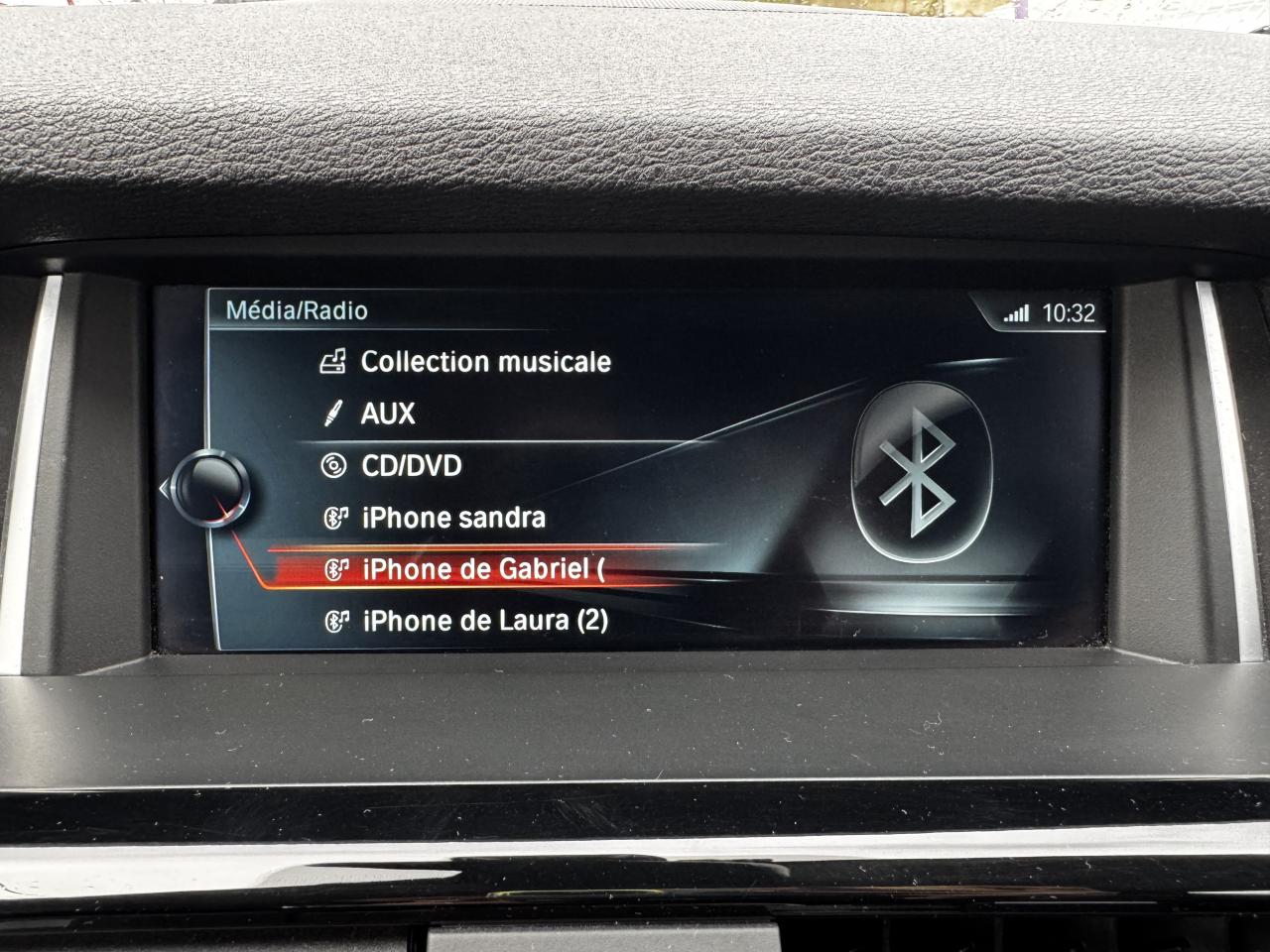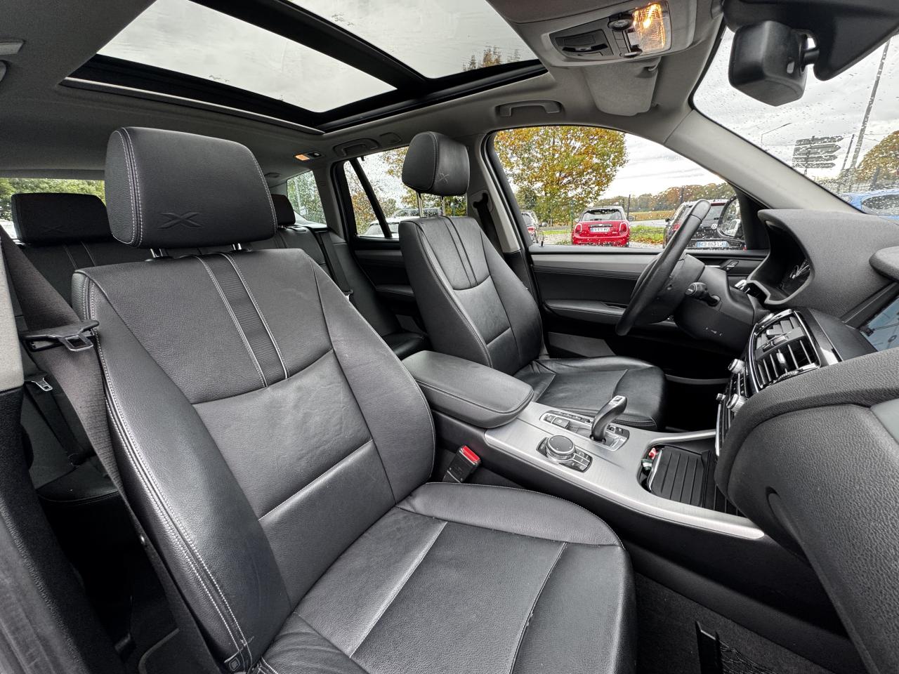 ABS (Antiblocage de roues)Accoudoir central avant et arrièreAffichage BMW EfficientDynamics dans le cadran d'instrumentationAide au démarrage en côte, pré-charge du circuit de freinage au lever de pied, séchage des disques de freins et compensation du fadingAirbags conducteur et passagerAirbags de tête avant et arrière avec voile de protection contre les débris de verreAirbags latéraux avantAluminium Line satinéAnneaux d'arrimage dans le coffreAntenne de toit « aileron de requin »Anti-démarrage électroniqueAppel d'Urgence IntelligentAppuie-tête actifs à l'avant, réglables en hauteur et en inclinaisonAssistance au freinage d'urgenceAutoradio BMW Professional CD, 6 haut-parleurs, prise AUX-IN, port audio USB et streaming audio Bluetooth (avec fonction "Music Search")Baguettes de seuil de portes sigléesBanquette arrière 3 places avec dossiers rabattables en trois parties (40/20/40)BMW TwinPower TurboBoîte de vitesses automatique à 8 rapportsBouquet Services BMW ConnectedDriveCache-bagages amovible à enrouleurCapteur d'impact : déverrouillage du véhicule, allumage de l'éclairage de l'habitacle et activation des feux de détresseCarnet d'entretien électronique embarqué "BMW Service History"Ceintures de sécurité avec prétensionneur pyrotechnique et limiteur de tension à l'avantClé radiocommandée avec application chroméeClés radiocommandées à mémorisation automatique des réglages "Personal Profile"Climatisation automatique 3 zone, avec aérateurs à l'arrièreCombiné d'instrumentation avec écran couleur d'informationCommande électrique du hayon (hauteur d'ouverture paramétrable)Construction allégée intelligenteContour de calandre chroméContrôle de freinage en courbe CBCContrôle Dynamique de la Stabilité DSC+Contrôle Dynamique de Traction DTCDémarrage sans clé via le bouton de démarrage Start/Stop avec contour chroméDétecteur de pluie et allumage automatique des projecteursDeux porte-boissons occultables dans la console centrale avant et deux dans l'accoudoir central arrièreDirection à assistance électrique variable en fonction de la vitesseEclairage de bienvenue et d'accompagnement "Follow-me-home"Eclairage plafonnier soft-on/soft-off et éclairage du coffreEcran d'information central couleur avec commande par "Controller" iDrive et 8 touches de raccourcis programmablesEcrous antivolFeux de stop dynamiquesFilet de séparation du coffre à bagagesFiltre à particulesFixations Isofix aux places latérales arrièreFonction d'arrêt et de redémarrage automatique du moteurFrein de parking électromécanique avec fonction "Automatic Hold"Freins à disques ventilés à l'avant et à l'arrièreGrilles de calandre avec barres verticales en chrome matHabillage des bas de pare-chocs avant, arrière et latéraux avec inserts couleur titaneIndicateur de maintenance CBS tenant compte des conditions de conduiteInserts décoratifs en aluminium brosséInserts décoratifs en chrome mat au niveau des entrées d'air latérales du bouclier avantInterface Bluetooth pour téléphone portable (mains-libres)Jantes en alliage léger 18” style 607 à rayons en YKit EclairageLave-pharesMesure individuelle de pression des pneumatiquesMiroirs de courtoisie éclairés intégrés aux pare-soleilNavigation multimédia ProfessionalNotice d'utilisation intégréeOrdinateur de bord avec Check-Control et indicateur de température extérieurePare-chocs auto-régénérants jusqu'à 4 km/h avec éléments déformables jusqu'à 15 km/hPneumatiques RSC permettant le roulage à platPrises 12 V (4) : console centrale avant, console centrale arrière, accoudoir central avant et coffreProjecteurs antibrouillardProjecteurs bi-xénonProtection contre les erreurs de ravitaillementRadars de stationnement avant et arrière PDCRails de toit accolés au pavillonRails de toit Aluminium Line satinéRangements dans l'habitacleRangements dans le coffreRappels de clignotants à LED intégrés aux rétroviseurs extérieursRégulateur de vitesse avec fonction freinage pour maintenir la vitesse en descenteRespect de la Norme anti-pollution EU6Rétroviseur intérieur électrochromeRétroviseurs extérieurs à réglages électriques et dégivrants, avec miroir asphérique côté conducteurRétroviseurs extérieurs électrochromes rabattables électriquementRétroviseurs extérieurs et buses de lave-glace chauffantsSélecteur de mode de conduite - 3 modes : "ECO PRO", "Confort" et "Sport"Sellerie cuir NevadaSellerie cuir Nevada avec empiècement dans le dossier et embossage “X” sur les appuis-têteServices Après-Vente connectés BMW TeleServicesSeuil de chargement du coffre avec insert en acier inoxydableSeuils de portes avant avec inscription “BMW xLine”Sièges avant électriques à mémoires conducteurSortie d'échappement simple et ovaleSorties d'échappement en chrome matSystème de contrôle de la descente (HDC)Système de récupération de l'énergie au freinageTapis de sol en veloursTechnologie 4 roues motrices intelligente xDriveTouches multifonctions sur le volantTrain arrière multibrasTrain avant à double articulationTriangle de présignalisation avec kit de premiers secoursTroisième feu stop à LEDVerrouillage centralisé avec télécommandeVitrage teinté pour réduire l'échauffement dû à l'ensoleillementVitres avant et arrière électriques à impulsion avec système ant-ipincementVolant réglable en hauteur et en profondeurVolant Sport gainé cuir