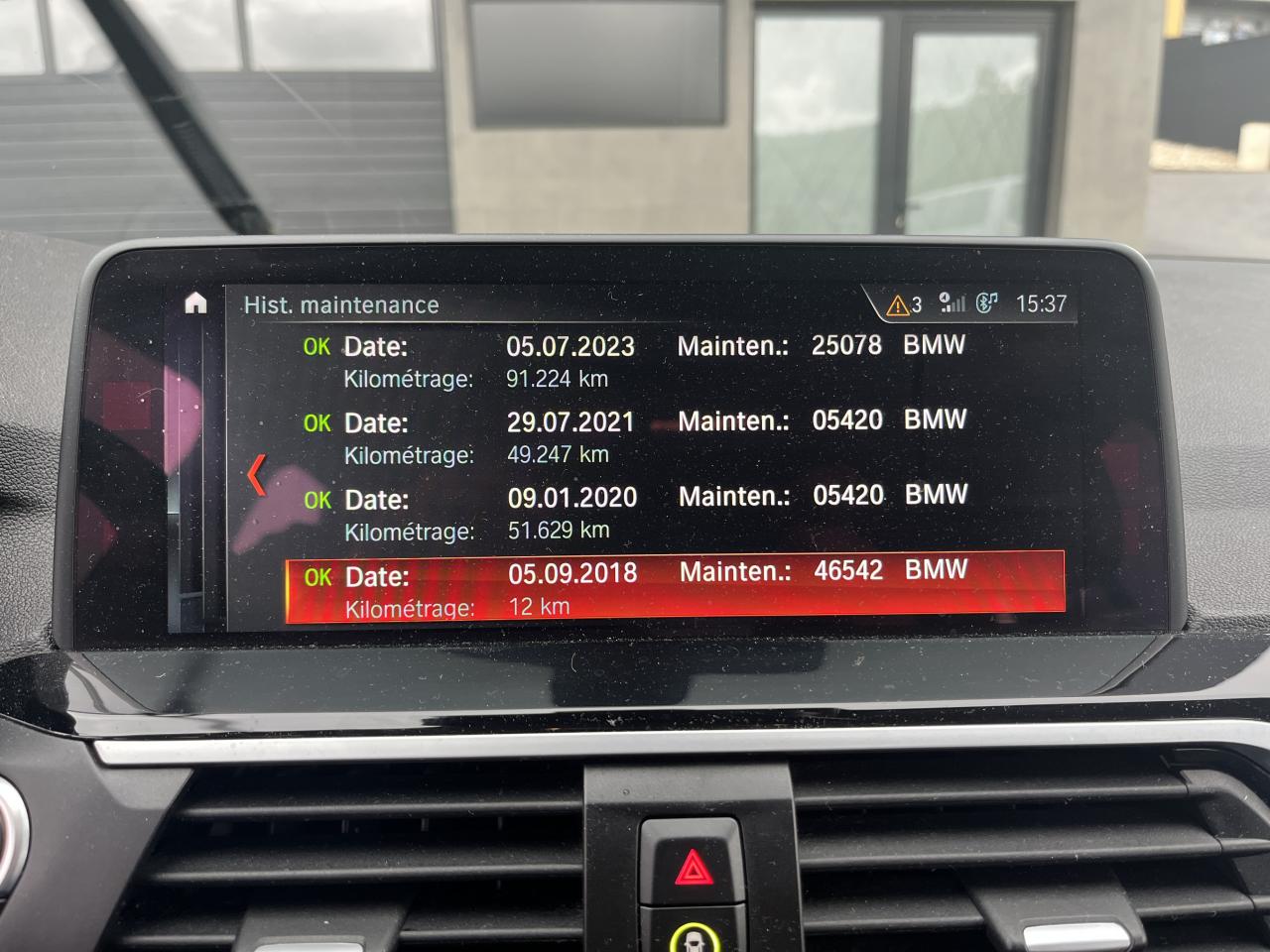 5 siègesABS avec aide au freinage d'urgenceAccoudoir central avant et arrièreAirbag passager avant déconnectableAirbags conducteur et passager avantAirbags de tête avant/arrièreAirbags latéraux conducteur et passager avantAntenne de toit « aileron de requin »Anti-démarrage électronique EWS IVAppel d'Urgence Intelligent (durée de vie de la voiture)Appui lombaire ajustableAppuis-tête avant et arrièreAttention Assist : système de détection de somnolenceAutoradio BMW Professional, 8 touches de favoris programmables et "Controller" iDrive avec touches de raccourci, compatibilité MP3, double Tuner RDS FM, info-route (TP)Baguettes de seuil de porte à l'avantBanquette arrière rabattable 40/20/40BMW AppsBMW Connected+BMW TwinPower TurboBoîte de vitesses automatique à 8 rapportsBouton de démarrage Start/Stop sans manipulation de la cléBuses de lave-glace chauffantesCapacite du réservoir augmentéeCeintures de sécurité 3 pointsClés radiocommandées à mémorisation automatique des réglages "Personal Profile"Climatisation automatique 3 zonesCommande électrique du hayonContrôle dynamique de la stabilité DSCContrôle Dynamique de la Traction DTCDésignation du modèleDétecteur de pluie et allumage automatique des projecteursDéverrouillage électrique du hayon via la poignée ou la clé radiocommandéeDiffuseurs aérodynamiques avant "Air Curtain"Direction à assistance électrique variable en fonction de la vitesseEcrous antivolFeux antibrouillard arrièreFeux de jour à LEDFeux de stop dynamiques clignotantsFilet de séparation dans le coffreFiltre à particulesFonction d'arrêt et de redémarrage automatique du moteurFonctions "Ma BMW à distance"Frein de parking électromécaniqueKit de mobilité BMWKit EclairageKit rangementLecteur CDLève-vitres avant et arrière électriques avec commande par impulsion et sécurité enfantsLigne xLineLimiteur et régulateur de vitesse avec maintien de la vitesse en descenteMesure individuelle de pression des pneumatiquesNotice d'utilisation de la voiture intégrée et carnet d'entretien électronique avec BMW Service HistoryPack BMW ConnectedDrivePack InnovationPoignées de portes couleur carrosseriePortail BMW Online (3 ans)Prise 12VRadars de stationnement avant et arrière PDCRétroviseur intérieur électrochromeRétroviseurs extérieurs avec rappels de clignotants intégrésRétroviseurs extérieurs couleur carrosserieRétroviseurs extérieurs électriques chauffants, asphérique côté conducteurSélecteur de mode de conduite - 3 modes : "ECO PRO", "Confort" et "Sport"Services Après-Vente connectés BMW TeleServicesServices ConnectedDrive (3ans)Sortie d'échappement double (une de chaque côté), chroméeSystème de fixation ISOFIX aux places arrière latéralesSystème de manoeuvres entièrement automatiques "Park Assist"Système de récupération de l'énergie au freinageTapis de sol en veloursTeinte de carrosserie "Schwarz" unieTouches multifonctions sur le volantTriangle de présignalisation avec kit de premiers secoursVolant réglable en hauteur et en profondeurVolant Sport gainé cuir