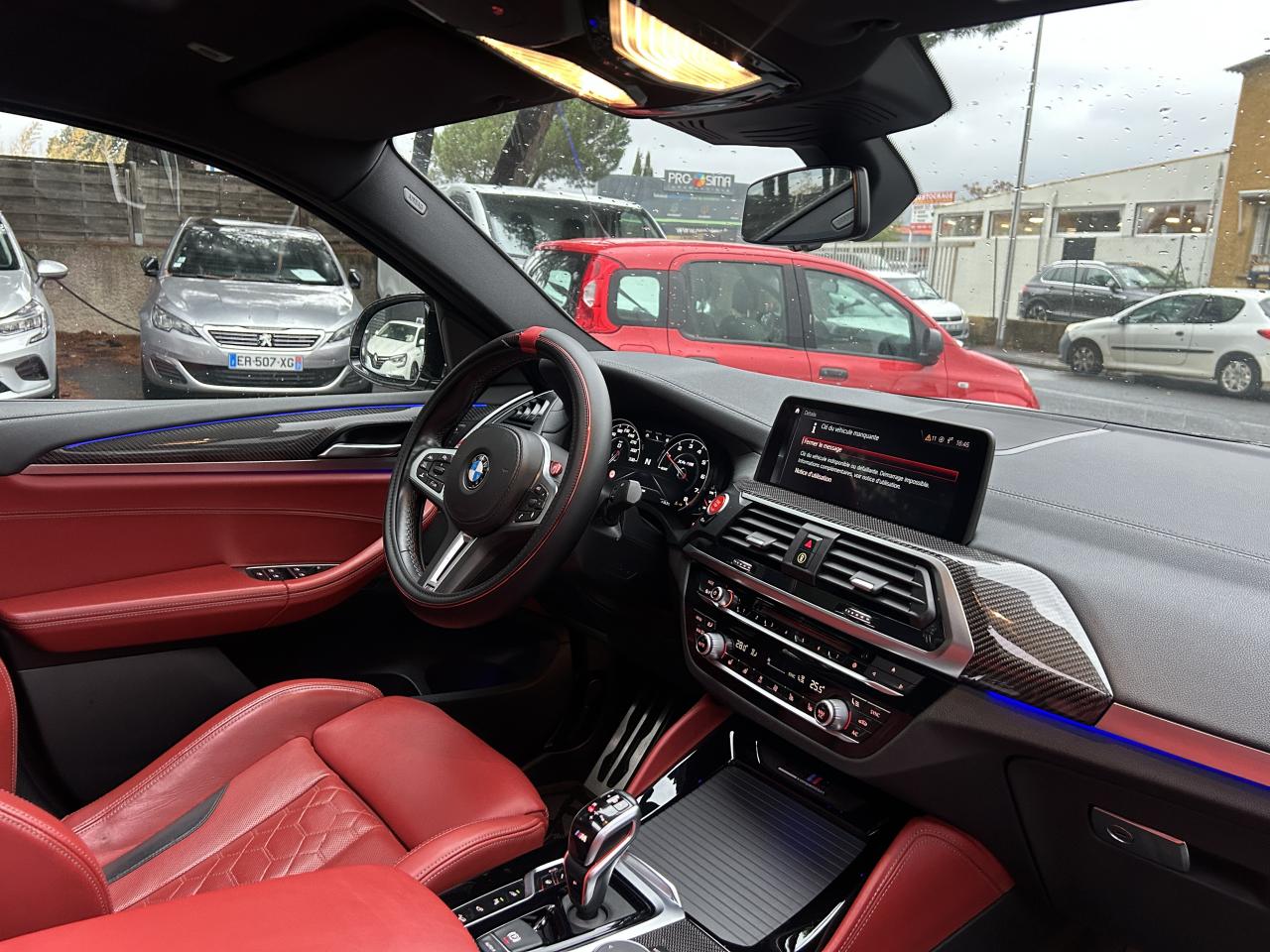 3ème feu stop à LEDABS avec aide au freinage d'urgenceAccoudoir central avant et arrièreAirbag passager avant déconnectableAirbags conducteur et passager avantAirbags de tête avant/arrièreAirbags latéraux avantAlarme antivolAnti-démarrage électroniqueAppel d'Urgence Intelligent (durée de vie de la voiture)Appuis-tête avant et arrièreAttention Assist : système de détection de somnolenceAutoradio BMW Professional, 8 touches de favoris programmables et “Controller” iDrive avec touches de raccourci, double Tuner RDS FM, info-route (TP)Baguettes de seuil de porte à l’avant avec l’inscription X4 MBanquette arrière rabattable 40/20/40BMW AppsBMW Connected+BMW Tracking SystemBoîte de vitesses M Steptronic avec DrivelogicBouton de démarrage Start/Stop rouge sans manipuler la cléBuses de lave-glace chauffantesCeinture de sécurité 3 pointsCiel de pavillon "Anthrazit "Clés radiocommandées à mémorisation automatique des réglages "Personal Profile"Climatisation automatique 3 zonesColonne de direction réglable en hauteur / profondeurCommande électrique du hayonConnectivité avancée sans fil avec recharge par inductionContrôle de la TransmissionContrôle dynamique de la stabilité DSCContrôle Dynamique de la Traction DTCDésignation du modèle sur le coffre à droiteDétecteur de pluie et allumage automatique des projecteursDéverrouillage électrique du hayon via la poignée ou la clé radiocommandéeDifférentiel Actif MDifférentiel autobloquant M SportDirection Servotronic spécifique MEclairage d’ambianceEcrous antivolFeux arrière LEDFeux de route anti-éblouissementFeux de stop dynamiques clignotantsFilet de séparation du coffre à bagagesFixations Isofix aux places latérales arrièreFonction d'arrêt et de redémarrage automatique du moteurFonction hotspot WiFiFonctions "Ma BMW à distance"Frein de parking électromécaniqueFreins à disques ventilés avant et arrièreInserts décoratifs en Aluminium Carbon Design souligné de chrome perléInstrumentation “Black Panel” avancéeKit EclairageKit rangementLecteur CDLève-vitres avant et arrière électriques avec commande par impulsion et sécurité enfantsLimiteur et régulateur de vitesse avec maintien de la vitesse en descenteM DriveM TwinPower Turbo 6 cylindres en ligneMesure individuelle de pression des pneumatiquesNavigation multimédia ProfessionalNotice d'utilisation de la voiture intégrée et carnet d'entretien électronique avec BMW Service HistoryPack CompétitionPlanche de bord SensatecPoignées de portes couleur carrosseriePortail BMW Online (3 ans)Prise 12VProjecteurs avant LEDRadars de stationnement avant et arrière PDCRétroviseur intérieur électrochromeRétroviseurs extérieurs à réglages électriques (asphérique côté conducteur), dégivrants avec répétiteur de clignotant intégréRétroviseurs extérieurs couleur carrosserieRétroviseurs extérieurs rabattables électriquement et électrochromatique du côté conducteurSellerie Cuir "Vernasca"Services Après-Vente connectés BMW TeleServicesServices ConnectedDrive (3ans)Sièges avant chauffantsSièges avant électriques à mémoires conducteurSortie d’échappement double (deux de chaque côté),90 mm de diamètreSpoiler arrière couleur carrosserieSystème de récupération de l'énergie au freinageSystème Hi-FiTapis de sol en veloursTeinte de carrosserie "Alpinweiss" unieTouches multifonctions sur le volantTrain de roulement spécifique MTriangle de présignalisation avec trousse de premiers secoursVolant M gainé cuir