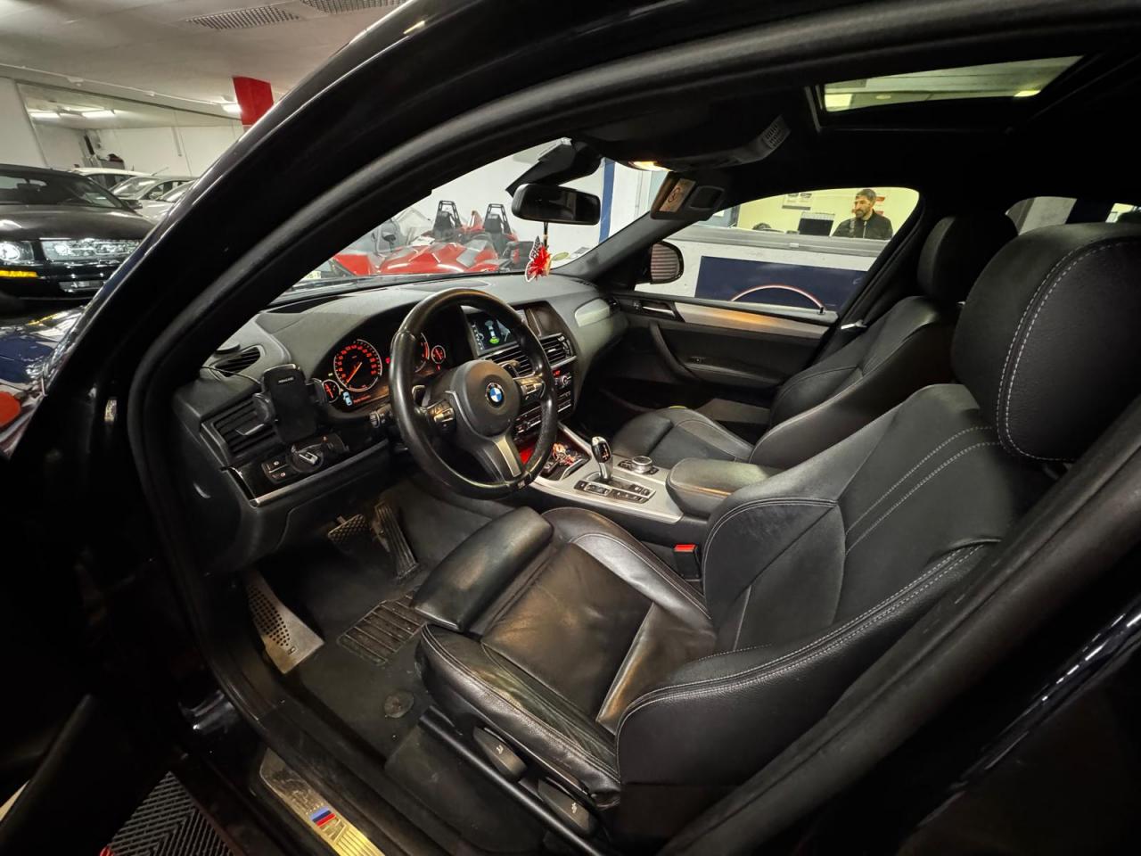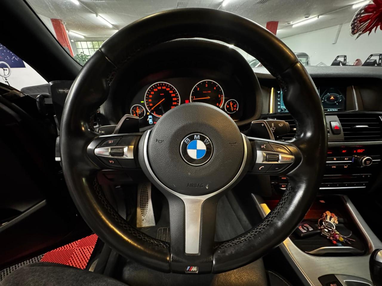 2 prises 12V dans la console centrale avant et dans le coffreABS (Antiblocage de roues)Accoudoir central avant et arrièreAffichage BMW EfficientDynamics dans le cadran d'instrumentationAide au démarrage en côte, pré-charge du circuit de freinage au lever de pied, séchage des disques de freins et compensation du fadingAirbags conducteur et passagerAirbags de tête avant et arrière avec voile de protection contre les débris de verreAirbags latéraux avantAntenne de toit « aileron de requin »Anti-démarrage électroniqueAppel d'Urgence IntelligentAppuie-tête actifs à l'avant, réglables en hauteur et en inclinaisonAssistance au freinage d'urgenceAutoradio BMW Professional CD, 6 haut-parleurs, prise AUX-IN, port audio USB et streaming audio Bluetooth (avec fonction "Music Search")Badge M situé sur les ailes avantBanquette arrière 3 places avec maintient renforcé aux places latérales et dossiers rabattables en trois parties (40/20/40)Barreaux de calandre couleur noireBMW TwinPower TurboBoîte de vitesses automatique à 8 rapports avec palettes au volantBuses de lave-glace chauffantesCapteur d'impact : déverrouillage du véhicule, allumage de l'éclairage de l'habitacle et activation des feux de détresseCarnet d'entretien électronique embarqué "BMW Service History"Ceintures de sécurité avec prétensionneur pyrotechnique et limiteur de tension à l'avantCiel de pavillon "Anthrazit "Clé radiocommandée avec insert bleu spécifiqueClés radiocommandées à mémorisation automatique des réglages "Personal Profile"Climatisation automatique 3 zone, avec aérateurs à l'arrièreCombiné d'instrumentation avec écran couleur d'informationCommande électrique du hayon (hauteur d'ouverture paramétrable)Construction allégée intelligenteContour de calandre chroméContrôle de freinage en courbe CBCContrôle de la Transmission avec répartition optimisée du couple sur l'essieu arrière pour un comportement plus dynamiqueContrôle Dynamique de la Stabilité DSC+Contrôle Dynamique de Traction DTCDémarrage sans clé via le bouton de démarrage Start/Stop avec contour chroméDétecteur de pluie et allumage automatique des projecteursDeux porte-boissons occultables dans la console centrale avant et deux dans l'accoudoir central arrièreDirection à assistance électrique variable en fonction de la vitesseDirection DirectDrive à démultiplication variable pour une réduction de l'effort de braquage et une précision accrueEclairage de bienvenue et d'accompagnement "Follow-me-home"Eclairage plafonnier soft-on/soft-off et éclairage du coffreEcran d'information central couleur avec commande par "Controller" iDrive et 8 touches de raccourcis programmablesEcrous antivolFeux arrière avec guides de lumière à LEDFeux de stop dynamiquesFiltre à particulesFixations Isofix aux places latérales arrièreFonction d'arrêt et de redémarrage automatique du moteurFrein de parking électromécanique avec fonction "Automatic Hold"Freins à disques ventilés à l'avant et à l'arrièreIndicateur de maintenance CBS tenant compte des conditions de conduiteInserts décoratifs en aluminium brosséInterface Bluetooth pour téléphone portable (mains-libres)Jantes en alliage léger 19'' (48 cm) style 622 M à rayons doublesKit aérodynamique M avec pare-chocs spécifiques, jupes latérales et passages de roues couleur carrosserieKit EclairageKit rangementLave-pharesMesure individuelle de pression des pneumatiquesMiroirs de courtoisie éclairés intégrés aux pare-soleilNavigation multimédia BusinessNotice d'utilisation intégréeOrdinateur de bord avec Check-Control et indicateur de température extérieurePack Advanced Full LEDPare-chocs auto-régénérants jusqu'à 4 km/h avec éléments déformables jusqu'à 15 km/hPneumatiques RSC permettant le roulage à platProtection contre les erreurs de ravitaillementRadars de stationnement avant et arrière PDC avec représentation graphique des obstacles sur l'écran d'information centralRappels de clignotants à LED intégrés aux rétroviseurs extérieursRégulateur de vitesse avec fonction freinage pour maintenir la vitesse en descenteRespect de la Norme anti-pollution EU6Rétroviseurs extérieurs à réglages électriques et dégivrants, avec miroir asphérique côté conducteurRétroviseurs intérieur et extérieurs électrochromesSélecteur de mode de conduite - 3 modes : "ECO PRO", "Confort" et "Sport"Sellerie tissu/cuir PearlpointServices Après-Vente connectés BMW TeleServicesSeuils de porte chromés M et repose-pied conducteur MShadow Line brillantSièges Advanced pour conducteur et passager avantSortie d'échappement simple et ovaleSuspension DirectDriveSystème de contrôle de la descente (HDC)Système de récupération de l'énergie au freinageTapis de sol en veloursTechnologie 4 roues motrices intelligente xDriveTrain arrière multibrasTrain avant à double articulationTriangle de présignalisation avec kit de premiers secoursTroisième feu stop à LEDVerrouillage centralisé avec télécommandeVitrage teinté pour réduire l'échauffement dû à l'ensoleillementVitres avant et arrière électriques à impulsion avec système ant-ipincementVolant M gainé cuirVolant réglable en hauteur et en profondeur