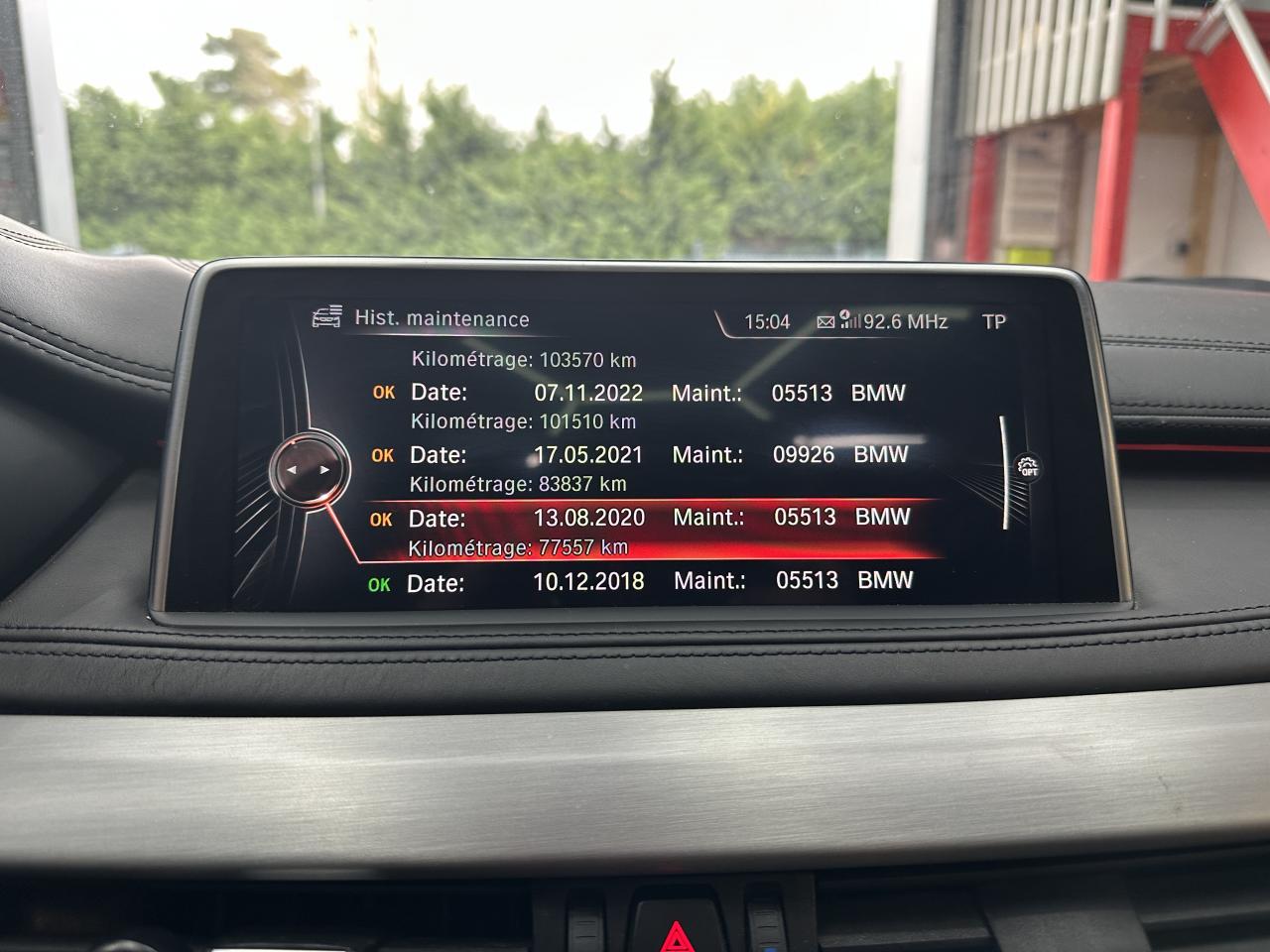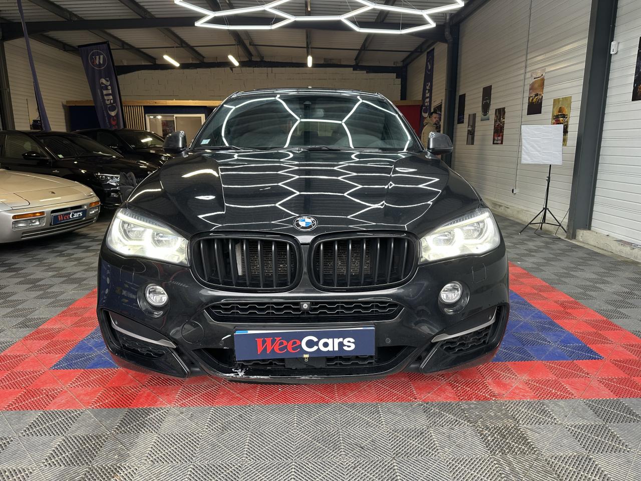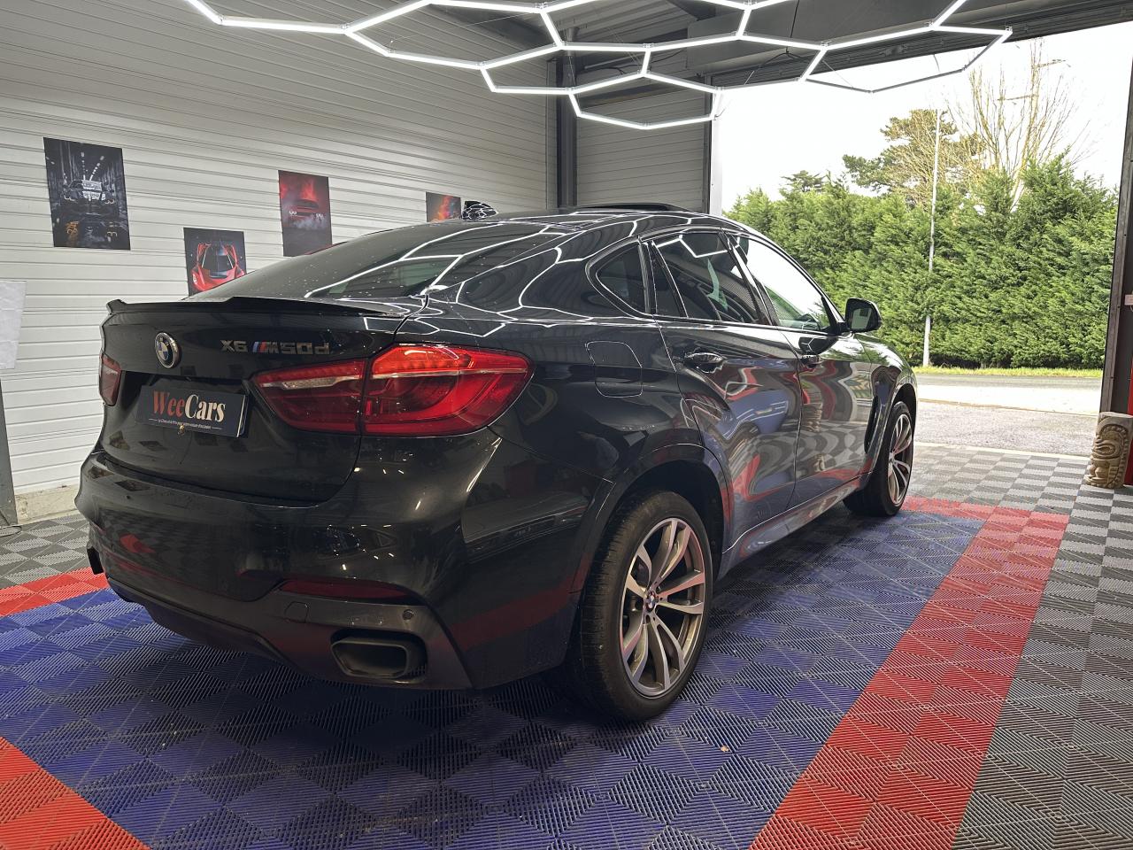 5 prises 12V (une dans le coffre, une dans la console centrale avant, deux dans la console centrale arrière et une dans l'accoudoir central avant)Accoudoirs centraux avant et arrièreAffichage BMW EfficientDynamics dans le cadran d'instrumentationAide au démarrage en côte, pré-charge du circuit de freinage au lever de pied, séchage des disques de freins et compensation du fadingAirbags de tête avant et arrière avec voile de protection contre les débris de verreAirbags frontaux conducteur et passager (déconnectable côté passager)Airbags latéraux avantAlarme antivolAntenne de toit « aileron de requin »Anti-démarrage électroniqueAppel d'Urgence IntelligentAppuie-tête avant actifs avec réglage en hauteur et en inclinaisonAssistance au freinage d'urgenceAutoradio BMW Professional CD, 6 haut-parleurs, prise AUX-IN, port audio USB et streaming audio Bluetooth (avec fonction "Music Search")Badge M situé sur les ailes avantBanquette arrière 3 places avec dossiers rabattables en trois parties (40/20/40)BMW TwinPower TurboBoîte de vitesses automatique Sport à 8 rapports avec sélecteur électronique et palettes de changement de rapports au volant et fonction "ConnectedShift"Bouquet Services BMW ConnectedDriveCapteur d'impact : déverrouillage du véhicule, allumage de l'éclairage de l'habitacle et activation des feux de détresseCeintures de sécurité à 3 points (tous les sièges) avec prétensionneur pyrotechnique et limiteur de tension (à l'avant)Ciel de pavillon "Anthrazit "Clé radiocommandée avec les couleurs M sur le flancClés radiocommandées à mémorisation automatique des réglages "Personal Profile"Climatisation automatique 2 zones avec filtre microporeux et fonction de recyclage d'airCombiné d'instrumentation avec désignation "M50d"Commande électrique du hayon (hauteur d'ouverture paramétrable)Compartiment de rangement dans la console centrale avantConstruction allégée intelligenteContrôle du freinage en courbe (CBC)Contrôle Dynamique de la Stabilité DSC+Contrôle Dynamique de Traction DTCCoques de rétroviseurs extérieurs en teinte "Ferricgrau"Couvre-bagages manuel et pliableDémarrage sans clé via le bouton de démarrage Start/Stop avec contour chroméDétecteur de pluie et allumage automatique des projecteursDeux porte-boissons occultables dans la console centrale avant et deux dans l'accoudoir central arrièreDiffuseur aérodynamique avant "Air Curtain"Diffuseurs aérodynamiques latéraux "Air Breather"Direction Servotronic M avec réglages spécifiquesEclairage d'ambiance entièrement à LED avec 9 design lumineux disponibles au choixEclairage de bienvenue et d'accompagnement "Follow-me-home"Eclairage plafonnier soft-on/soft-off et éclairage du coffreEcrous antivolEntrées d'air latérales spécifiques de la jupe avant avec lames décoratives "Ferricgrau" à gauche et à droiteEspace de rangement sous le plancher du compartiment à bagages avec ouverture assistée par vérinFeux arrière avec conduits lumineux à LEDFeux de stop dynamiquesFiltre à particulesFixations Isofix aux places latérales arrièreFonction d'arrêt et de redémarrage automatique du moteurFrein de parking électrique avec fonction "Automatic Hold"Freins à disques ventilés à l'avant et à l'arrièreGrilles de calandre avec barreaux couleur titane et encadrement chroméIndicateur de maintenance tenant compte des conditions de conduiteInscription arrière "X6 M50d" en chrome foncéInserts décoratifs en aluminium "Hexagon"Interface Bluetooth pour téléphone portable (mains-libres)Jantes en alliage léger 20'' (51 cm) style 469 M à rayons doublesKit carrosserie spécifique M entièrement peintKit fumeurLimiteur et régulateur de vitesse avec maintien de la vitesse en descenteMesure individuelle de pression des pneumatiquesMesures BMW EfficientDynamicsMiroirs de courtoisie éclairés intégrés aux pare-soleilNotice d'utilisation de la voiture intégrée et carnet d'entretien électronique avec BMW Service HistoryOrdinateur de bord avec Check-Control et indicateur de température extérieurePack Advanced Full LEDPack BMW ConnectedDrivePack Dynamic DrivePack SafetyPack Suspension Adaptative ConfortPare-chocs auto-régénérants jusqu'à 4 km/h avec éléments déformables jusqu'à 15 km/hPlanche de bord et hauts de contre-portes garnis de cuirPneumatiques RSC permettant le roulage à platProjecteurs antibrouillard à LEDProtection contre les erreurs de ravitaillementRadars de stationnement avant et arrière PDC avec représentation graphique des obstacles sur l'écran d'information centralRangements dans l'habitacle : compartiments dans les portes avant et arrière avec porte-bouteillesRepose-genoux sur la console centrale avant revêtu de cuir Dakota avec insert chroméRepose-pied en AluminiumRespect de la Norme anti-pollution EU6Rétroviseurs extérieurs à réglages électriques, asphérique côté conducteur et rabattables électriquementRétroviseurs extérieurs avec rappels de clignotants intégrés à technologie LEDRétroviseurs extérieurs et buses de lave-glace chauffantsRétroviseurs intérieur et extérieurs électrochromesSélecteur de boîte de vitesses avec logo "M"Sélecteur de mode de conduite - 3 modes : "ECO PRO", "Confort" et "Sport"Sellerie Alcantara/cuir DakotaServices Après-Vente connectés BMW TeleServicesSeuils de portes avant avec désignation "M50d"Shadow Line brillantSièges Advanced pour conducteur et passager avantSièges avant avec appui lombaire ajustable électriquementSièges avant électriques à mémoires conducteurSortie d'échappement trapézoïdale de chaque côté en chrome foncéSystème anti-blocage des freins ABSSystème de contrôle de la descente (HDC)Système de récupération de l'énergie au freinageSystème Hi-Fi Harman Kardon 600W et 16 haut-parleursTapis de sol en veloursTechnologie 4 roues motrices intelligente xDriveTrain arrière multibrasTrain avant à double articulationTriangle de présignalisation avec trousse de