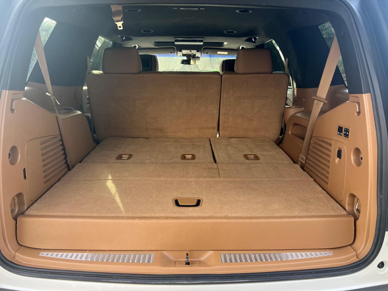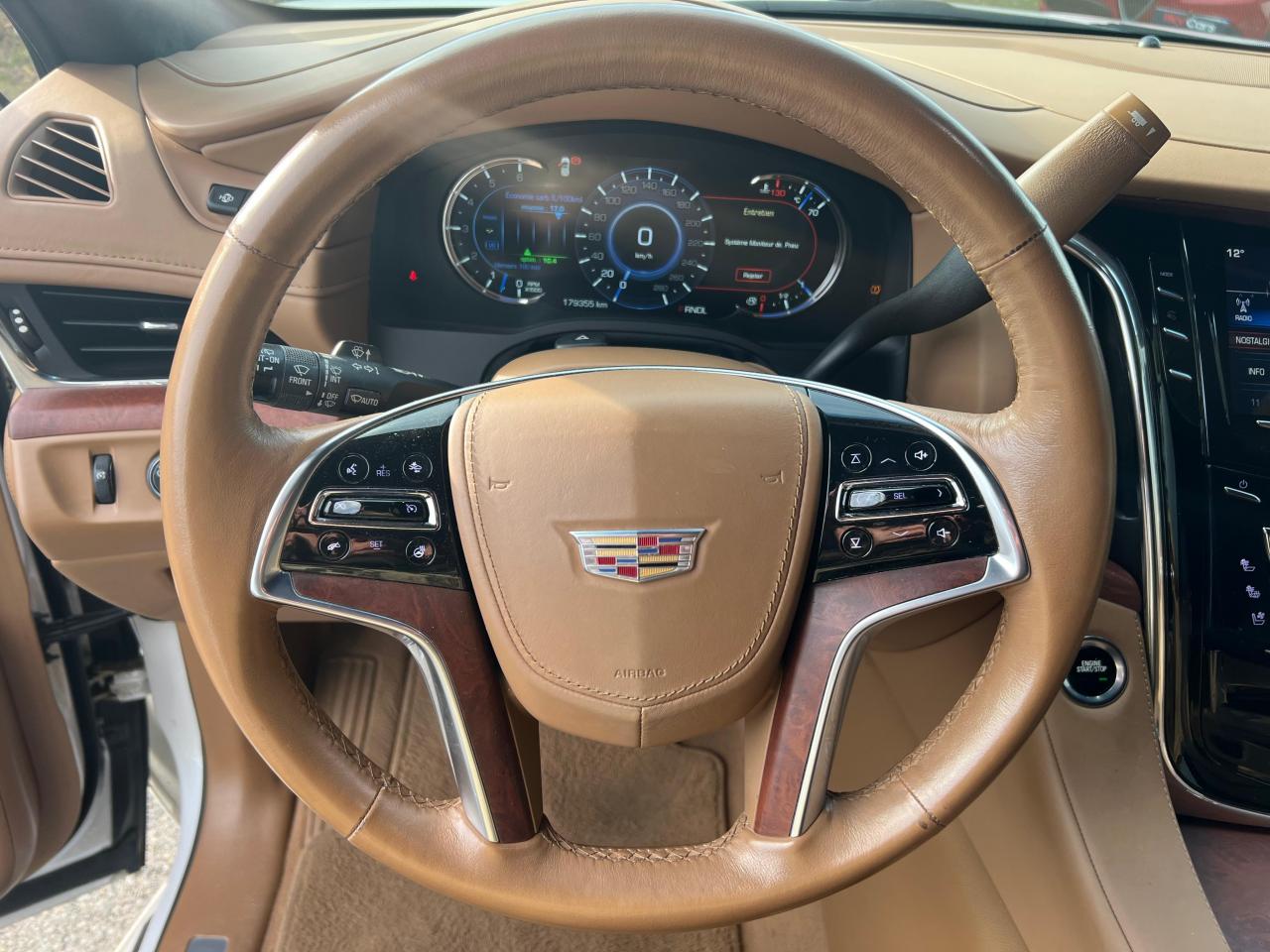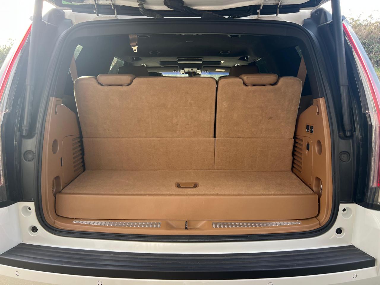 3ème rangée de sièges rabattable électriquementAccès sans clé et démarrage par bouton-poussoirAffichage tête haute en couleursAide au stationnement automatique, stationnement en créneau et perpendiculaireAirbags, conducteur et passager avant : frontaux, genoux et latéraux; rideaux gonflables avant et arrièreAlerte d'angle mort latéralAlerte de circulation transversale arrièreAppuie-têtes avec écrans DVDBarres de toit couleur caisseBluetooth pour téléphone et système audio avec lecture en continu de musiqueBoîte à gants à ouverture électriqueBoîte de transfert à double vitesseCalandre platine, avec bords finition mate en argent GalvanoCaméra à vision panoramique, vue à vol d'oiseau du véhiculeCeintures de sécurité à enrouleurs 3 points sur tous les siègesChargeur de téléphone sans fil pour les téléphones portablesClimatisation automatique 3 zones avec réglages conducteur et passager avant individuelsCommandes au volant, pour audio, téléphone et régulateur de vitesseCompartiment de console centrale avec glacièreConsole de plafond, avec lampes de lectureDégivreur de lunette arrière électrique avec sortie d'air sur le pare-brise et les vitres latérales côté conducteur et passagerDémarrage à distance adaptatifDésactivation automatique des airbagsDifférentiel à blocage automatiqueDispositif universel d'ouverture de porte de garageEnsemble antivol avancéEssuie-glace à déclenchement automatiqueEssuie-glace arrière intégré au becquet de toitFeux antibrouillard arrièreFeux arrière LED en lame verticale avec surface intérieure «multiniveaux »Filtre à air de l'habitacleFrein de stationnement électriqueGarantie de 3 ans ou 100 000 kmIntégration avec les smartphones via Apple Car Play et Android AutoJantes 22" avec peinture haut de gamme et inserts chromésMarchepieds Moulures de vitres latérales chroméesOnStar avec la 4G LTE et un point d'accès WiFi intégré pour se connecter à InternetOuverture électrique du hayon "mains libres"Pack Assistance au conducteurPack fumeur (cendrier + allume cigare)Pack MémoirePack RemorquagePare-brise et vitres latérales avant en verre feuilleté avec réduction du bruit et absorption du rayonnement solairePare-soleil avec miroirs de courtoisie éclairés, conducteur et passager avantPédales, réglage électrique de l'accélérateur et du freinPeinture noir corbeauPhares automatiquesPoignées de porte éclairéesPoints d'ancrage pour siège de sécurité enfant (système LATCH)Prise de courant de 230 V située dans la console centraleRadiateur d'huile moteurRadiateur d‘huile de transmission haute performanceRétroviseurs extérieurs ton caisse chauffants, à réglage et repliage électriques, côté conducteur à atténuation automatique anti-éblouissementRoue de secours 17" en aluminium, P265/70R17Seuils de porte éclairés PlatinumSiège avec dispositif d'alerteSièges arrière chauffants pour les places latéralesSièges avant ventilésSièges conducteur et passager haute performance réglables à 18 positions avec sièges réglables électriquement à 14 positions, soutien lombaire réglable électriquement à 4 positions et fonction de massage à 3 modes pour le sSièges en cuir semi-aniline Opus noir de jais avec garnitures en frêne d'Asie noir sumi et ciel de toit en microfibre de suèdeSuppression active du bruitSuspension Magnetic Ride Control avec deux modes d'amortissement: Touring et SportSystème audio surround Centrepoint Bose à 16 haut-parleurs avec technologie AudioPilot de compensation du bruitSystème CUE de commande des données et des médias, stéréo AM/FM avec écran couleur de 8", trois ports USB, lecteur de carte SD, port audio auxiliaire et reconnaissance vocaleSystème de contrôle de stabilité StabiliTrakSystème de détection automatique d'occupantsSystème de divertissement aux places arrière avec lecteur DVD au tableau de bord avec télécommande, écran au plafond et 2 casques à infrarouge, prises auxiliaires audio/vidéo à l'arrière de la console centrale, compression audio, leSystème de surveillance de pression des pneusSystème intégré de navigation en 3D pour le système Cadillac CUE d'information et de contrôle médiatiqueTableau de bord numérique reconfigurable de 12,3" avec différents thèmes et personnalisation pour le conducteurTapis de sol en moquette de couleur assortie, première et deuxième rangéeVerrouillage de sécurité enfants des portes ARVerrouillage électrique des portes avec protection anti-enfermement, programmableVersion à 7 places comprend des sièges individuels avec accoudoirs sur la seconde rangée avec télédéverrouillage électrique du mécanisme de pliage des sièges de la troisième rangéeVitres électriques avec fonction fermeture et ouverture rapides à l'avant et fonction ouverture rapide pour les passagers arrièreVolant chauffantVolant gainé de cuir avec garniture en bois assortie
