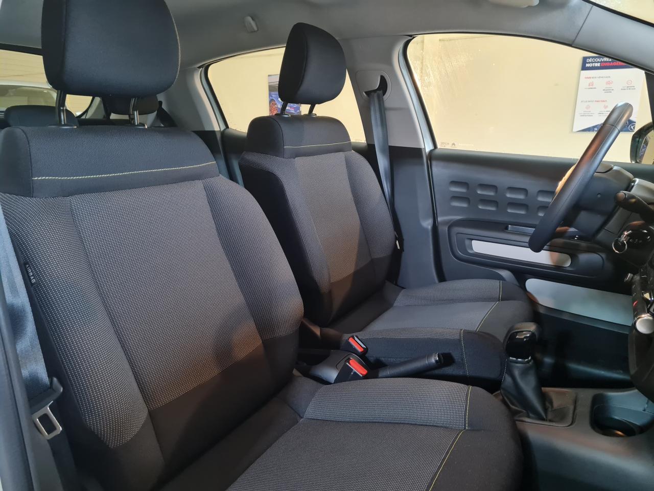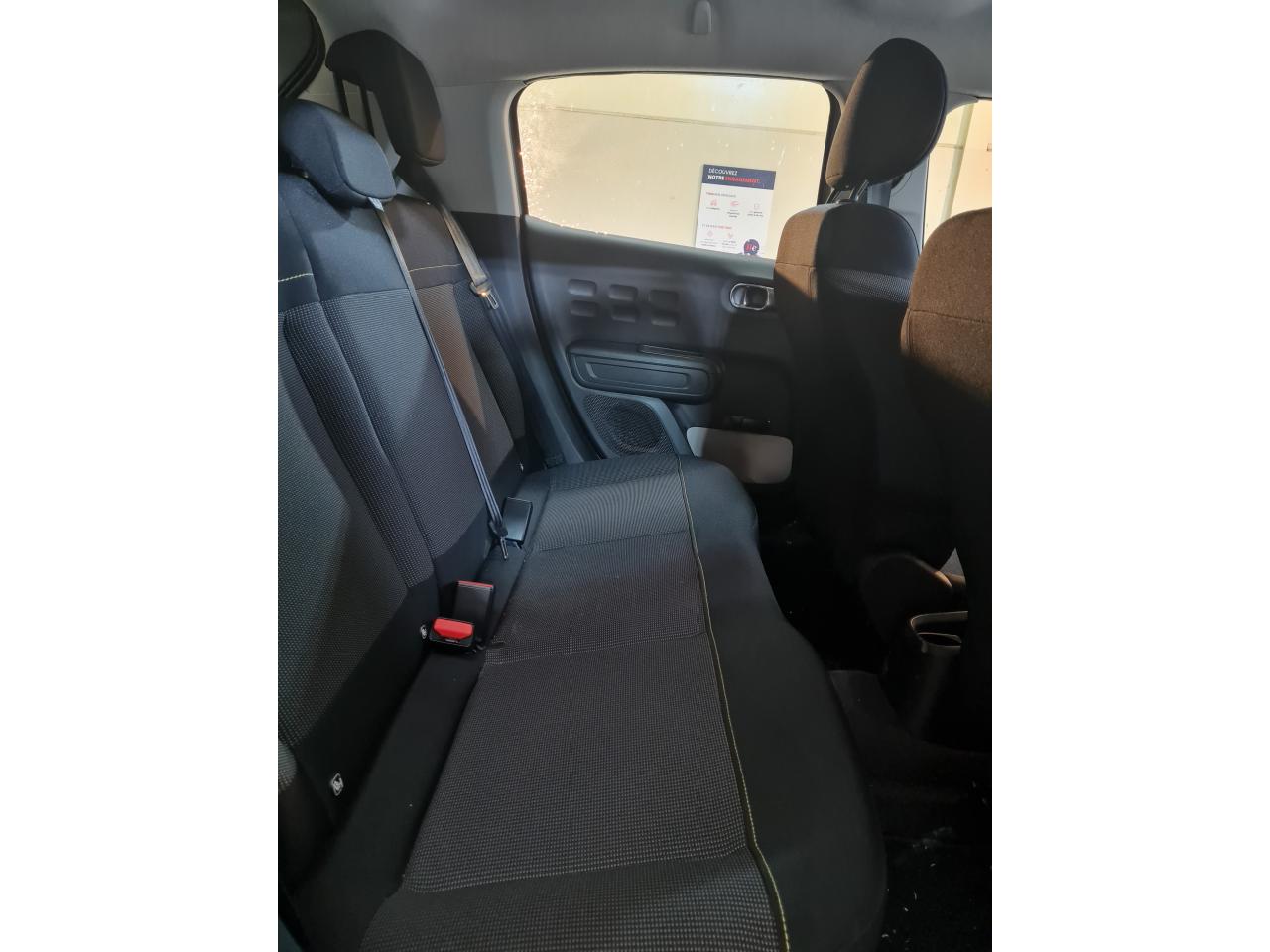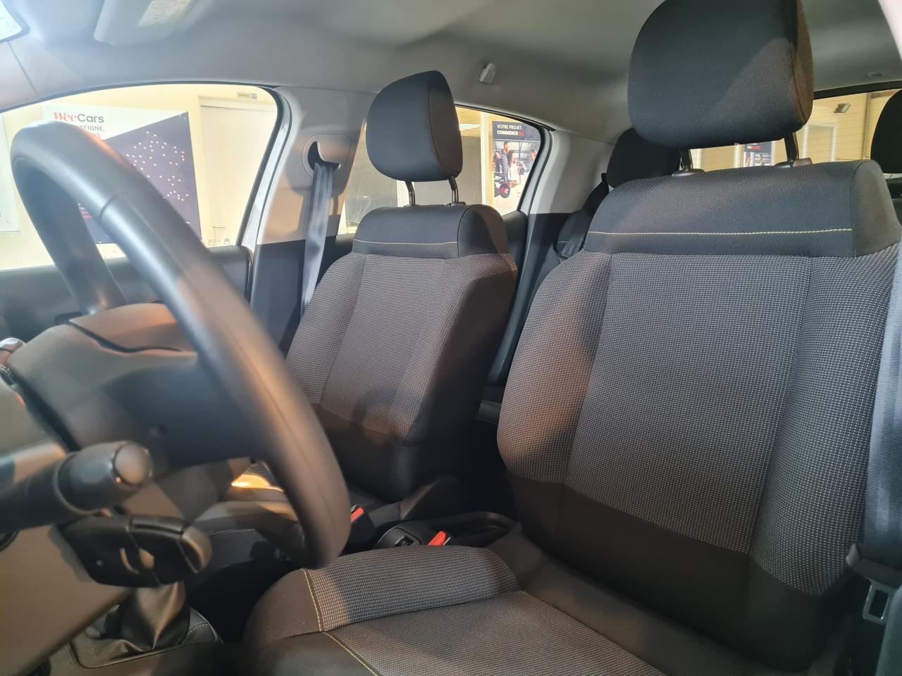 ABS avec répartiteur électronique de freinage (REF) et aide au freinage d'urgence (AFU)Aide au démarrage en côteAirbags frontaux, latéraux AV et rideauxAllumage des feux de détresse en cas de forte décélérationBandeau de planche de bord Noir Brillant avec cerclage Chrome SatinBanquette arrière fractionnable 2/3 - 1/3Clignotants impulsionnelsClimatisation automatique avec fonction filtrage de l'airCommandes audio au volantCondamnation centralisée avec plipContrôle dynamique de stabilité (ESP)Coques de rétroviseurs extérieurs Noir Perla NeraDécors extérieurs Noir Mat (enjoliveurs de montant central et custode)Détecteur de sous-gonflageDirection à assistance électriqueElargisseurs d'ailes et bas de caisse noir matEnjoliveurs 3D 16’’ STEEL & DESIGNFeux arrière à effet 3DFeux diurnes à LEDGarnissage Tissu Mica Grey avec surpiqûres jauneKit de dépannage provisoire de pneumatiquesKit mains libres Bluetooth et prise USBLève-vitres avant électriquesMyCitroën PlayOrdinateur de bordPack Color NoirPack SafetyPack VisibilitéPare-soleil avec miroir de courtoisie occultable côtés conducteur et passagerPavillon ton caissePlafonnier avant simplePoignées de portes extérieures couleur caissePrises 12 volts AVProjecteurs antibrouillardProjecteurs avant LEDRégulateur et limiteur de vitesseRétroviseurs extérieurs réglables électriquement et dégivrantsSécurité enfants manuelleSiège conducteur réglable en hauteurSystème de fixation ISOFIX sur les sièges arrièreTeinte de caisse nacrée monoton SableTémoin et alerte sonore de débouclage des ceintures passagers arrièreVitres arrière manuellesVolant mousséVolant réglable en hauteur et en profondeur
