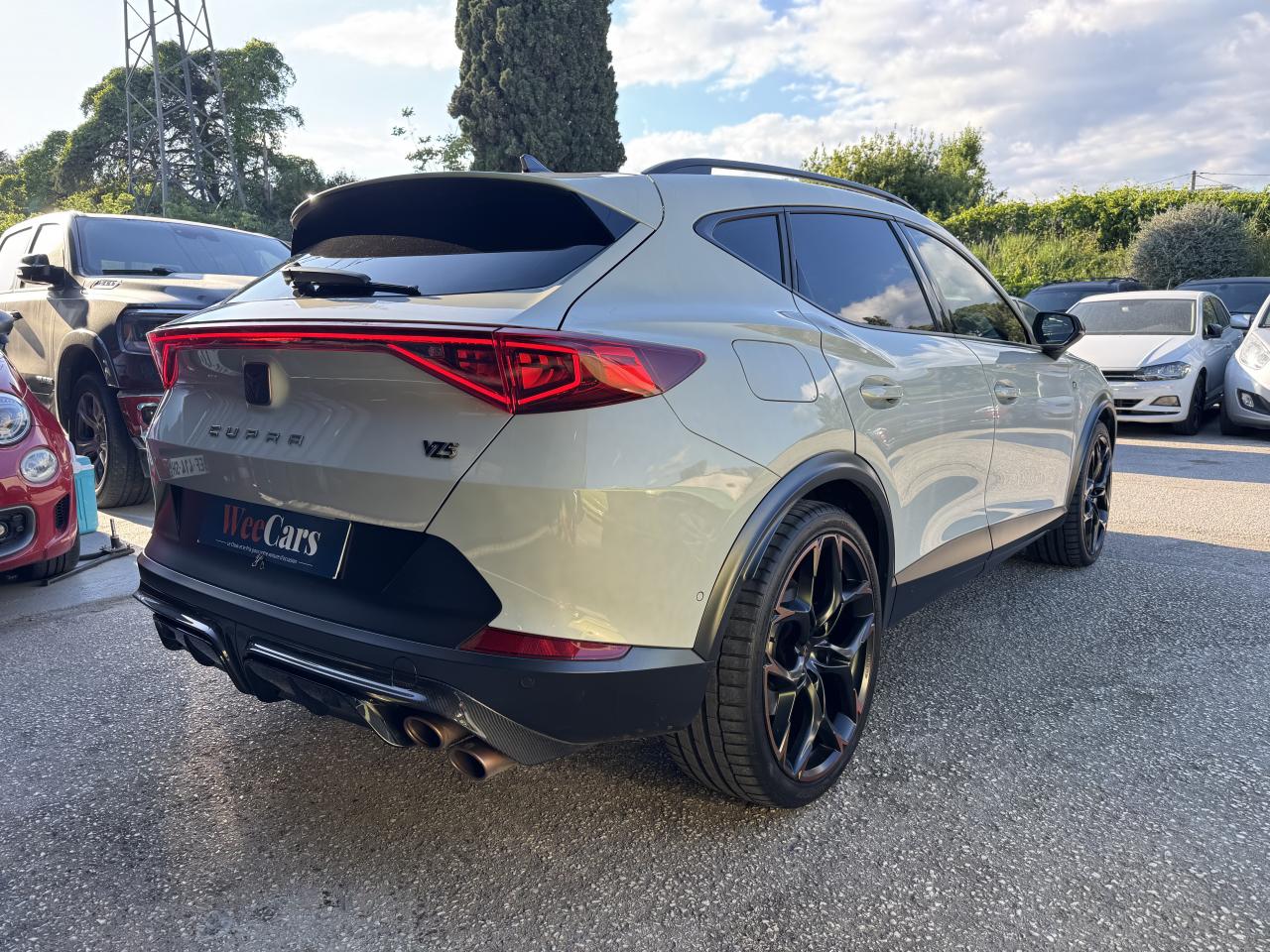 2 prises USB-C éclairées à l'AV et 2 à l'ARAccès et démarrage mains-libresAccoudoir centralAide au stationnement arrièreAirbags frontaux , latéraux et rideauxAppel d'urgence - EcallAssistant de sortie de stationnement et Exit AssistBandeau arrière "Infinite Light" à LED avec clignotants à défilement et cérémonie de bienvenueCiel de pavillon noirClimatisation automatique Climatronic tri-zoneConnectivity Box avec chargeur à inductionCouleur contrastante Noir Mat (soubassements, élargisseurs d'ailes, contour de calandre et coques de rétroviseurs)CUPRA BoxCupra connect Media & InternetCUPRA Drive Profile avec mode "Drift"Détecteur de pluie et allumage automatique des projecteursDifférentiel arrière actif "Torque Splitter"Digital Cockpit : combiné d’instruments digital haute résolution couleur de 10,25"Direction dynamiqueDossier AR rabattable 2/3 - 1/3Eclairage d'ambiance intérieur intelligentEclairage de bienvenue avec projection du logo "VZ5" au solExit Assist - Assistance lors d'une sortie de place de stationnementFeux de route intelligentsFixations Isofix et Toptether aux sièges arrièreFull Link avec CarPlay sans filHayon électrique + fonction Virtual PedalJantes alliage 20’’ Supreme Black Copper exclusivesLampes de lecture à l'avant et à l'arrièreLane Assist Plus avec centrage dans la voieLane Change SystemLettrage "CUPRA" et badge "VZ5" sur le hayon en Dark ChromeMiroirs de courtoisie éclairés conducteur et passagerPack Carbone VZ5 avec entrées d'air avant, déflecteurs avant et diffuseur arrière en fibre de carbonePack extérieur VZ5 avec entourages de vitres Noir MatPack HiverPack intérieur Copper avec inserts Dark AluPark Assist avec aide au stationnement avantPeinture Gris TaïgaProjecteurs antibrouillard avec Cornering Light et Coming HomeProjecteurs Matrix LEDQuadruple sortie d'échappement Copper disposée en double-étageRadio Numérique DABRails de toit noir matRéglage en hauteur des sièges avantRégulateur de vitesse adaptatif et prédictif 'ACC' jusqu’à l’arrêt completRégulation adaptative du chassis DCCRétroviseur intérieur électrochromeSérie limitée numérotée de 1 à 999 par gravure laserSeuils de porte CUPRA rétro-éclairésSide Assist : détecteur d'angles morts jusqu'à 70mSièges baquets bi-matière en Suédine Noire et Similicuir BrunSign Assist (reconnaissance des panneaux de signalisation)Système audio 7 HP avec contrôle vocal "Hola Hola"Système de freinage sport AKEBONO avec étriers Copper à 6 pistons à l'avantSystème de navigation 3D sur écran tactile HD 12"Tapis de sol siglés "VZ5"Top view caméra 360°Traffic Jam Assist et Travel AssistVitres arrière surteintéesVolant Supersports CUPRA avec boutons satellites, chauffant