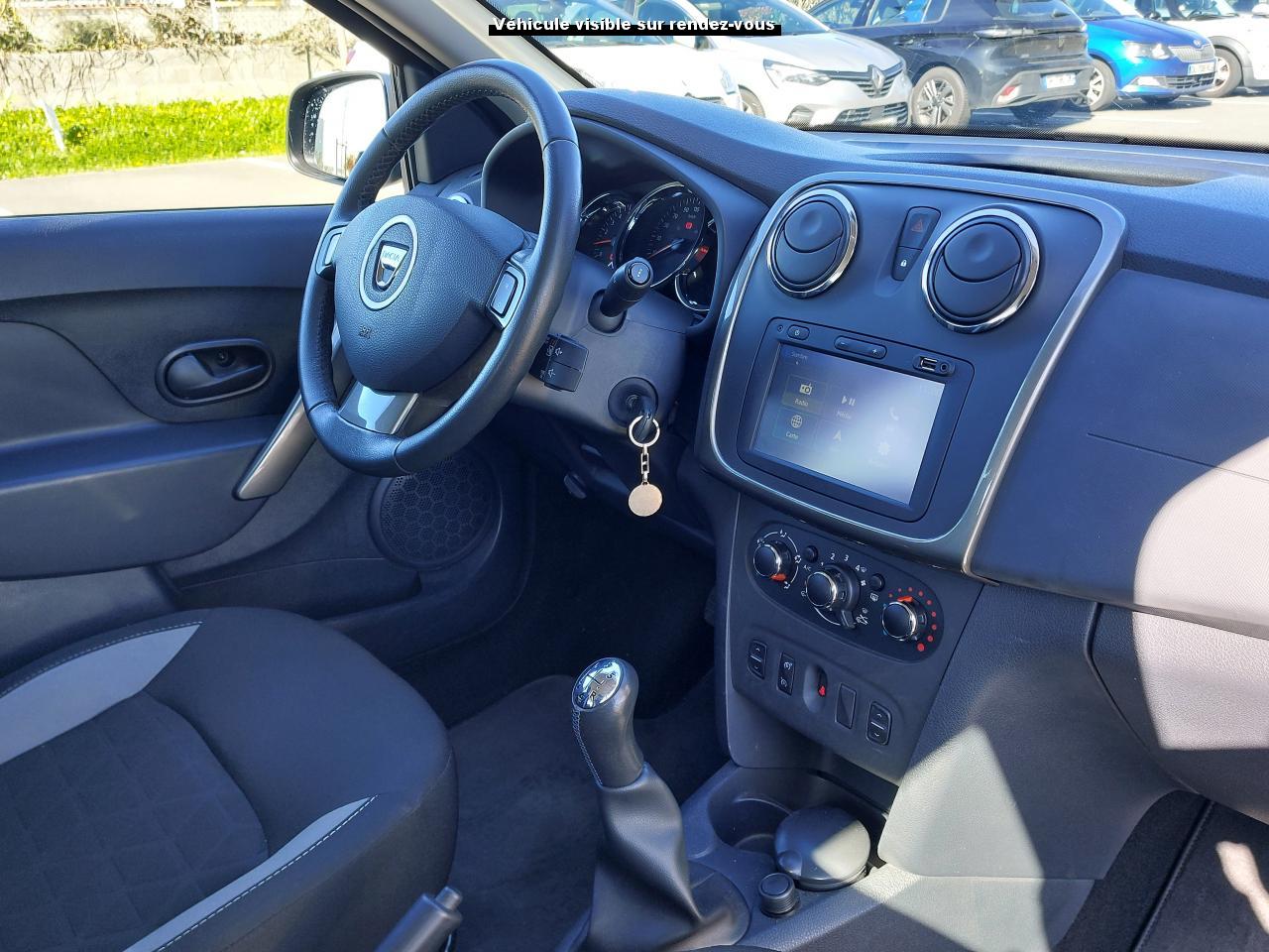 2 haut-parleurs avant + 2 haut-parleurs arrière3 appuis-tête arrière (1 central "Virgule", 2 latéraux "Virgule")ABS avec aide au freinage d'urgenceAide au stationnement arrièreAilettes de calandre chroméesAirbag frontal conducteurAirbag frontal passager déconnectableAirbags latéraux avant tête/thoraxAlerte visuelle et sonore du non bouclage des ceintures de sécurité conducteurAntidémarrage codéArches de roue protégéesBac de rangement dans les portes avant et arrièreBanquette arrière rabattable et fractionnable 1/3-2/3Boîte à gants ferméeBoucliers avant et arrière ton carrosserieCeintures de sécurité à 3 points avant et arrièreCeintures de sécurité avant réglables en hauteurCerclage chromé autour du logo chrome du volantCerclages aérateurs chroméCerclages des compteurs du tableau de bord chroméChauffage et ventilation à 4 vitessesClimatisation manuelle avec système de recyclage d'airCompte-toursCondamnation centralisée des portes à distanceDirection assistéeEclairage du coffreEclairage plafonnier avant centralEnjoliveur façade centrale gris fumé métal brillantEnjoliveurs d'antibrouillardFeux de jourHarmonie intérieure carbone foncéInsert sur le volant gris fumé métal brillantJantes 16" spécifiques avec enjoliveur OasisKit anti-crevaisonLève-vitres arrière électriquesLève-vitres avant électriquesLunette arrière dégivrante avec essuie-glaceMasques de feux noirs avantMedia Nav Evolution (navigation, radio, USB, Bluetooth)Ordinateur de bord 7 fonctions : totaliseur général, totaliseur partiel, carburant consommé, consommation moyenne, autonomie estimée, vitesse moyenne, prochaine révision, température extérieurePack Look StepwayPanneaux de porte carbone foncéPeinture métalliséePoignée de portes extérieures noiresPoignée latérale de maintien passager avantPoignées de porte intérieures noiresPoignées de tirage intérieures gris fumé métal brillantPoignées latérales de maintien avec crochet intégré passagers arrièrePrise 12VProjecteurs antibrouillardRégulateur et limiteur de vitesseRétroviseurs extérieurs couleur carrosserieRétroviseurs extérieurs électriques et dégivrantsSellerie spécifique StepwaySiège conducteur réglable en hauteurSystème de contrôle de trajectoire (ESC) et fonction antipatinage (ASR)Système de fixation Isofix pour siège enfant aux places arrière latéralesTémoin de portes non ferméesVolant et pommeau de levier de vitesse en croûte de cuirVolant réglable en hauteurZone de dépose en haut de planche ouvert