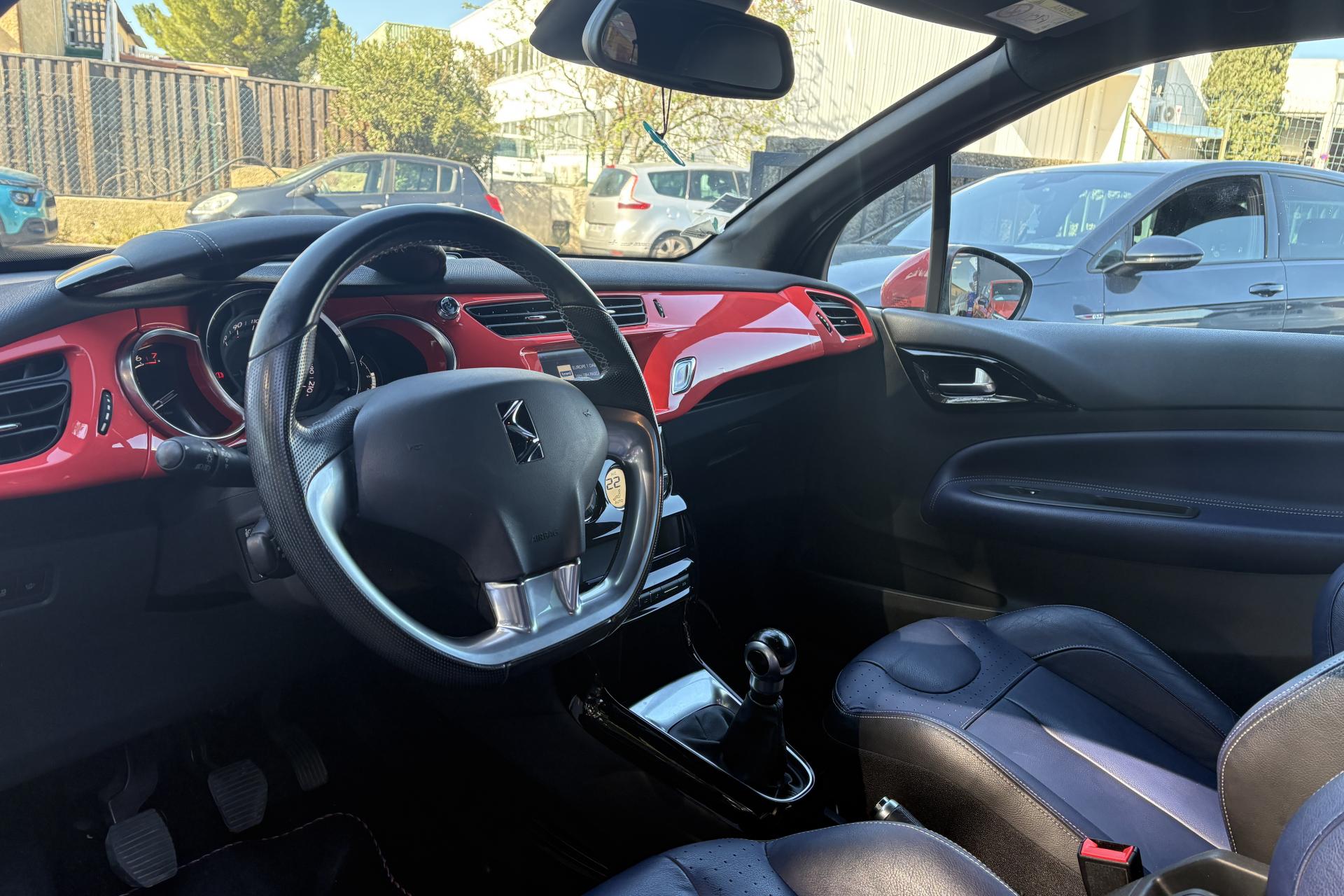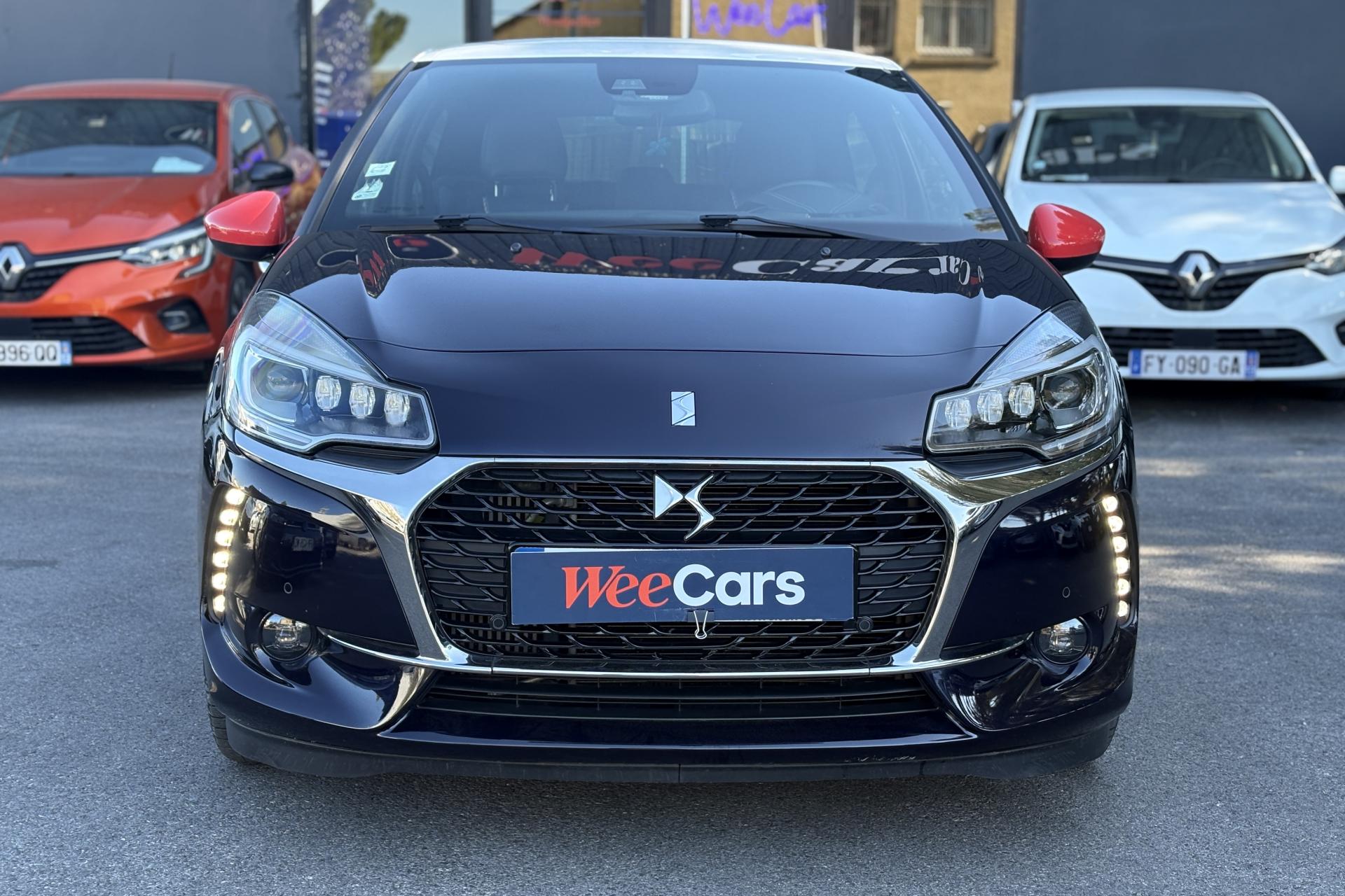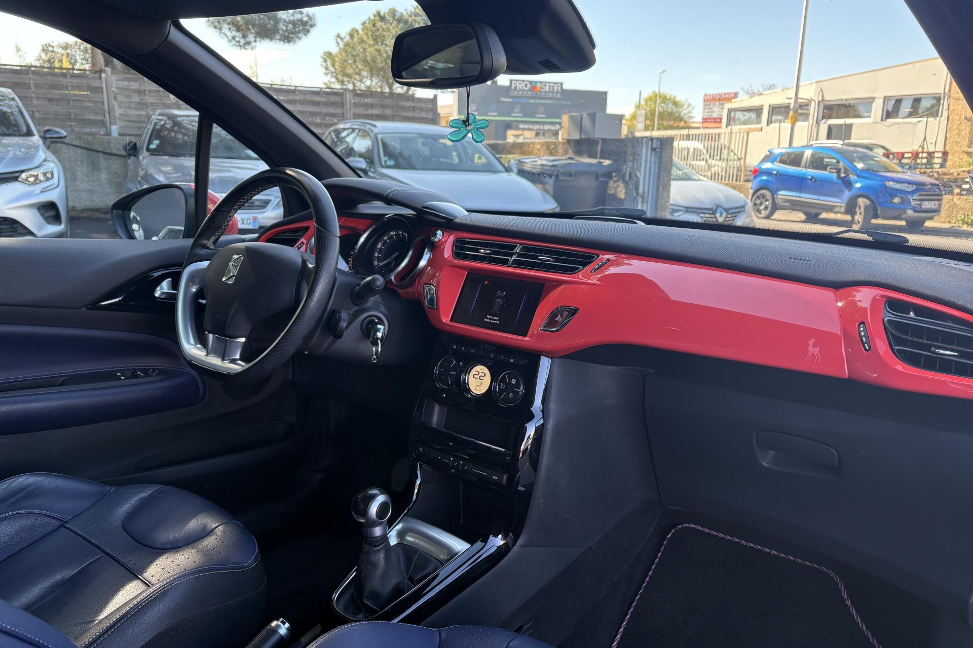ABS avec répartiteur électronique de freinage (REF) et aide au freinage d'urgence (AFU)Accoudoir central avantAide au démarrage en côteAide au stationnement avant et arrière + caméra de reculAirbags frontaux conducteur et passager (déconnectable côté passager)Airbags latéraux type "thorax" pour conducteur et passager avantAirbags rideaux aux places avant et arrièreAppuie-tête avant et arrière règlables en hauteurBadges latéraux Ines de la FressangeBaguettes latérales chroméesBoîte à gants éclairée et ventiléeCalandre DS Wings chroméeCanule d'échappement chroméeCondamnation automatique des portes et du volet arrière en roulantCondamnation centralisée avec télécommandeContrôle dynamique de stabilité (ESP)Décor Ines de la FressangeDétection de sous-gonflage des pneumatiquesDirection électrique à assistance variableEclairage d'ambiance : cave à pied et rangement de consoleFeux arrière 3D à LEDFeux diurnes à LEDFixations ISOFIX pour sièges enfants aux places latérales arrièreIndicateur de changement de rapportIndicateur de température extérieureJantes alliage 17'' APHRODITE diamantées NoiresLève-vitres électriques avant à fonction séquentiel et antipincement côté conducteurOrdinateur de bord multifonctionPack AutoPack Navigation tactile avec DS Connect BoxPack Select Cuir Grainé Bleu EncrePavillon bi-ton avec coques de rétroviseurs extérieurs couleur RougePieds de rétroviseurs extérieurs chromésPlip avec insert Ines de la FressangePoignées extérieures des portes chroméesPrise 12 volts à l'avantProjecteurs DS LED VisionRégulateur et limiteur de vitesseRétroviseurs extérieurs réglables électriquementRoue de secours de type galetteSiège conducteur réglable en hauteurSièges conducteur et passager avant réglables en longueur et inclinaisonSurtapis avant et arrière Ines de la FressangeTeinte de caisse Bleu Encre et pavillon Blanc OpaleTémoin et alerte de non bouclage / débouclage de ceinture conducteur et passager avantVitres latérales et lunette arrière surteintéesVolant cuir pleine fleur perforé avec insert chrome satinVolant réglable en hauteur et en profondeur