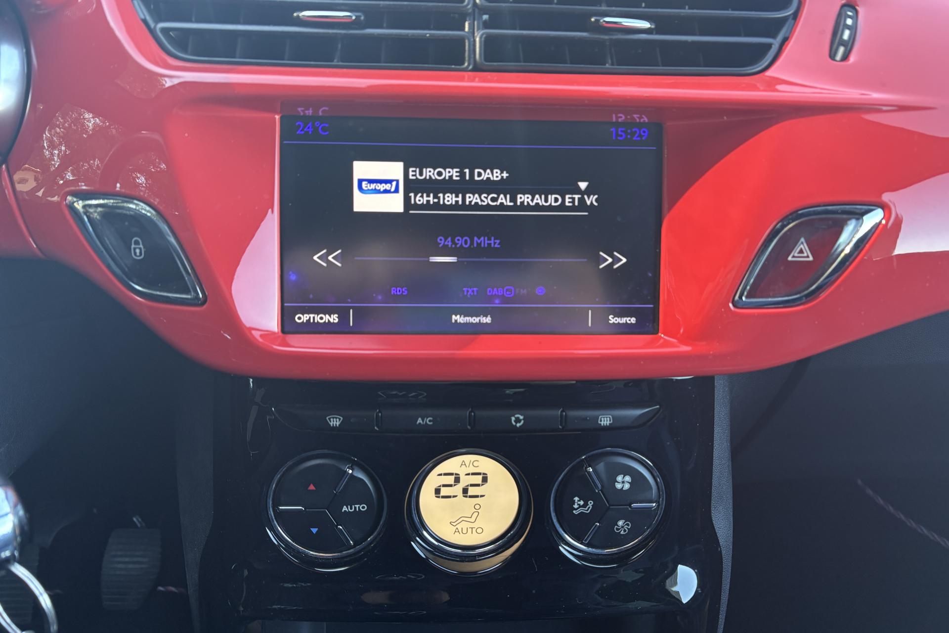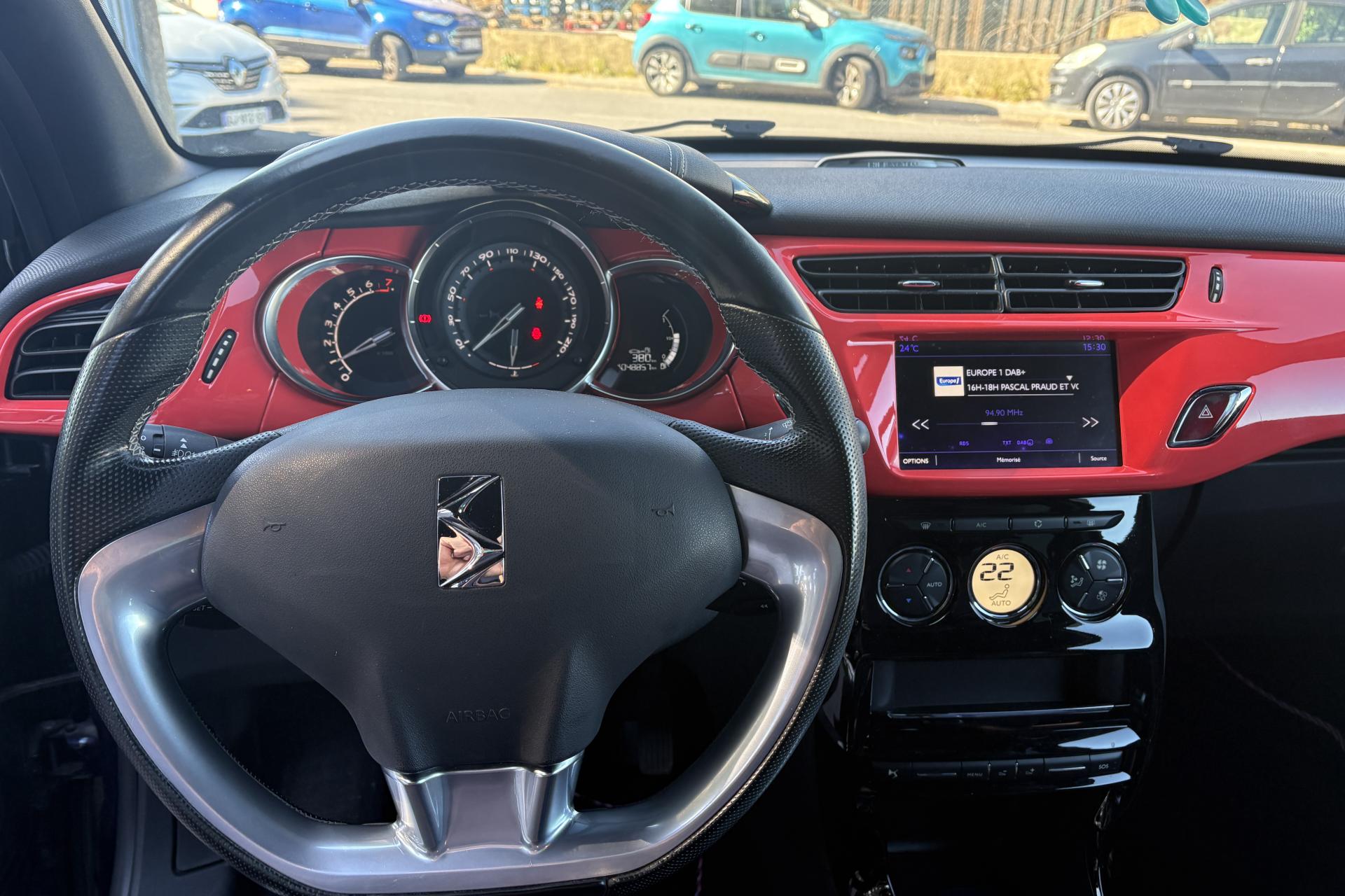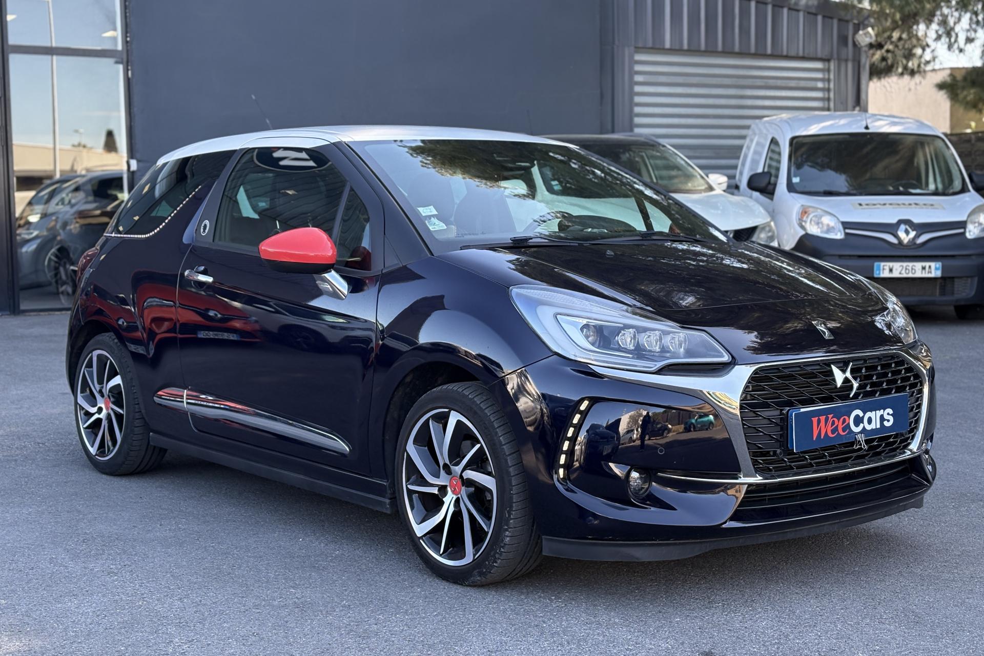 ABS avec répartiteur électronique de freinage (REF) et aide au freinage d'urgence (AFU)Accoudoir central avantAide au démarrage en côteAide au stationnement avant et arrière + caméra de reculAirbags frontaux conducteur et passager (déconnectable côté passager)Airbags latéraux type "thorax" pour conducteur et passager avantAirbags rideaux aux places avant et arrièreAppuie-tête avant et arrière règlables en hauteurBadges latéraux Ines de la FressangeBaguettes latérales chroméesBoîte à gants éclairée et ventiléeCalandre DS Wings chroméeCanule d'échappement chroméeCondamnation automatique des portes et du volet arrière en roulantCondamnation centralisée avec télécommandeContrôle dynamique de stabilité (ESP)Décor Ines de la FressangeDétection de sous-gonflage des pneumatiquesDirection électrique à assistance variableEclairage d'ambiance : cave à pied et rangement de consoleFeux arrière 3D à LEDFeux diurnes à LEDFixations ISOFIX pour sièges enfants aux places latérales arrièreIndicateur de changement de rapportIndicateur de température extérieureJantes alliage 17'' APHRODITE diamantées NoiresLève-vitres électriques avant à fonction séquentiel et antipincement côté conducteurOrdinateur de bord multifonctionPack AutoPack Navigation tactile avec DS Connect BoxPack Select Cuir Grainé Bleu EncrePavillon bi-ton avec coques de rétroviseurs extérieurs couleur RougePieds de rétroviseurs extérieurs chromésPlip avec insert Ines de la FressangePoignées extérieures des portes chroméesPrise 12 volts à l'avantProjecteurs DS LED VisionRégulateur et limiteur de vitesseRétroviseurs extérieurs réglables électriquementRoue de secours de type galetteSiège conducteur réglable en hauteurSièges conducteur et passager avant réglables en longueur et inclinaisonSurtapis avant et arrière Ines de la FressangeTeinte de caisse Bleu Encre et pavillon Blanc OpaleTémoin et alerte de non bouclage / débouclage de ceinture conducteur et passager avantVitres latérales et lunette arrière surteintéesVolant cuir pleine fleur perforé avec insert chrome satinVolant réglable en hauteur et en profondeur