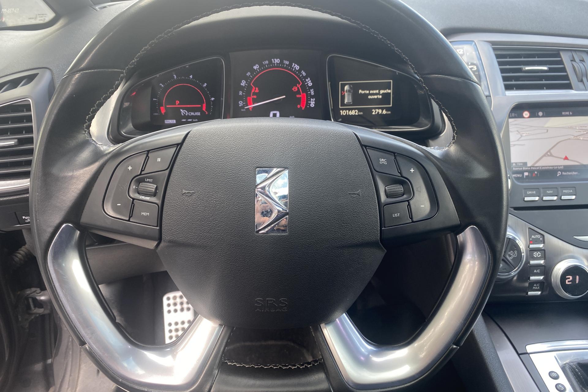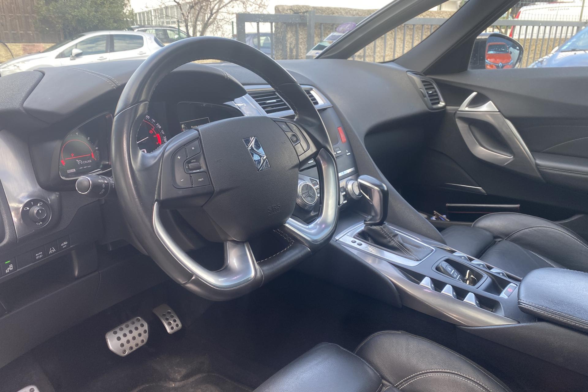 ABS avec répartiteur électronique de freinage (REF) et aide au freinage d'urgence (AFU)Accès et démarrage mains-libresAccoudoir central arrière avec trappe à skisAccoudoir central avant avec rangement réfrigéréAide au démarrage en côteAide au stationnement arrièreAirbags frontaux aux places avant, avec désactivation par clé de l'airbag passagerAirbags latéraux de type «thorax» aux places avantAirbags rideaux aux places avant et arrièreAllumage automatique des feux de détresseAllumage automatique des projecteursAntenne radio intégrée dans le vitrageBaguettes latérales et sabres chromésBandeau de pare-choc avant peint noir brillantBandeau de pare-chocs arrière noir brillantBanquette arrière 2/3 - 1/3 permettant un plancher platCaméra de recul et aide au stationnement avantClignotants impulsionnels 3 coupsClignotants LED intégrés dans les rétroviseursClimatisation automatique bi-zone, avec fonction REST, 3 modes de débit d'air, boîte à gants ventilée et aérateurs en 2ème rangCombiné avec matrice couleurCondamnation automatique des portes et du coffre en roulantContrôle de Traction IntelligentContrôle dynamique de stabilité (ESP) avec antipatinage des roues (ASR)Coques de rétroviseurs extérieurs Noir Perla Nera et pied chroméDétection de sous-gonflage des pneumatiquesDirection à assistance variableDouble canules d'échappement chroméesDS Connect Box avec Pack SOS et assistance inclusDS Connect NavEclairage d'accompagnement automatiqueEclairage des caves à piedsEssuie-glace à déclenchement automatiqueFixations Isofix aux places latérales arrièreFrein de stationnement électrique automatiqueIndicateur de rapport engagéInserts chromés sur le bouclier avantJantes alliage 18" Adelaide diamantées Noir brillant (235/45 R18)Kit de dépannage provisoire de pneumatiquesKit mains libres BluetoothLécheurs de vitres noir brillantLève-vitres électriques avant et arrière, séquentiels et antipincementMirror ScreenMontre analogique sur la console centralePack Cuir Grainé Noir BasaltePack DétectionPack UrbainPare-brise acoustiquePoignées de portes couleur carrosserie avec inserts chromésPrise 12 volts en arrière de la console centralePrise USB et prise JackProjecteurs antibrouillard avant avec éclairage statique d'intersectionProjecteurs DS LED VisionRégulateur - limiteur de vitesse programmableRepose-pieds et pédalier en aluminiumRétroviseur intérieur électrochromeRétroviseurs extérieurs rabattables électriquement avec éclaireurs latéraux sous rétroviseursSeuils de portes avant et arrière en métalSièges avant réglables en hauteurSignatures lumineuses avant et arrière avec guides de lumièreSurtapis aux places avant et arrièreSystème audio bi-tuner CD RDS MP3 6HP avec spatialisation du son + commandes au volantTémoin et alerte sonore de non-bouclage des ceintures de sécurité avant et arrièreToit cockpit avec 3 occulteurs électriquesVitres latérales et lunette arrière surteintéesVolant cuir gainé mainVolant réglable en hauteur et en profondeur