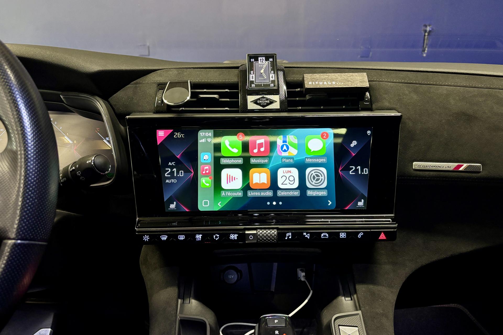 2 prises USB AR4 Crochets d'arrimage dans le coffreAérateurs aux places arrièresABS avec répartiteur électronique de freinage (REF)Accoudoir central avant avec rangementAide au démarrage en côteAide au stationnement arrièreAirbags de type « thorax » aux places avantAirbags frontaux conducteur et passager (déconnectable côté passager)Airbags rideaux aux places avant et arrièreAlerte Active de Franchissement Involontaire de Ligne (AAFIL)Alerte attention conducteurAllumage automatique des feux de détresseAllumage automatique des projecteursAntenne radio intégrée à la lunette arrièreAntibrouillards avant à LED avec éclairage d'intersectionAssistance au freinage d'urgenceAumônières au dos des sièges avantAvertisseur sonore bi-tonBadge de planche de bord DS PERFORMANCE LineBadges latéraux sur portes avant PERFORMANCE LineBanquette arrière 2/3 - 1/3 et 3 appuie-têtesBanquette arrière rabattable depuis le coffreBoîte à gants réfrigéréeClignotants impulsionnels 3 coupsCombiné numérique 12"Condamnation automatique des portes, du hayon et de la trappe à carburant en roulantContrôle de stabilité de l'attelageContrôle de Traction IntelligentContrôle dynamique de stabilité (ESP) avec antipatinage des roues (ASR)Coques de rétroviseurs extérieurs Noir Perla NeraDétecteur de sous-gonflageDirection à assistance variableDouble canules d'échappement chroméesEclairage d'accompagnement automatiqueEclairage d'accueil automatiqueEcran tactile 12"Entourage des vitres latérales chroméFeux arrière 3D traitement écailles avec indicateurs de direction défilant à LEDFeux diurnes à LEDFixations Isofix pour siège passager avant et places latérales arrièreFrein de stationnement électrique automatiqueGuide utilisateur numériqueIndicateur de rapport engagéIntérieur Alcantara NoirLève-vitres électriques avant et arrière, séquentiels et antipincementLunette arrière chauffanteMirror ScreenNavigation et Radio Numérique DABOrdinateur de bordOuverture et fermeture à distance des vitresPédalier et repose-pied en aluminiumPack Auto ConfortPack SécuritéPack Sièges ConfortPalettes au volantPanneaux de porte en AlcantaraPare-brise acoustiquePare-soleil rembourrés avec éclairage à LEDPieds de rétroviseurs extérieurs couleur carrosseriePlanche de bord en AlcantaraPoignées de portes couleur carrosseriePrise 12V dans le coffrePrise USB avantRégulateur et limiteur de vitesseRétroviseur intérieur électrochrome sans contourRétroviseurs extérieurs rabattables électriquement avec projection au sol du logo DSRangements latérauxReconnaissance des panneaux de vitesse et préconisationReconnaissance vocaleSOS & ASSISTANCESystème Audio Analogique à 8 HP avec prise USB et BluetoothTémoin et alerte sonore de non-bouclage des ceintures de sécurité avant et arrièreVerrouillage automatique des portes en roulantVolant réglable en hauteur et en profondeur