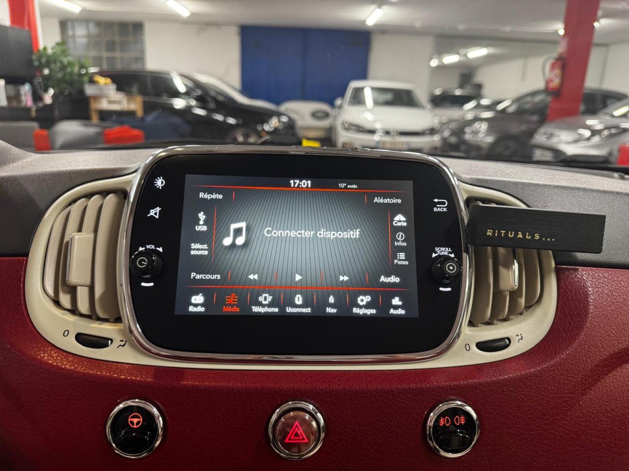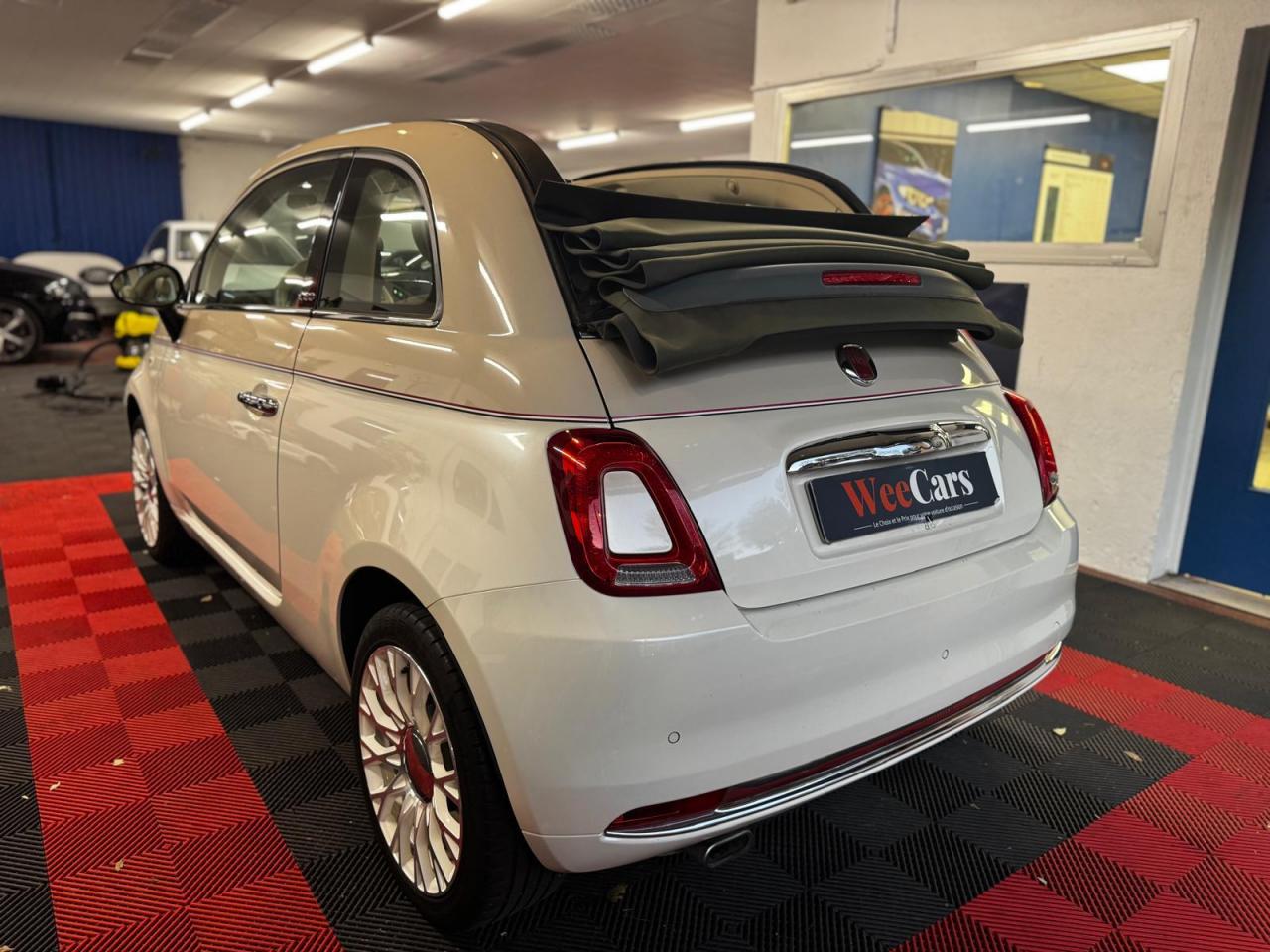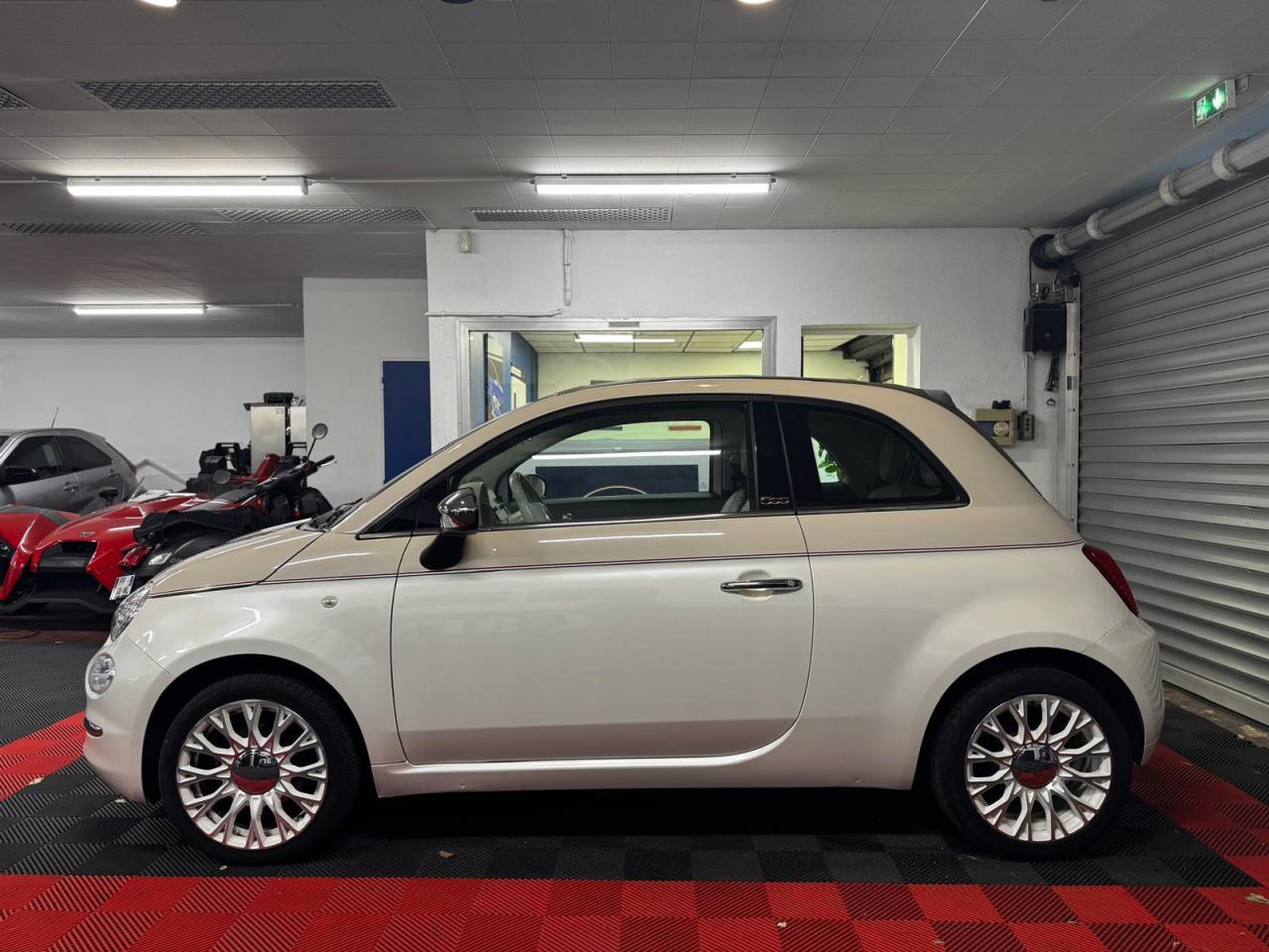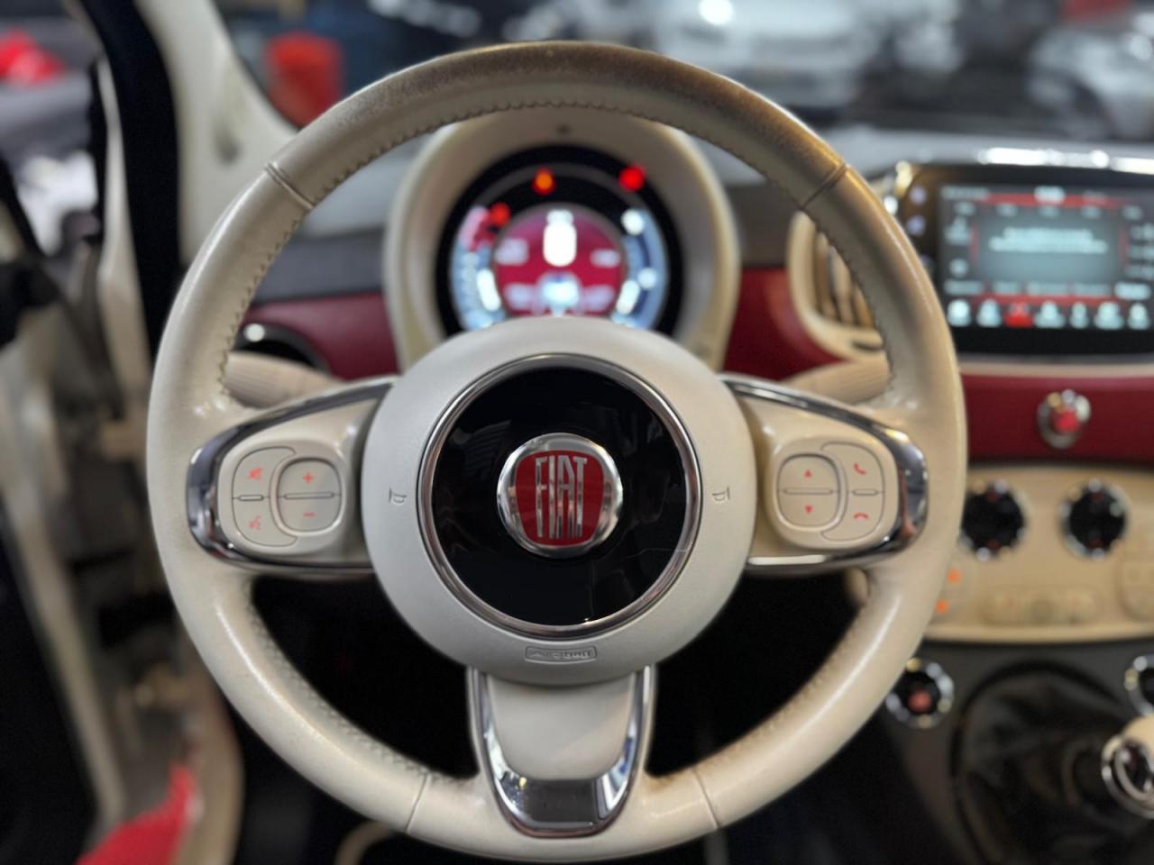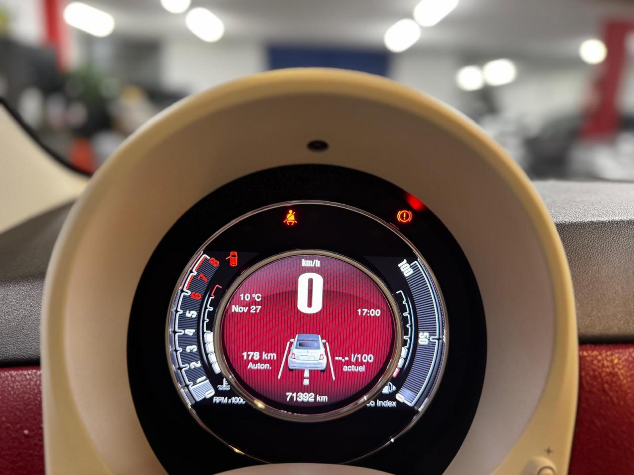 ABS – antiblocage des roues avec répartiteur de freinage EBDAir conditionné avec filtre à pollenAirbag Fiat de genouxAirbags fiat conducteur et passagerAirbags Fiat de toitAirbags Fiat latéraux avantAppuie-tête à l'avant, réglables en hauteurAssistance au freinage d'urgenceAttaches IsofixBanquette arrière fractionnable 50/50Banquette arrière rabattable avec appui-têteCondamnation automatique des ouvrants en roulantCondamnation centralisée à distanceDirection assistée Dualdrive avec fonction"City"Dispositif d'éclairage ‘'Follow me home''Eclairage du coffreESP - contrôle électronique de stabilité avec “Hill Holder"Feux de jour à LEDJantes en alliage "Vintage" de 16” blanches et chromeKit ChromeLimiteur de vitesseLogo « Anniversario » sur la malle arrièreLogo Vintage (à l’avant, sur le hayon et sur le volant)Moulure chromée sur capotPare-chocs couleur carrosseriePeinture pastel extra-sériePoignée de maintien intérieureProjecteurs antibrouillardRadar de reculRégulateur de vitesseRétroviseurs chromésRétroviseurs extérieurs réglables électriquement et dégivrants avec sonde de températureSellerie Tissu gris/ivoire avec accents Orange ou Vert et Logo 500 grisSiège conducteur réglable en hauteurSièges à rayures horizontales Style années 60 avec Passepoil et Logo 500 brodéTapis de sol avec logo « Anniversario »Toit vitré panoramique fixe avec pare-soleilUconnect Radio 5" LIVE (Dual Tuner/USB/AUX/Bluetooth)Vitres avant électriquesVolant Gainé de cuir avec commandes audioVolant réglable en hauteur
