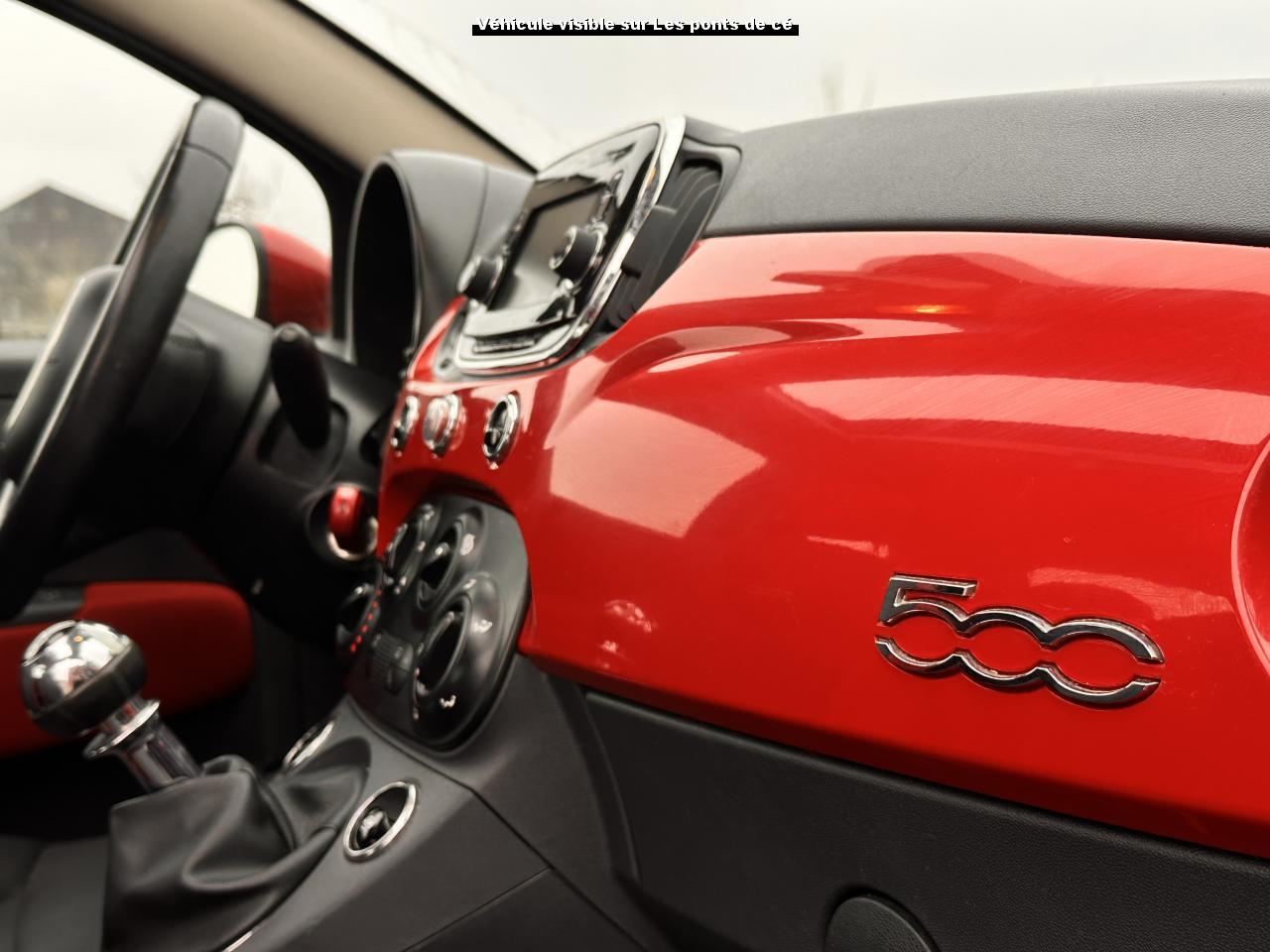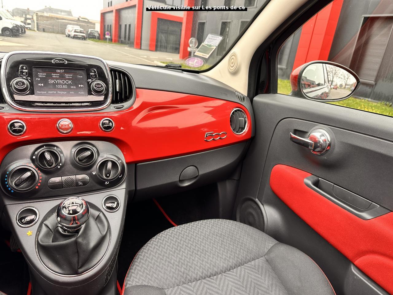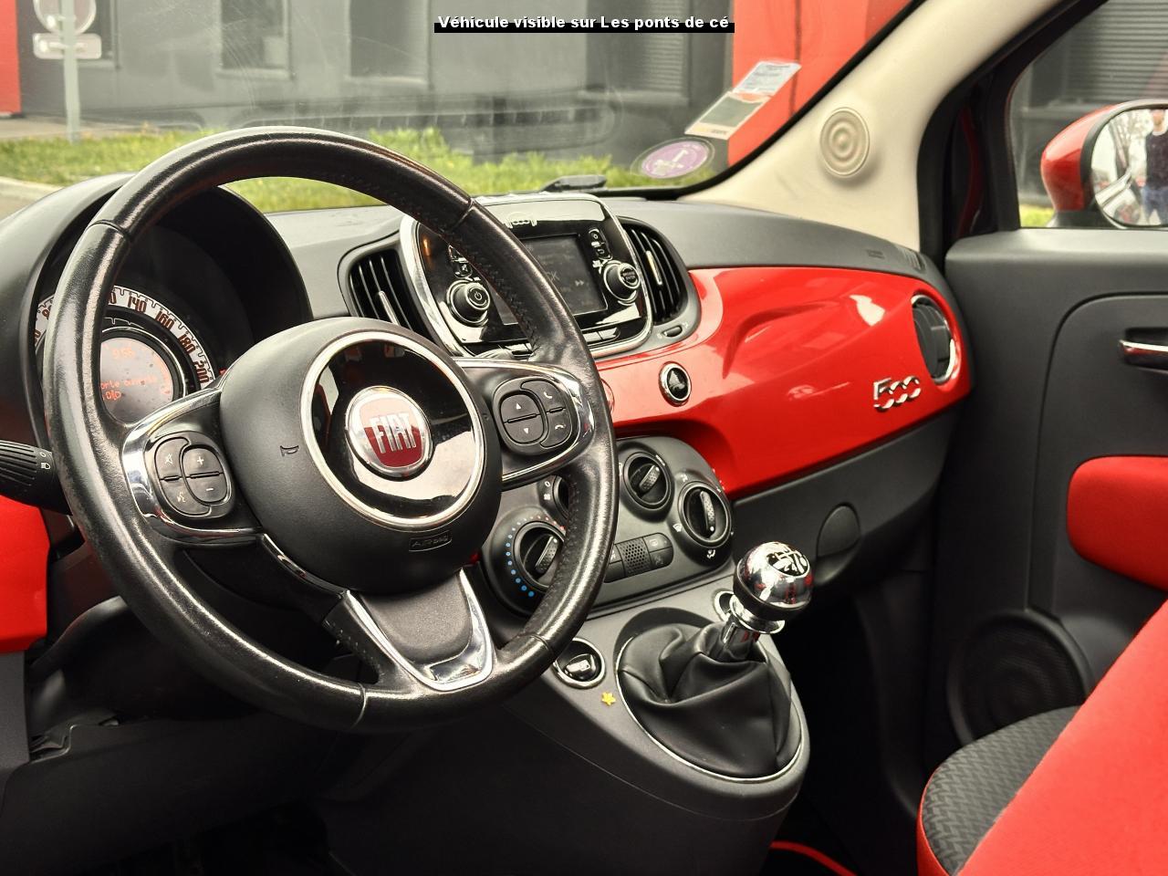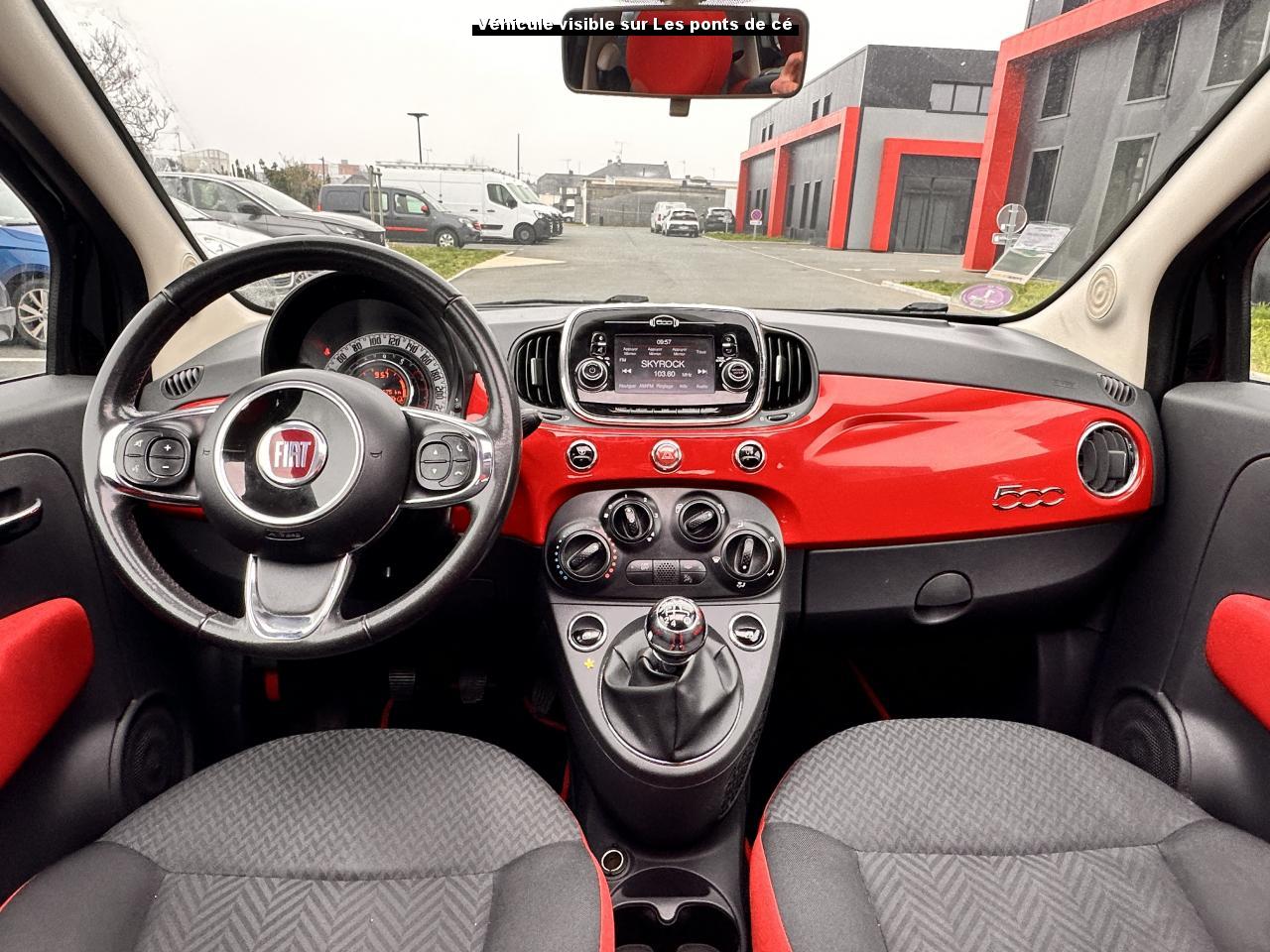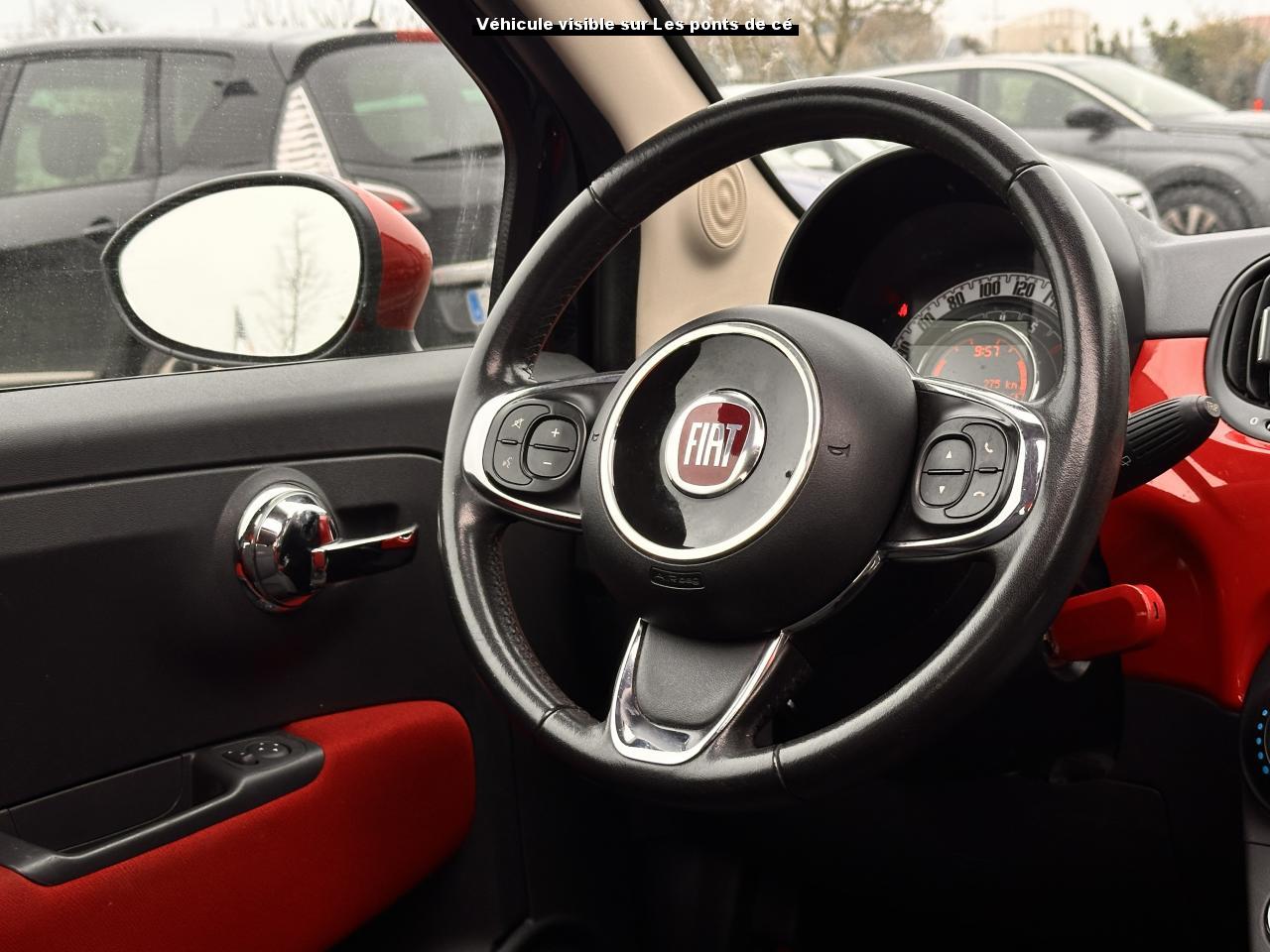 ABS – antiblocage des roues avec répartiteur de freinage EBDAir conditionné avec filtre à pollenAirbag Fiat de genouxAirbags fiat conducteur et passagerAirbags Fiat de toitAirbags Fiat latéraux avantAppuie-tête à l'avant, réglables en hauteurAssistance au freinage d'urgenceAttaches IsofixBaguettes latérales rouges (avec logo 500)Banquette arrière rabattable 50/50 et appuie-tête arrièreCombiné de bord à affichage numérique TFT 7''Condamnation automatique des ouvrants en roulantCondamnation centralisée à distanceCoques de rétroviseurs extérieurs rougesDirection assistée Dualdrive avec fonction"City"Dispositif d'éclairage ‘'Follow me home''Eclairage du coffreESP - contrôle électronique de stabilité avec “Hill Holder"Feux de jour à LEDJantes alliage 15” ReversoKit ChromeKit fumeurPare-chocs couleur carrosseriePeinture métallisée Crossover BlackPoignée de maintien intérieurePoignées de porte chroméesProjecteurs antibrouillardRadar de reculRétroviseurs extérieurs réglables électriquement et dégivrants avec sonde de températureRoue de secours “galette”Siège conducteur réglable en hauteurToit ouvrant électrique panoramique SkydomeVitres avant électriquesVolant Gainé de cuir avec commandes audioVolant réglable en hauteur