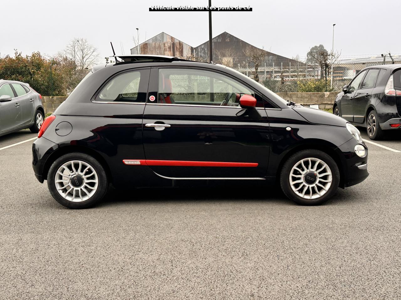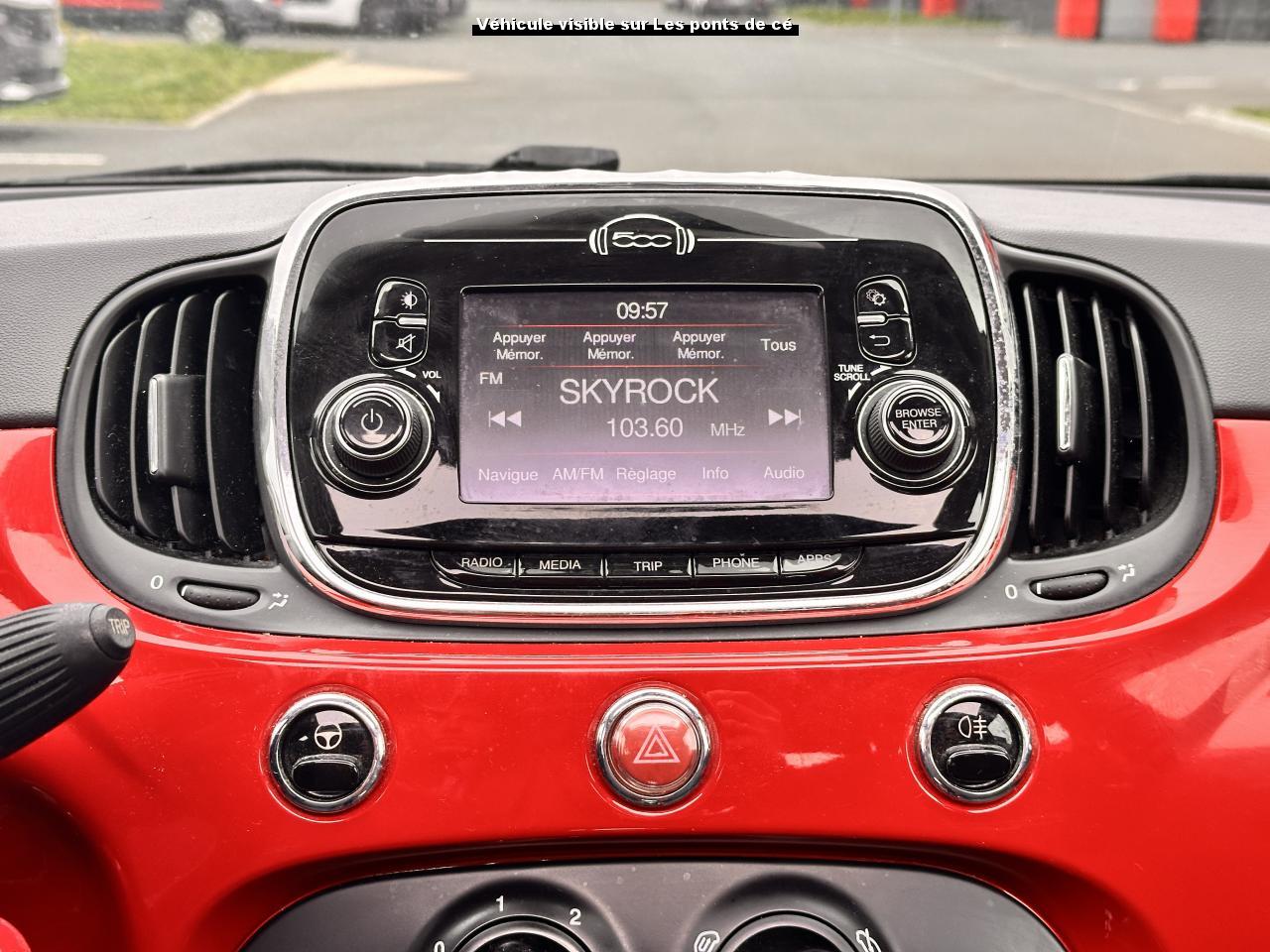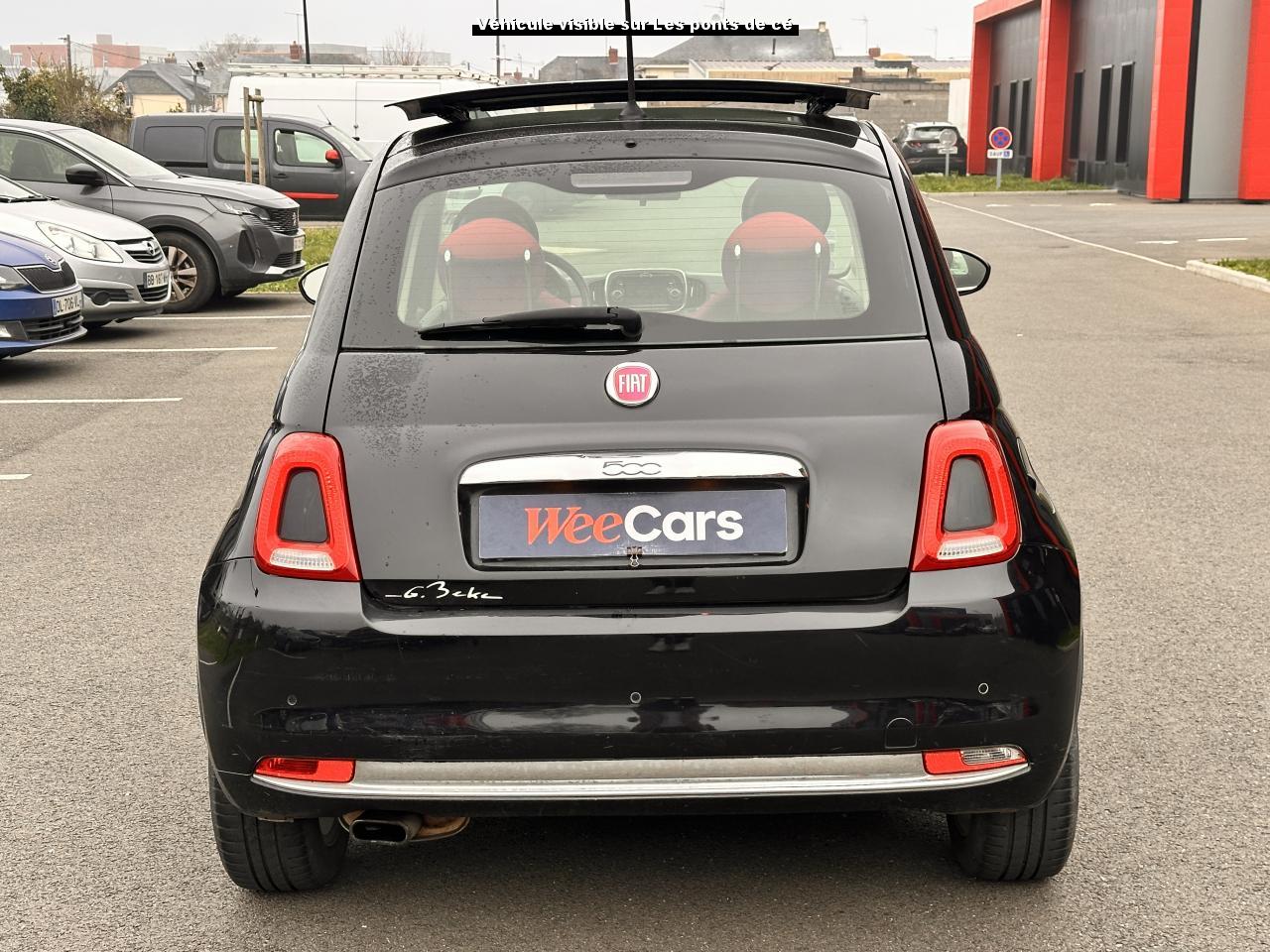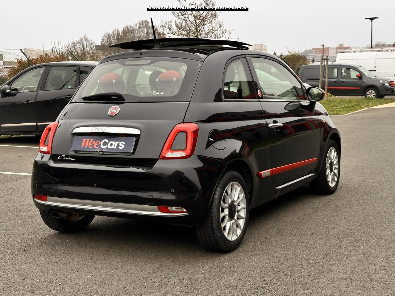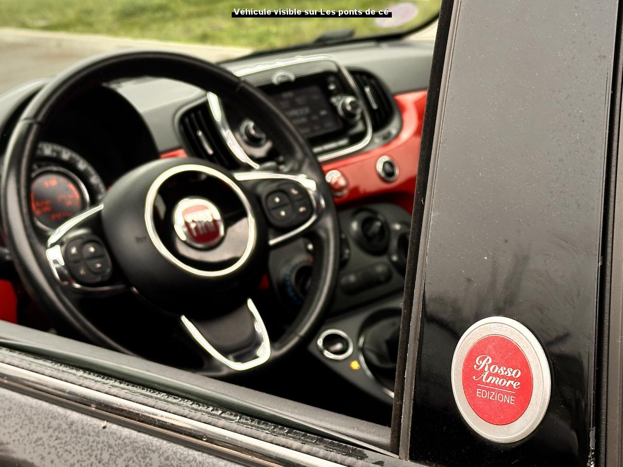 ABS – antiblocage des roues avec répartiteur de freinage EBDAir conditionné avec filtre à pollenAirbag Fiat de genouxAirbags fiat conducteur et passagerAirbags Fiat de toitAirbags Fiat latéraux avantAppuie-tête à l'avant, réglables en hauteurAssistance au freinage d'urgenceAttaches IsofixBaguettes latérales rouges (avec logo 500)Banquette arrière rabattable 50/50 et appuie-tête arrièreCombiné de bord à affichage numérique TFT 7''Condamnation automatique des ouvrants en roulantCondamnation centralisée à distanceCoques de rétroviseurs extérieurs rougesDirection assistée Dualdrive avec fonction"City"Dispositif d'éclairage ‘'Follow me home''Eclairage du coffreESP - contrôle électronique de stabilité avec “Hill Holder"Feux de jour à LEDJantes alliage 15” ReversoKit ChromeKit fumeurPare-chocs couleur carrosseriePeinture métallisée Crossover BlackPoignée de maintien intérieurePoignées de porte chroméesProjecteurs antibrouillardRadar de reculRétroviseurs extérieurs réglables électriquement et dégivrants avec sonde de températureRoue de secours “galette”Siège conducteur réglable en hauteurToit ouvrant électrique panoramique SkydomeVitres avant électriquesVolant Gainé de cuir avec commandes audioVolant réglable en hauteur