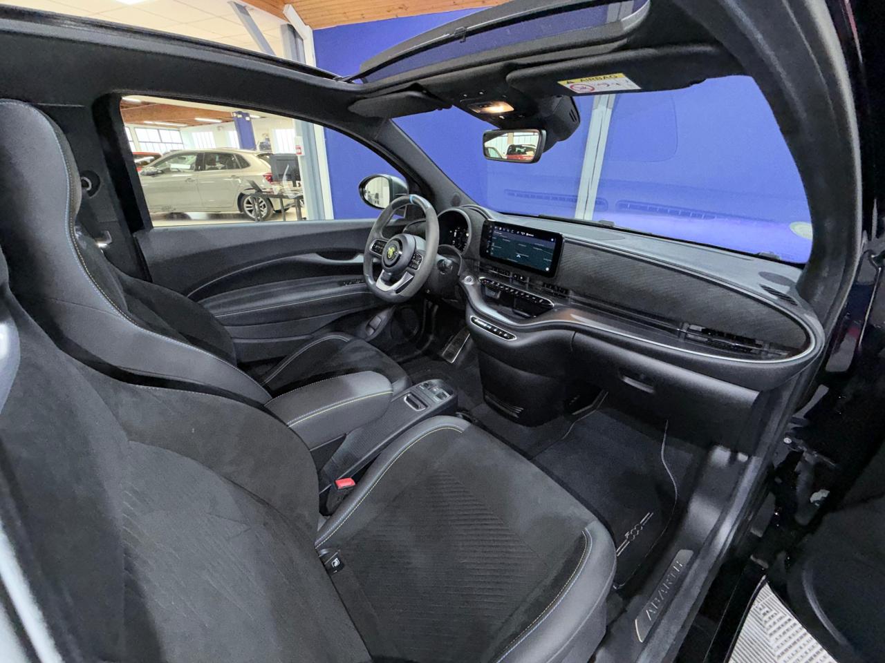 6 AirbagsAide au maintien dans la voieAide au stationnement 360°Alerte attention conducteurAppel d'urgence - EcallApple CarPlay et Android Auto (les deux sans fil)Caméra arrièreCapote noireChargeur à inductionClimatisation automatiqueCombiné instrumentation numérique 7"Coque de clé 'galet'Détecteur d'angle mortDétecteur de pluie et allumage automatique des projecteursDouble surpiqures sport sur les panneaux de porte et accoudoir centralFreinage d'urgence autonome avec reconnaissance piétons et cyclistesInserts en Alcantara et logo Abarth sur volantJantes alliage 18'' gris titane diamentéesKeyfree (entrée et démarrage mains libres)Limiteur de vitesse intelligentLogo Abarth sur l'appui-tetePédalier sportPeinture Vert AcidePlanche de bord en AlcantaraRégulateur de vitesseRétroviseur intérieur électrochromeReconnaissance des panneaux de signalisationSellerie Alcantara et cuirSeuils de porte en aluminium gravés du lettrage AbarthSiège conducteur réglable en hauteurSièges arrière rabattables 50/50Sièges sport avec appuie tête intégrésSticker latéral noirSurpiqures bleues sur les siègesSystème Audio JBLSystème de navigationSystème Uconnect 10,25”Tableau de bord gris titaneVitres arrière surteintéesVolant sport 3 branches gainé de cuir
