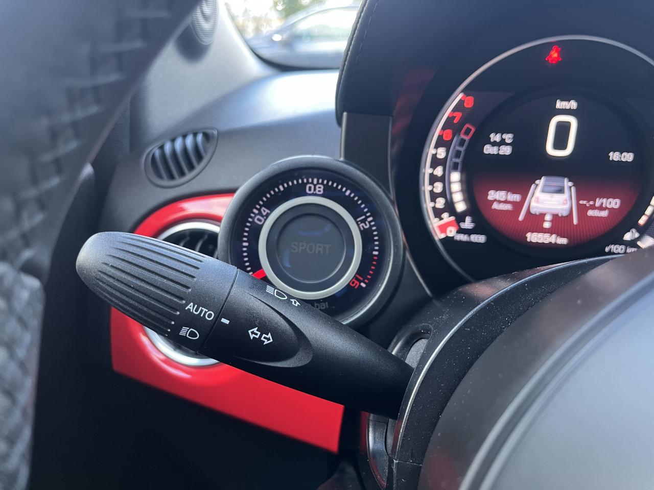 2 appuie-têtes réglables en hauteurABS – antiblocage des roues avec répartiteur de freinage EBDAirbag genoux conducteurAirbags conducteur et passagerAirbags latéraux avantAirbags rideauxAmortisseurs Cofap à l'avant avec valve FSDASR (antipatinage) et « Hill Holder » (système d'aide au démarrage en côte)Assistance au freinage d'urgenceBanquette AR rabattable 50/50Becquet arrièreBoîte à gantsBouclier avant avec calandre nid d’abeille et inscription “ABARTH” en reliefBoucliers avant et arrière avec inserts noirsClimatisation automatiqueDirection assistée Dualdrive avec fonction “Sport”Disques de freins Ø 284 X 22 auto-ventilés à l'avant et Ø 240 X 11 à l'arrièreDouble sorties d'échappement chroméeEcran couleur TFT 7'' multifonctionsESP (contrôle électronique de stabilité) avec MSR (régulation de l'inertie moteur)Etriers de freins grisFeux de jour à LEDFixation Isofix pour siège enfant à l'arrièreJantes alliage 16" 8 branchesKit 595 monté en usine - Pédalier métal, kits de tapis avec logo Abarth, seuils de porte AbarthKit réparation de pneu "Fix & Go" avec bombe anti-crevaisonManomètre de mesure de pression du turboMode Sport : fonction qui agit sur les performances moteur, sur le système de freinage, ainsi que sur la directionPeinture pastel extra-série Gris PistaPhares antibrouillard avant intégrésPlanche de bord couleur carrosseriePoignées de portes, poignée de coffre et baguette entourant logo AV chrome satinéProjecteurs poly-elliptiquesRétroviseurs extérieurs couleur carrosserieRétroviseurs extérieurs électriques et dégivrantsSellerie Tissu Abarth noireSiège conducteur réglable en hauteurTTC (Torque Transfer Control) : contrôle électronique du transfert de coupleUconnect 7'' HD LIVE (écran tactile 7'' HD, bluetooth, audio streaming, commande vocale, port USB et AUX, commandes au volant, services LIVE)Volant cuir avec point milieu et branche inférieur couleur aluVolant réglable en hauteur