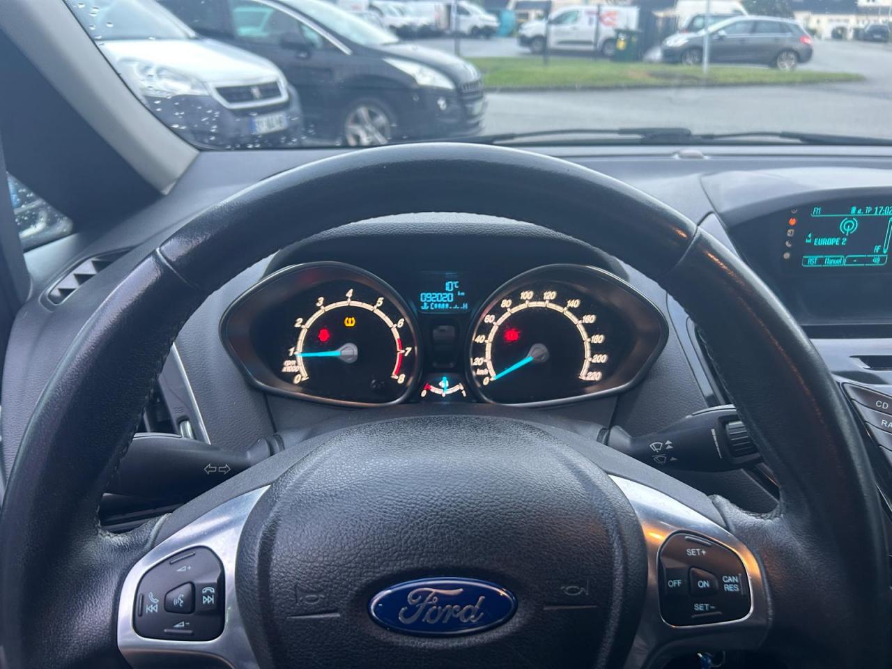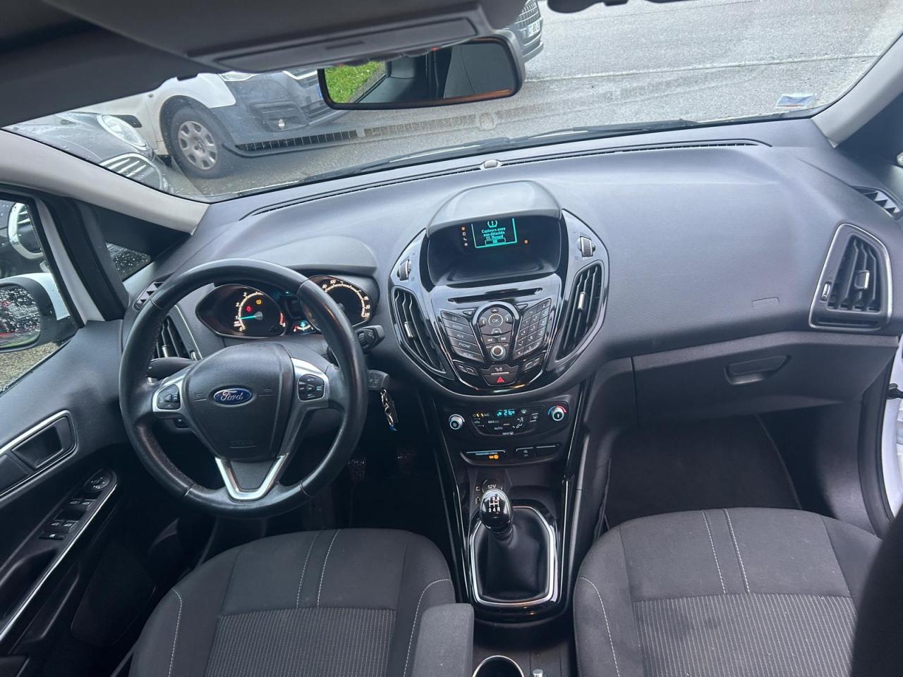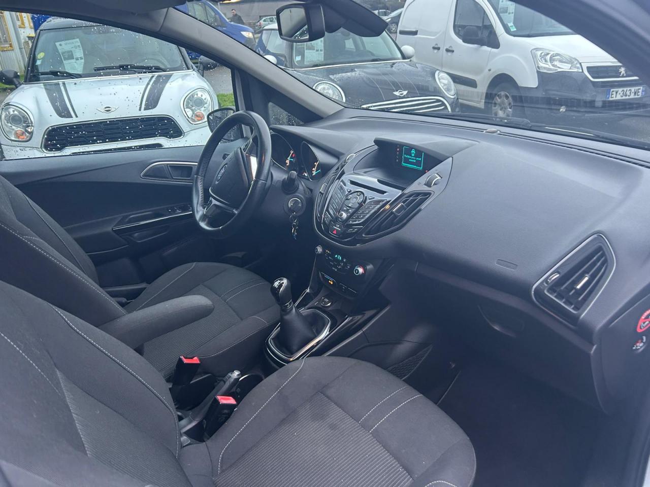 2 Fixations Isofix à l'arrière3 appuie-tête arrièreAccoudoir central arrièreAccoudoir siège conducteurAirbag genoux conducteurAirbags frontaux, latéraux (thorax) et rideauxAlerte de ceinture de sécurité conducteur et passagerAnti-patinageAssistance au freinage d'urgenceAudio Pack 6 : Radio CD/MP3, 6 hauts-parleurs, USB, prise auxiliaire, commandes au volant, écran matriciel 3", Ford SYNC incluant le kit Bluetooth avec commandes vocales et Ford SOS (appel d'urgence)Banquette rabattable d'une main - 60/40Barre stabilisatrice avantBoîte à gants éclairéeBoucliers couleur carrosserieChauffage auxiliaireClimatisation automatiqueColonne de direction réglable en hauteur / profondeurConsole centrale Premium avec espace de rangement, porte-bouteilles, rangement CD et prise 12V à l'avantContrôle vectoriel de coupleCrochets d'arrimageDéclenchement automatique des feux de détresse lors d'un freinage d'urgenceDésactivation de l'airbag du passager avantDirection assistée électrique (EPAS)Dossier de siège passager rabattableEclairage à extinction progressiveEclairage d'ambiance (plafond)Eclairage d'ambiance (plancher)Eclairage de coffreEclairage de courtoisie avant et arrièreEcoMode (système d'aide à la conduite économique)Entourage des poignées de portes intérieures façon chromeESP + HLA (aide au démarrage en côte)Essuie-glaces avant automatique avec détecteur de pluie et allumage automatique des feuxExtinction différée des pharesFermeture globale des 4 vitres électriques avec la télécommandeFord Easy Acces: Système d'ouverture avec portes avant conventionnelles, porte arrière coulissantes et montant central intégré aux portesGarnissage tissu Ebony noirGrille de calandre Noir Piano avec entourage chroméJantes alliage 16" 10 branchesKit de réparation pneumatiqueLampes de lecture à l'avantLèche-vitres chroméMy KeyOrdinateur de bordPeinture non métalliséePlancher du coffre réglable en hauteurPoignée de hayon couleur carrosseriePoignées de portes couleur carrosseriePommeau de levier de vitesses en cuirPorte-lunettesPrise 12 V à l'arrièreProjecteurs antibrouillardProjecteurs halogènes avec feux de jour à LEDRégulateur de vitesseRépétiteurs de clignotantsRétroviseur de surveillance des enfantsRétroviseur intérieur électrochromeRétroviseurs extérieurs réglables électriquement couleur carrosserieSangles de fixation pour trousse de premier secours et espace de rangement pour triangle de signalisationSiège conducteur avec poche aumônièreSiège conducteur avec réglage lombaireSiège conducteur réglable en hauteur manuellementSiège passager avant à réglage manuelSystème de protection intelligent (IPS)Système de surveillance de pression des pneusSystème intelligent de charge par régénérationSystème Stop & StartTapis de sol arrièreTapis de sol avantTrappe EasyFuel sans bouchon avec détrompeur de carburantVerrouillage centralisé (2 clés rétractables)Vitres avant et arrière électriquesVolant 3 branches multifonctionsVolant gainé cuir