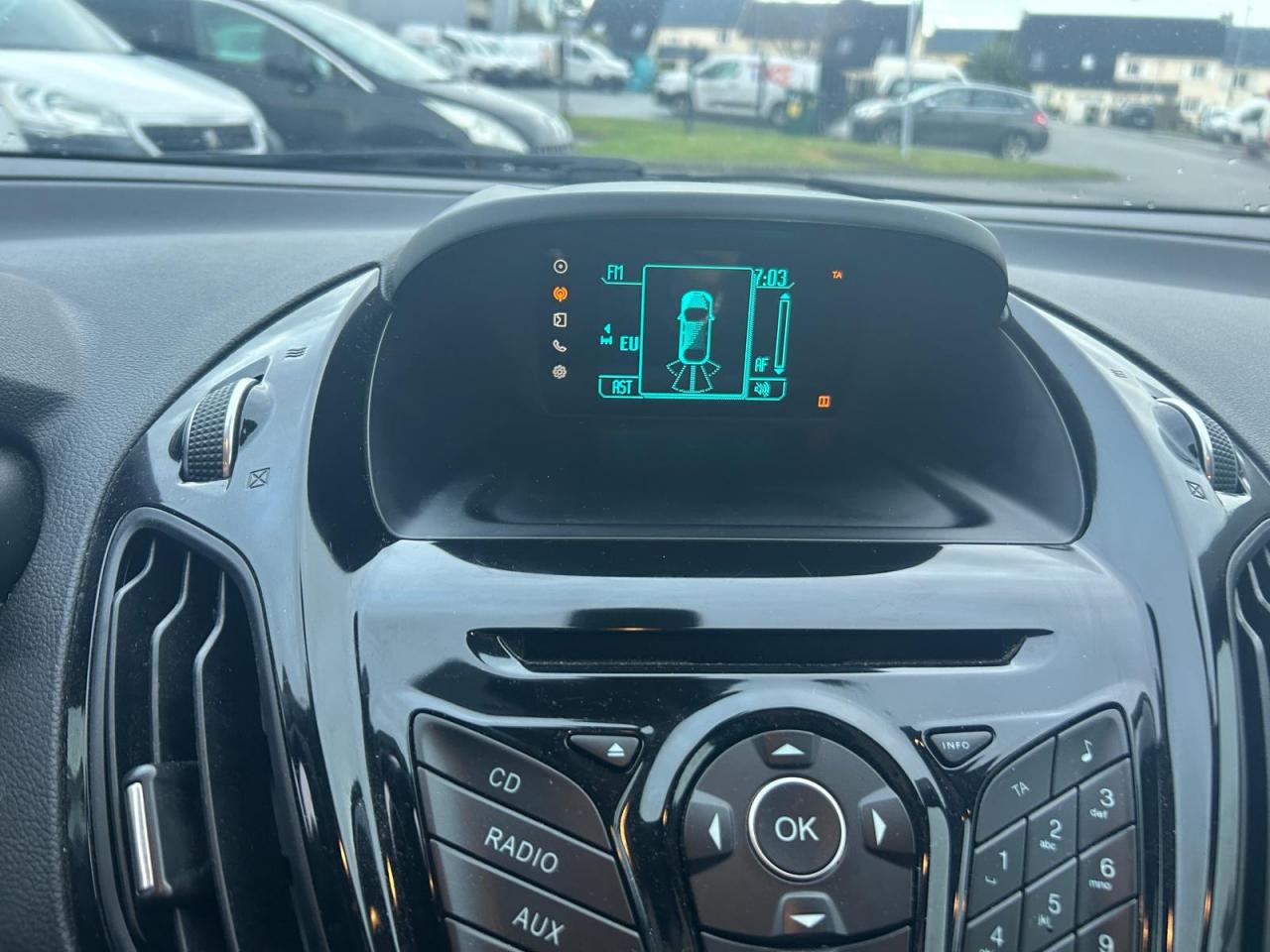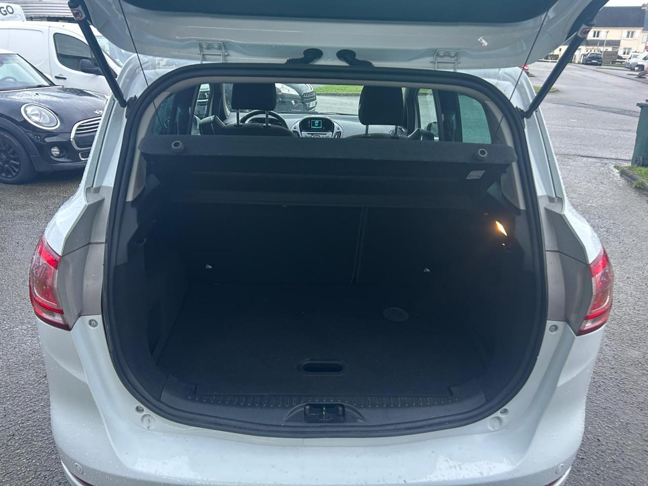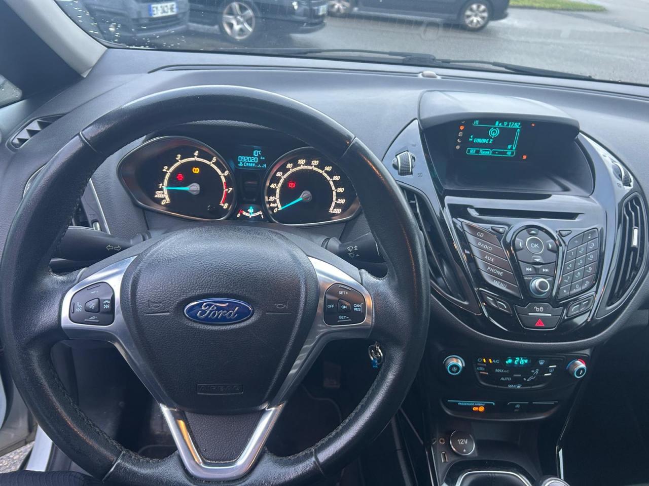 2 Fixations Isofix à l'arrière3 appuie-tête arrièreAccoudoir central arrièreAccoudoir siège conducteurAirbag genoux conducteurAirbags frontaux, latéraux (thorax) et rideauxAlerte de ceinture de sécurité conducteur et passagerAnti-patinageAssistance au freinage d'urgenceAudio Pack 6 : Radio CD/MP3, 6 hauts-parleurs, USB, prise auxiliaire, commandes au volant, écran matriciel 3", Ford SYNC incluant le kit Bluetooth avec commandes vocales et Ford SOS (appel d'urgence)Banquette rabattable d'une main - 60/40Barre stabilisatrice avantBoîte à gants éclairéeBoucliers couleur carrosserieChauffage auxiliaireClimatisation automatiqueColonne de direction réglable en hauteur / profondeurConsole centrale Premium avec espace de rangement, porte-bouteilles, rangement CD et prise 12V à l'avantContrôle vectoriel de coupleCrochets d'arrimageDéclenchement automatique des feux de détresse lors d'un freinage d'urgenceDésactivation de l'airbag du passager avantDirection assistée électrique (EPAS)Dossier de siège passager rabattableEclairage à extinction progressiveEclairage d'ambiance (plafond)Eclairage d'ambiance (plancher)Eclairage de coffreEclairage de courtoisie avant et arrièreEcoMode (système d'aide à la conduite économique)Entourage des poignées de portes intérieures façon chromeESP + HLA (aide au démarrage en côte)Essuie-glaces avant automatique avec détecteur de pluie et allumage automatique des feuxExtinction différée des pharesFermeture globale des 4 vitres électriques avec la télécommandeFord Easy Acces: Système d'ouverture avec portes avant conventionnelles, porte arrière coulissantes et montant central intégré aux portesGarnissage tissu Ebony noirGrille de calandre Noir Piano avec entourage chroméJantes alliage 16" 10 branchesKit de réparation pneumatiqueLampes de lecture à l'avantLèche-vitres chroméMy KeyOrdinateur de bordPeinture non métalliséePlancher du coffre réglable en hauteurPoignée de hayon couleur carrosseriePoignées de portes couleur carrosseriePommeau de levier de vitesses en cuirPorte-lunettesPrise 12 V à l'arrièreProjecteurs antibrouillardProjecteurs halogènes avec feux de jour à LEDRégulateur de vitesseRépétiteurs de clignotantsRétroviseur de surveillance des enfantsRétroviseur intérieur électrochromeRétroviseurs extérieurs réglables électriquement couleur carrosserieSangles de fixation pour trousse de premier secours et espace de rangement pour triangle de signalisationSiège conducteur avec poche aumônièreSiège conducteur avec réglage lombaireSiège conducteur réglable en hauteur manuellementSiège passager avant à réglage manuelSystème de protection intelligent (IPS)Système de surveillance de pression des pneusSystème intelligent de charge par régénérationSystème Stop & StartTapis de sol arrièreTapis de sol avantTrappe EasyFuel sans bouchon avec détrompeur de carburantVerrouillage centralisé (2 clés rétractables)Vitres avant et arrière électriquesVolant 3 branches multifonctionsVolant gainé cuir