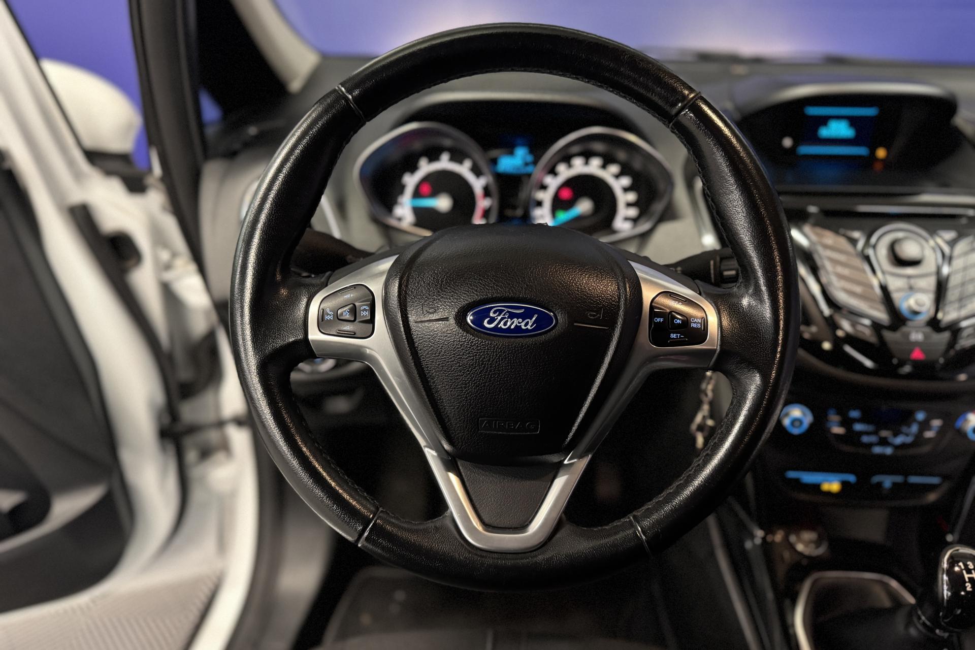 2 Fixations Isofix à l'arrière3 appuie-tête arrièreAccoudoir central arrièreAccoudoir siège conducteurAirbag genoux conducteurAirbags frontaux, latéraux (thorax) et rideauxAlerte de ceinture de sécurité conducteur et passagerAlerte de dégonflage des pneumatiquesAudio Pack 6 : Radio CD/MP3, 6 hauts-parleurs, USB, prise auxiliaire, commandes au volant, écran matriciel 3", Ford SYNC incluant le kit Bluetooth avec commandes vocales et Ford SOS (appel d'urgence)Banquette rabattable d'une main - 60/40Boîte à gants éclairéeChauffage auxiliaireClimatisation automatiqueColonne de direction réglable en hauteur / profondeurContrôle vectoriel de coupleDésactivation de l'airbag du passager avantDirection assistée électrique (EPAS)Dossier de siège passager rabattableEclairage à extinction progressiveEclairage d'ambiance au plafond, central et sous la planche de bordEclairage de coffreEclairage de courtoisie avant et arrièreEcoMode (système d'aide à la conduite économique)ESP + HLA (aide au démarrage en côte)Essuie-glaces avant automatique avec détecteur de pluie et allumage automatique des feuxFaux plancher à hauteur réglable dans le coffreFermeture globale des 4 vitres électriques avec la télécommandeGrille de calandre Noir Piano avec entourage chroméJantes alliage 16", 15 branchesLampes de lecture à l'avantLigne chromée à la base des vitres latéralesMy KeyOrdinateur de bordPoignées de portes couleur carrosseriePommeau de levier de vitesses en cuirPorte-lunettesPrise 12 V à l'arrièreProjecteurs antibrouillardProjecteurs halogènes avec feux de jour à LEDRégulateur de vitesseRétroviseur de surveillance des enfantsRétroviseur intérieur électrochromeRétroviseurs extérieurs réglables électriquement couleur carrosserieSiège conducteur avec poche aumônièreSiège conducteur avec réglage lombaireSiège conducteur réglable en hauteur manuellementSystème de détection de baisse de la pression des pneus (DDS)Système intelligent de charge par régénérationSystème Stop & StartTapis de solTrappe EasyFuel sans bouchon avec détrompeur de carburantVerrouillage centralisé (2 clés pliantes)Vitres avant et arrière électriquesVolant gainé cuir