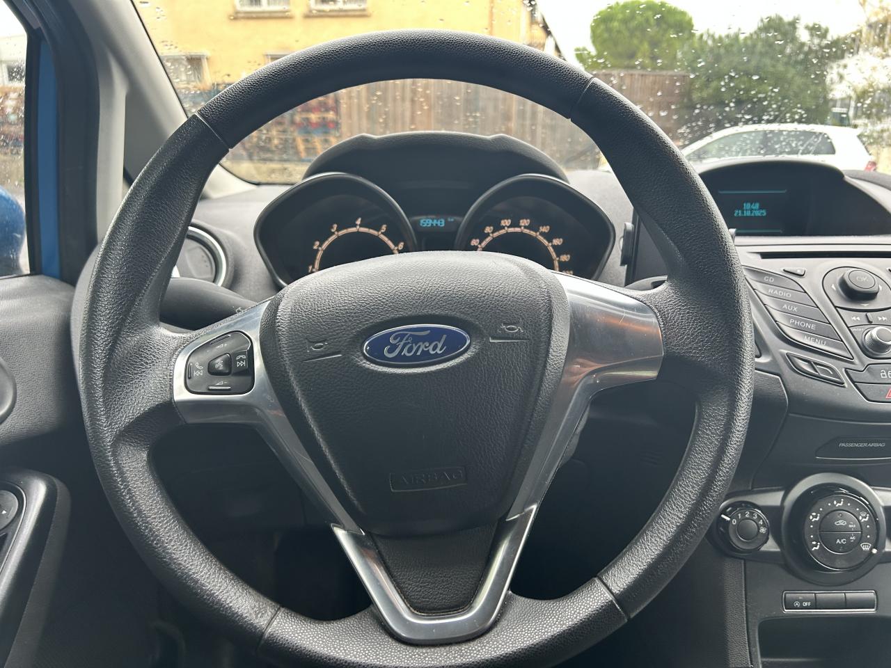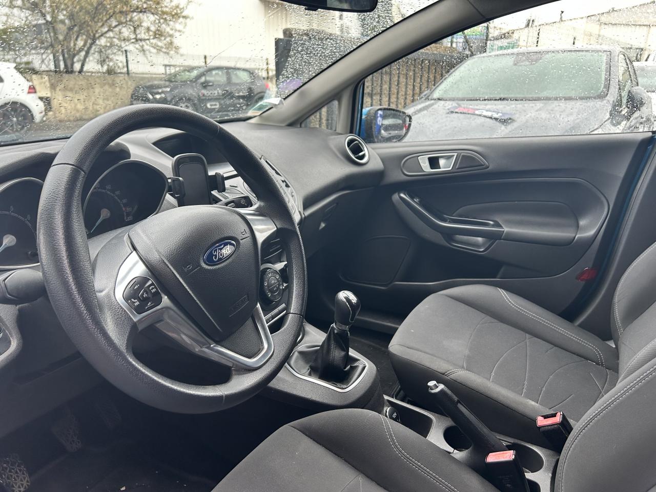 2 Fixations Isofix à l'arrière5 ceintures de sécurité 3 pointsAir conditionnéAirbags frontaux, latéraux, rideaux et genoux conducteurAlertes de ceinture de sécurité conducteur et passager AVAudio Pack 11 SYNC : Radio CD/MP3, Aux et USB, 6 haut-parleurs, écran central matriciel 3.5", commandes au volant, Ford SYNC avec AppLink, Bluetooth et commandes vocalesBanquette arrière rabattable 40/60Becquet arrière couleur carrosserieCeintures de sécurité avant réglables en hauteurConsole centrale avec 2 porte-gobelets et prise 12VDésactivation de l'airbag du passager avantDirection assistée électriqueEclairage de coffreEclairage intérieur à extinction progressiveEntourage du levier de vitesses façon chromeEnvironnement Noir Charcoal, Tissu Noir Charcoal / Gris Sterling avec coutures argentESP + HLA (aide au démarrage en côte)Extinction différée des pharesFeux de jour à ampoule et réflecteurGrille de calandre chroméeIndicateur de changement de vitessesJantes acier 15''Kit de réparation pneumatiqueMy KeyOrdinateur de bordPare-chocs couleur carrosseriePoches aumônières au dos des sièges conducteur et passager avantPoignée de hayon couleur carrosseriePoignées de portes couleur carrosseriePommeau de levier de vitesses en cuirPommeau de vitesses gainé de cuirProjecteurs antibrouillardRétroviseurs extérieurs réglables électriquement couleur carrosserieSiège conducteur réglable avant/arrière et en hauteur manuellementSystème de charge intelligente par régénérationSystème de contrôle de la pression des pneumatiquesTrappe EasyFuel sans bouchon avec détrompeur de carburantVerrouillage centralisé à distanceVitres AV électriques à impulsion haut/basVitres teintéesVolant gainé cuirVolant réajustable en hauteur et profondeur