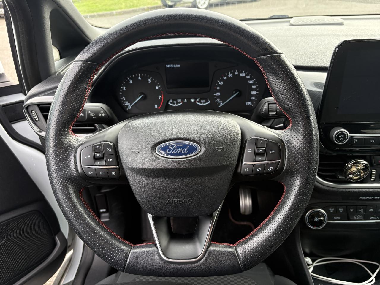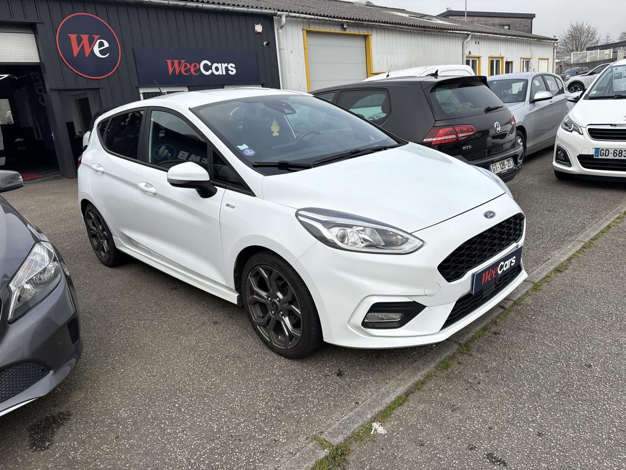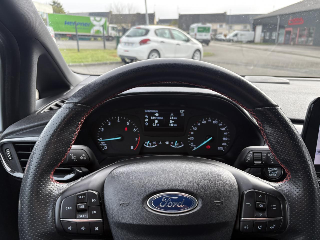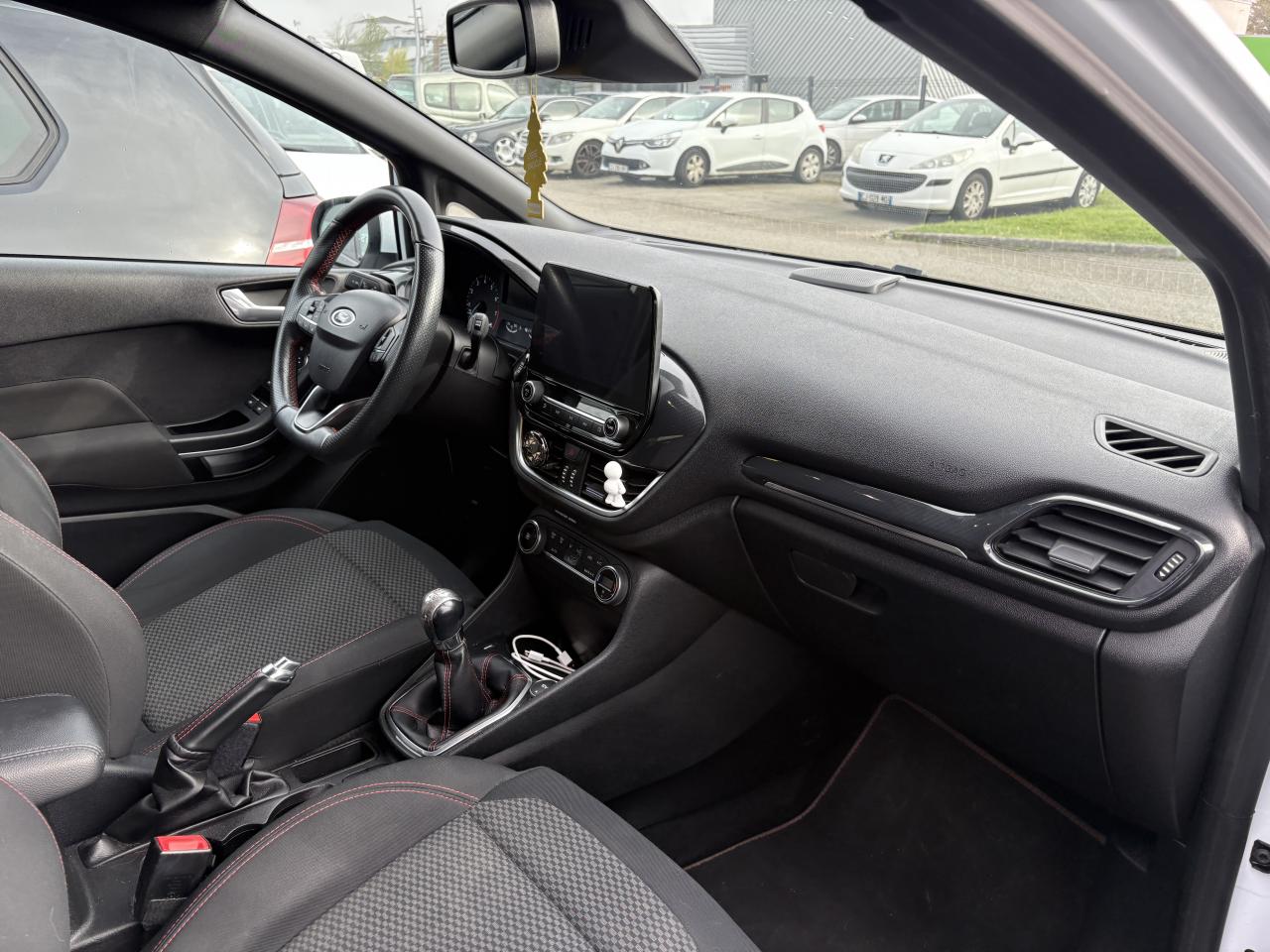 2 Fixations Isofix à l'arrière3 appuie-tête arrière5 ceintures de sécurité 3 pointsAide au démarrage en côteAide au maintien dans la file (LKA)Airbags frontaux, latéraux (thorax) et rideauxAlerte de franchissement de ligneAlerte de non-bouclage de la ceinture de sécurité à toutes les placesAllumage automatique des essuie-glacesAllumage automatique des projecteursBadge ST-Line sur les ailes avantBanquette arrière rabattable 40/60Becquet arrière couleur carrosserieBouton de démarrage Ford Power - démarrage du moteur sans cléCeintures de sécurité avant réglables en hauteurCiel de toit noirClimatisation automatiqueConsole centrale avec accoudoir et rangement intégréContrôle dynamique de la trajectoire (ESP)Désactivation de l'airbag du passager avantDirection assistée électriqueDisques de frein arrièreEclairage d'ambiance intérieurFeux de jour et feux arrière à LEDFord SYNC avec écran tactile 8", 2 ports USB, compatible AppLink, Apple CarPlay et Android autoGrille de calandre ST-LineIndicateur de changement de vitessesJantes alliage 17" 5 branches Y ST-Line et pneus 205/45R17Kit carrosserie ST-LineKit de réparation pneumatiqueLève-vitres arrière électriquesLevier de frein à main en cuirLevier de vitesse spécifique ST-LineOrdinateur de bord et EcoModePédalier sport en aluminiumPack ParkingPare-chocs avant et arrière spécifiques ST-LinePoignées de portes couleur carrosserieRéglage en hauteur et lombaire des sièges avantRégulateur et limiteur de vitesseRétroviseur intérieur électrochromeRétroviseurs extérieurs électriques couleur carrosserie dégivrantSeuil de porte ST-LineSièges avant sportSortie d'échappement chroméeSuspension sportSystème de surveillance de pression des pneusSystème Keyfree (ouverture et démarrage mains libres)Système MyKeyTapis de sol avant et arrière ST-LineTrappe à carburant Ford EasyFuelVerrouillage centralisé à distanceVitres arrières surteintéesVitres AV électriques à impulsion haut/basVolant gainé de cuir à méplat 3 branches ST-Line