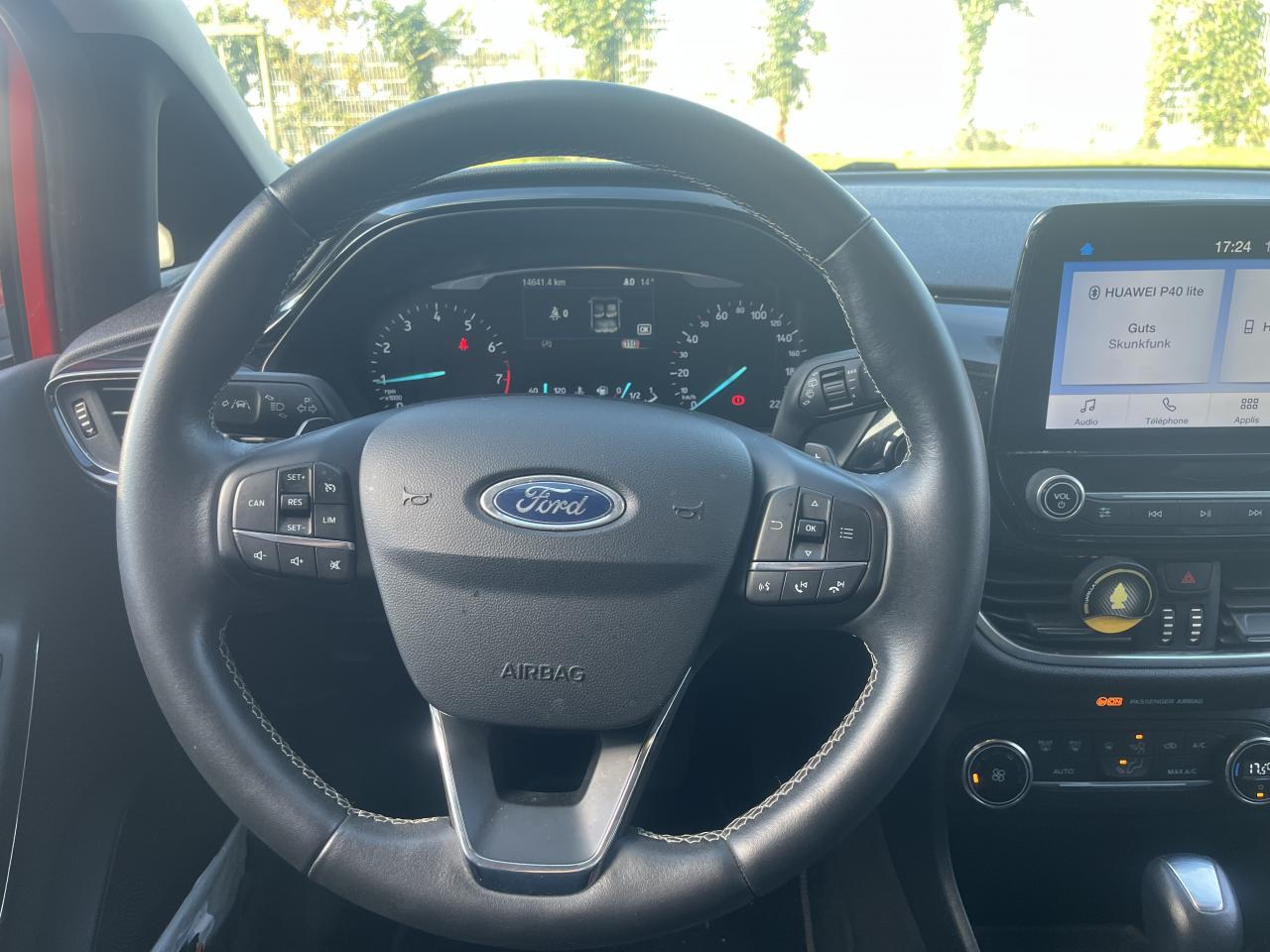 2 Fixations Isofix à l'arrière3 appuie-tête arrière5 ceintures de sécurité 3 pointsAide au démarrage en côteAide au maintien dans la file (LKA)Airbags frontaux, latéraux (thorax) et rideauxAlerte de franchissement de ligneAlerte de non-bouclage de la ceinture de sécurité à toutes les placesAllumage automatique des essuie-glacesAllumage automatique des projecteursBanquette arrière rabattable 40/60Becquet arrière couleur carrosserieBouton de démarrage Ford Power - démarrage du moteur sans cléCadre et barrettes horizontales de calandre chromésClimatisation automatiqueConsole centrale avec accoudoir et rangement intégréContrôle dynamique de la trajectoire (ESP)Désactivation de l'airbag du passager avantDirection assistée électriqueEclairage d'ambiance intérieurFeux de jour et feux arrière à LEDFord SYNC avec écran tactile 8", 2 ports USB, compatible AppLink, Apple CarPlay et Android autoIndicateur de changement de vitessesJantes alliage 16" 10 branches avec pneus 195/55 R16Kit de réparation pneumatiqueLèche-vitres chromésLève-vitres arrière électriquesLevier de frein à main en cuirOrdinateur de bordPack ParkingPare-brise acoustiquePare-chocs couleur carrosseriePoignées de portes couleur carrosseriePommeau de levier de vitesses en cuirRéglage en hauteur et lombaire des sièges avantRégulateur et limiteur de vitesseRétroviseur intérieur électrochromeRétroviseurs extérieurs électriques couleur carrosserie dégivrantSystème de surveillance de pression des pneusSystème Keyfree (ouverture et démarrage mains libres)Système MyKeySystème Stop&Start (arrêt/redémarrage auto du moteur)Tapis de sol avant et arrièreTrappe à carburant Ford EasyFuelVerrouillage centralisé à distanceVitres arrières surteintéesVitres AV électriques à impulsion haut/basVolant gainé cuir 3 branches