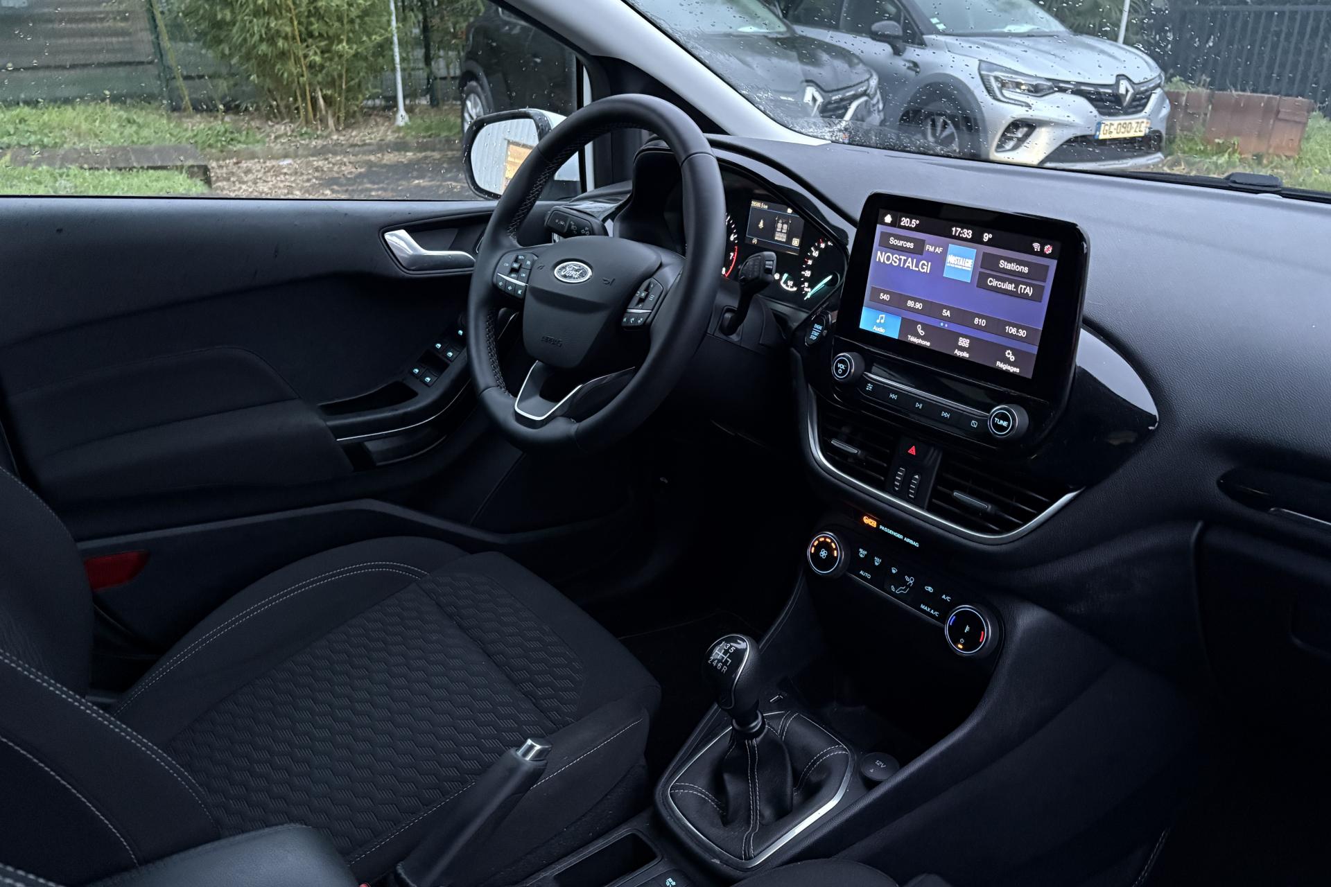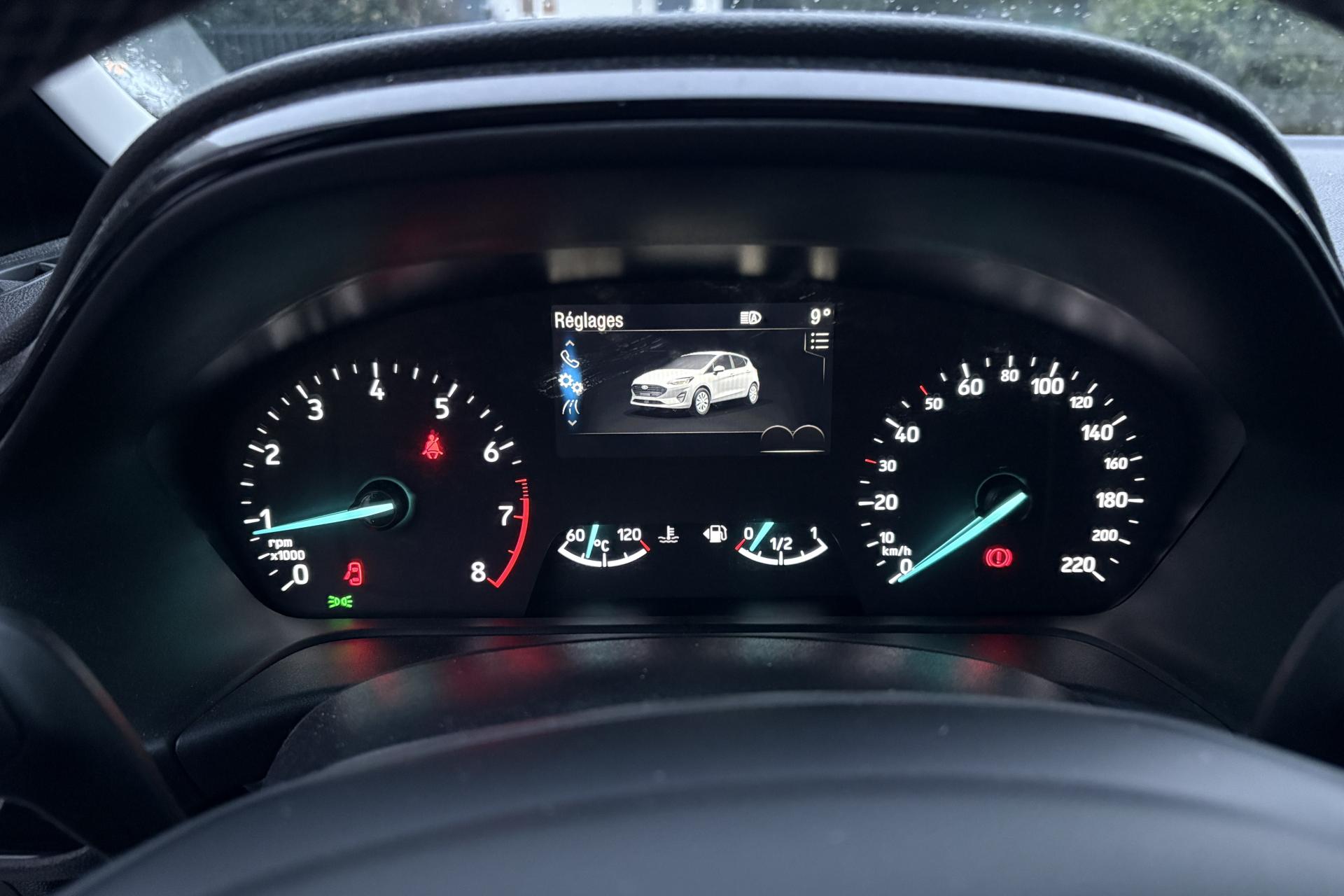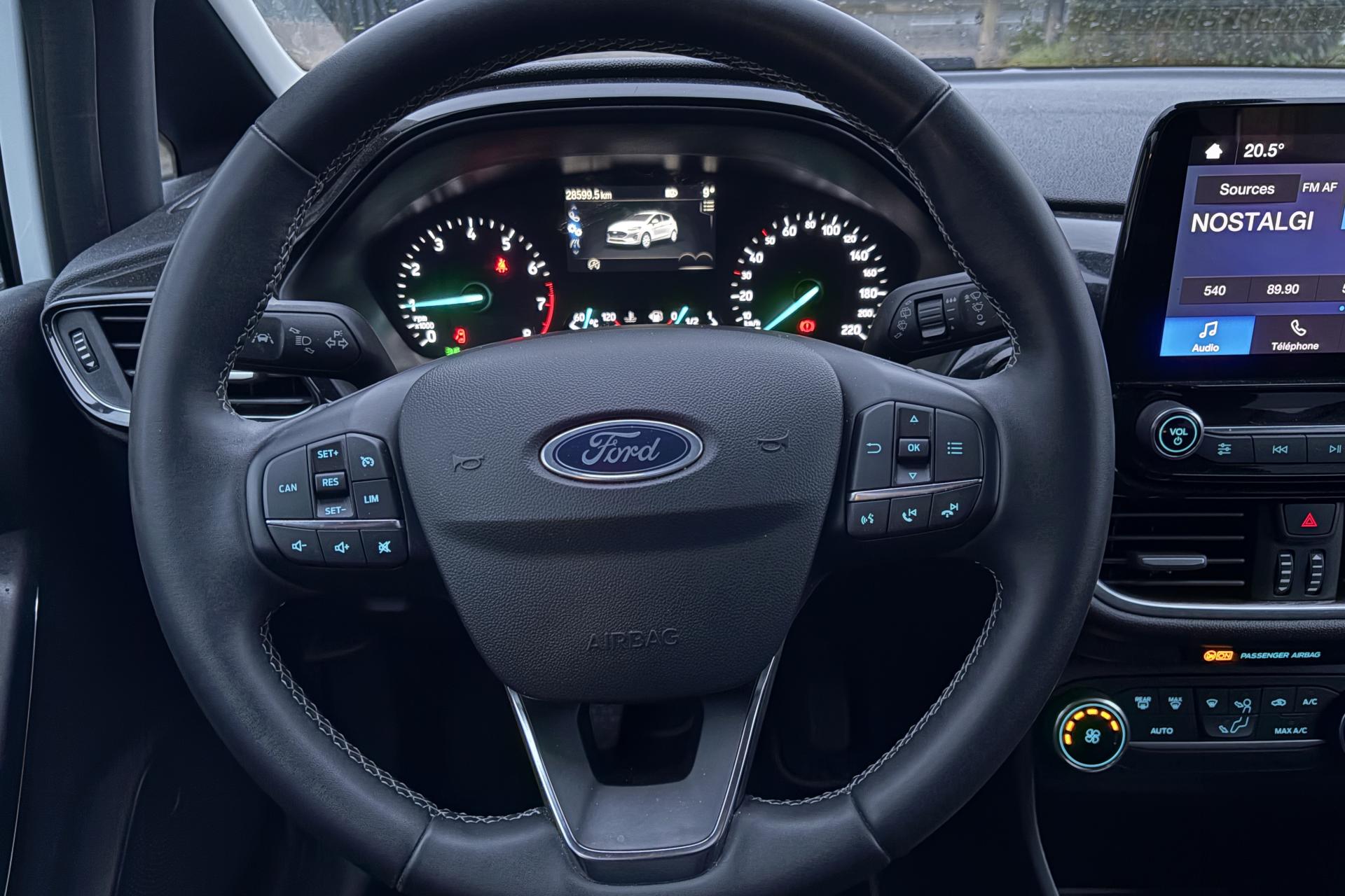 2 Fixations Isofix à l'arrière3 appuie-tête arrière5 ceintures de sécurité 3 pointsAide au démarrage en côteAide au maintien dans la file (LKA)Aide au stationnement arrièreAirbags frontaux, latéraux (thorax) et rideauxAlerte de franchissement de ligneAlerte de non-bouclage de la ceinture de sécurité à toutes les placesAllumage automatique des feux de route (AHB)Allumage automatique des projecteursBanquette arrière rabattable 40/60Climatisation automatiqueConsole centrale avec accoudoirContrôle dynamique de la trajectoire (ESP)Désactivation de l'airbag du passager avantDirection assistée électriqueFeux de route à LEDGrille de calandre avec barres horizontales et contour façon chromeJantes en acier structuré 15" avec pneus 195/60 R15Kit de réparation pneumatiqueLèche-vitres chromésOrdinateur de bord 4,2" couleurPare-chocs couleur carrosseriePeinture non métallisée Rouge RacingPoignées de portes couleur carrosserieProjecteurs avant LEDReconnaissance des panneaux de signalisationRégulateur et limiteur de vitesseRétroviseurs extérieurs à réglage électrique,rabattables manuellementRétroviseurs extérieurs couleur carrosserieSellerie tissu noir Kasbah avec renforts latéraux EtonSiège conducteur à 4 réglage manuelsSystème audio Ford SYNC avec écran tactile 8", 2 ports USB, DAB, compatible AppLink, Apple CarPlay et Android AutoSystème de surveillance de la vigilance du conducteurSystème de surveillance de pression des pneusSystème MyKey (seconde clé programmable)Trappe à carburant Ford EasyFuelVitres avant et arrière électriquesVolant en cuir 3 branches