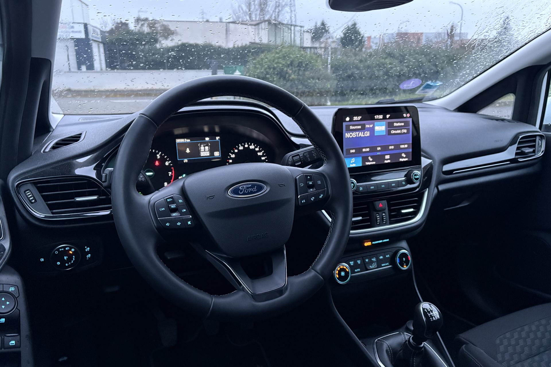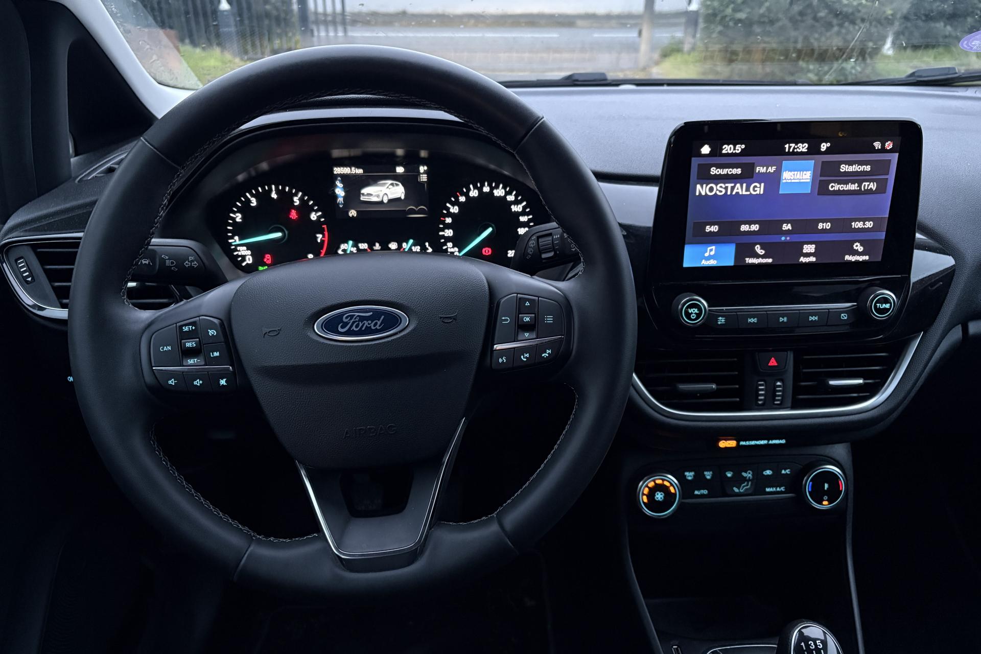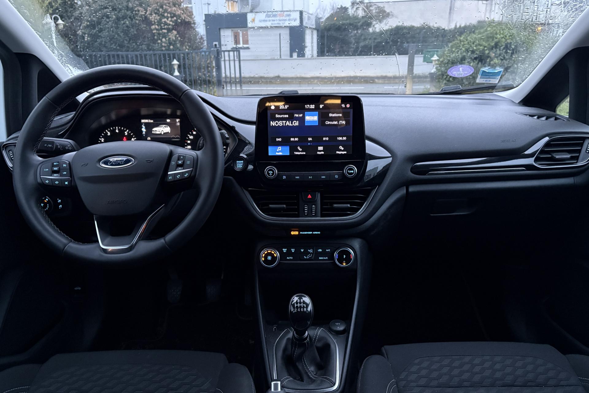 2 Fixations Isofix à l'arrière3 appuie-tête arrière5 ceintures de sécurité 3 pointsAide au démarrage en côteAide au maintien dans la file (LKA)Aide au stationnement arrièreAirbags frontaux, latéraux (thorax) et rideauxAlerte de franchissement de ligneAlerte de non-bouclage de la ceinture de sécurité à toutes les placesAllumage automatique des feux de route (AHB)Allumage automatique des projecteursBanquette arrière rabattable 40/60Climatisation automatiqueConsole centrale avec accoudoirContrôle dynamique de la trajectoire (ESP)Désactivation de l'airbag du passager avantDirection assistée électriqueFeux de route à LEDGrille de calandre avec barres horizontales et contour façon chromeJantes en acier structuré 15" avec pneus 195/60 R15Kit de réparation pneumatiqueLèche-vitres chromésOrdinateur de bord 4,2" couleurPare-chocs couleur carrosseriePeinture non métallisée Rouge RacingPoignées de portes couleur carrosserieProjecteurs avant LEDReconnaissance des panneaux de signalisationRégulateur et limiteur de vitesseRétroviseurs extérieurs à réglage électrique,rabattables manuellementRétroviseurs extérieurs couleur carrosserieSellerie tissu noir Kasbah avec renforts latéraux EtonSiège conducteur à 4 réglage manuelsSystème audio Ford SYNC avec écran tactile 8", 2 ports USB, DAB, compatible AppLink, Apple CarPlay et Android AutoSystème de surveillance de la vigilance du conducteurSystème de surveillance de pression des pneusSystème MyKey (seconde clé programmable)Trappe à carburant Ford EasyFuelVitres avant et arrière électriquesVolant en cuir 3 branches