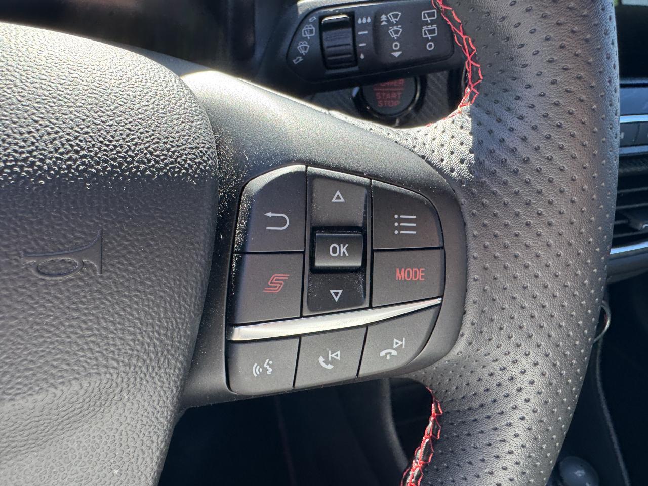 2 Fixations Isofix à l'arrière3 appuie-tête arrière3 modes de conduite disponibles5 ceintures de sécurité 3 pointsAide au démarrage en côteAide au maintien dans la file (LKA)Aide au stationnement arrièreAirbags frontaux, latéraux (thorax) et rideauxAlerte de franchissement de ligneAlerte de non-bouclage de la ceinture de sécurité à toutes les placesAllumage automatique des feux de route sans éblouissementAllumage automatique des projecteursBadge STBanquette arrière rabattable 40/60Becquet arrière STCaméra de reculCiel de toit noirClimatisation automatiqueCombiné d'instrumentation numériqueConsole centrale avec accoudoirContrôle dynamique de la trajectoire (ESP)Désactivation de l'airbag du passager avantDirection assistée électriqueDouble sortie d'échappement chroméeEclairage d'ambiance intérieurEssuie-glace à déclenchement automatiqueEtriers de freins rougesFeux arrière à LEDFordPass Connect Modem embarqué - Abonnement gratuit pendant 10 ansFreins à disques avant et arrièreGrille de calandre spécifique STJantes alliage 18" avec pneus 205/40 R18Kit de réparation pneumatiquePédalier sport en aluminiumPlaques de seuil de porte avant STPoignées de portes couleur carrosseriePommeau de levier de vitesse spécifique STProjecteurs antibrouillard intégrés dans feux principauxProjecteurs Matrix LEDReconnaissance des panneaux de signalisationRégulateur et limiteur de vitesseRétroviseur intérieur électrochromeRétroviseurs extérieurs à réglage électrique,rabattables manuellementRétroviseurs extérieurs couleur carrosserieSellerie Sensico noir Twin Track NeoSuede avec renforts latéraux SensicoSiège conducteur à 6 réglages manuels avec réglages du soutien lombaire (4 directions)Siège passager réglable en hauteur (6 directions)Sièges sport Ford Performance avec surpiqûres rougesSuspensions renforcéesSystème audio Ford SYNC avec Navigation, écran tactile 8", 2 ports USB, DAB, 6 haut-parleurs compatible AppLink, Apple, CarPlay et Android AutoSystème d'alerte à la conduite à contresensSystème de surveillance de la vigilance du conducteurSystème de surveillance de pression des pneusSystème Keyfree (ouverture et démarrage mains libres)Système MyKey (seconde clé programmable)Tapis de sol avant et arrière spécifiques ST avec surpiqûres rougesTrappe à carburant Ford EasyFuelVerrouillage centralisé à distanceVitres arrières surteintéesVitres avant et arrière électriquesVolant avec méplat et surpiqures rouges