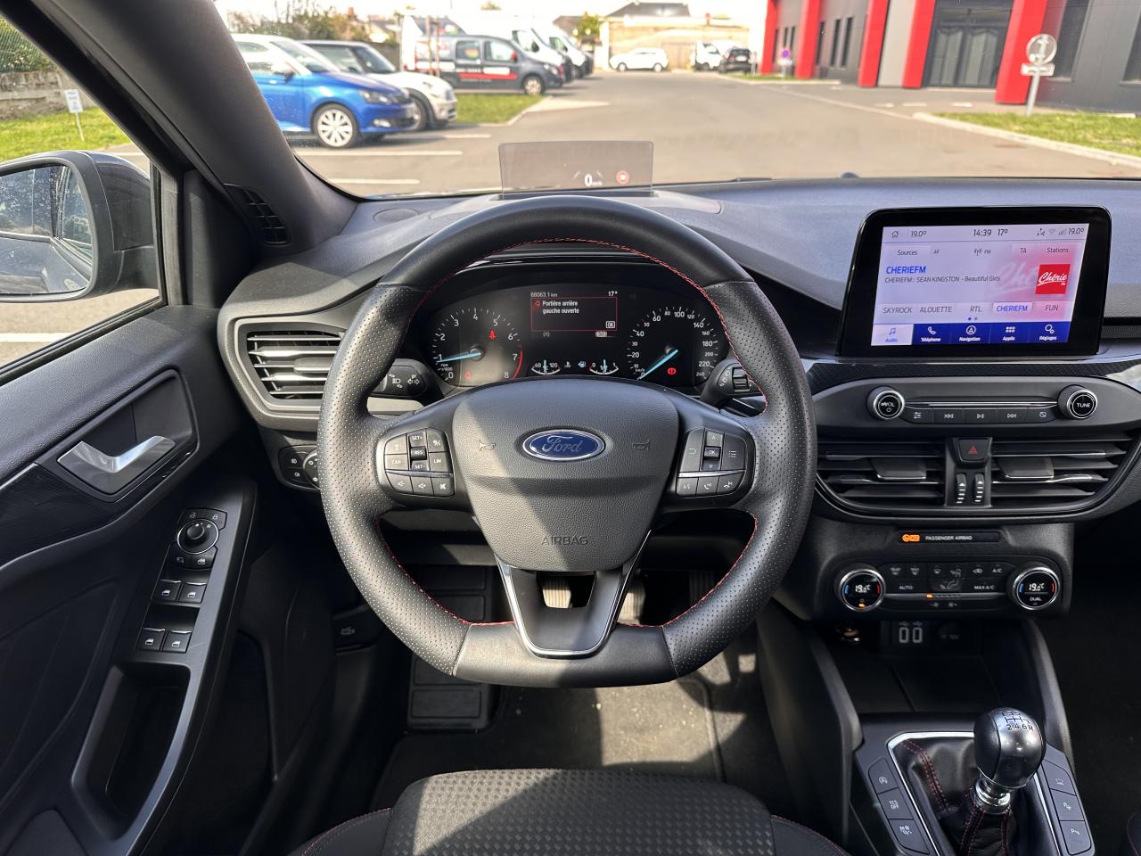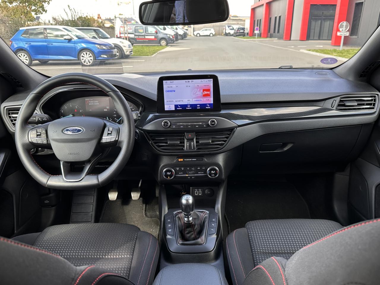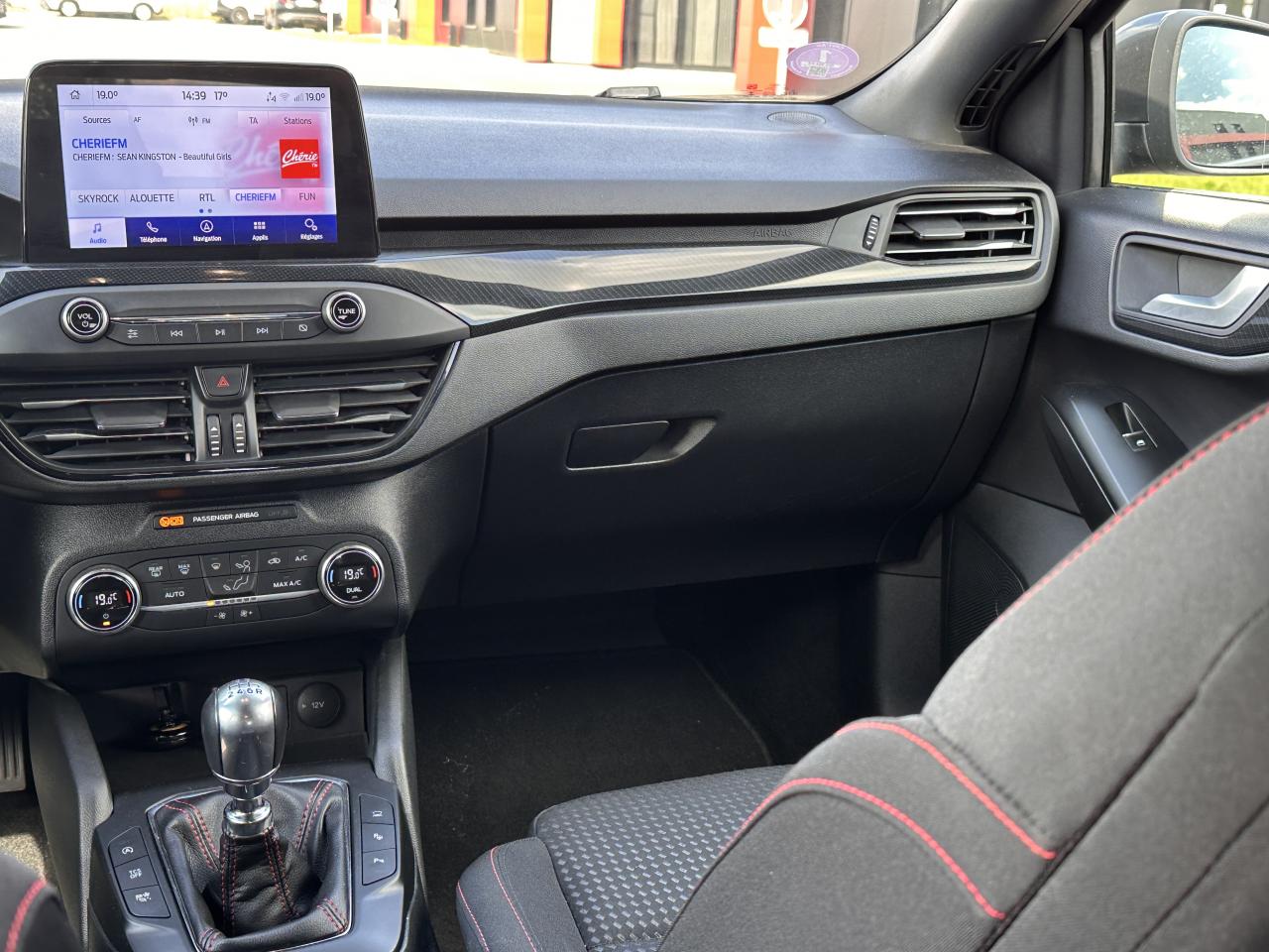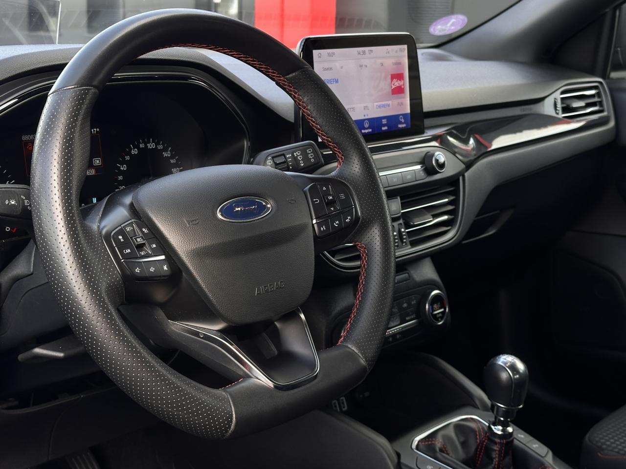 3 appuie-tête arrièreAccoudoir central arrière avec rangementAide au démarrage en côteAide au maintien dans la file (LKA)Aide au stationnement avant/arrièreAirbags latéraux et rideauxBadges latéraux ST-LineBanquette arrière rabattable 40/60Caméra de reculChargeur à inductionCiel de toit grisCombiné d'instrumentation numérique 12,3"Contrôle de la température entièrement automatique A/CContrôle de pression des pneus ( TPMS )Contrôle dynamique de stabilité (ESP)Double sortie d'échappement sportEssuie-glace à déclenchement automatiqueFeux arrière à LEDFordPass Connect Modem embarqué - Abonnement gratuit pendant 10 ansFrein de parking électriqueFreinage automatique post-collisionGrille de calandre noire ST-LineJantes alliage 17'' à 5 branchesJoncs de vitres latérales noirsKeyfree system - système d'entrée et de démarrage sans cléKit carrosserie ST-LineKit de réparationLimiteur de vitesse intelligentLumière d'ambiance à LEDNavigation Connectée (1 an d'essai)Pack StylePare-soleil conducteur et passager avec miroirs éclairésPeinture non métallisée Rouge RacingPhares à LEDPommeau de levier de vitesses chromé et cuirRégulateur de vitesseRétroviseur intérieur électrochromeRétroviseurs extérieurs électriques et chauffants couleur carrosserieRétroviseurs rabattables électriquement avec éclairage d'approcheSélecteur de mode de conduite (ECO / NORMAL / SPORT)Sellerie tissu spécifique ST-Line avec surpiqûre rougeSiège conducteur réglable en hauteur avec réglage lombaireSystème de prévention de collisions avec détection des piétons et cyclistesSystème Multimédia Ford SYNC 4 avec navigation, commande vocale, DAB et écran tactile 13"Système MyKey Génération 2Vitres arrière surteintéesVitres avant et arrière électriquesVolant ST 3 branches en Sensico base plate avec surpiqûres rouges
