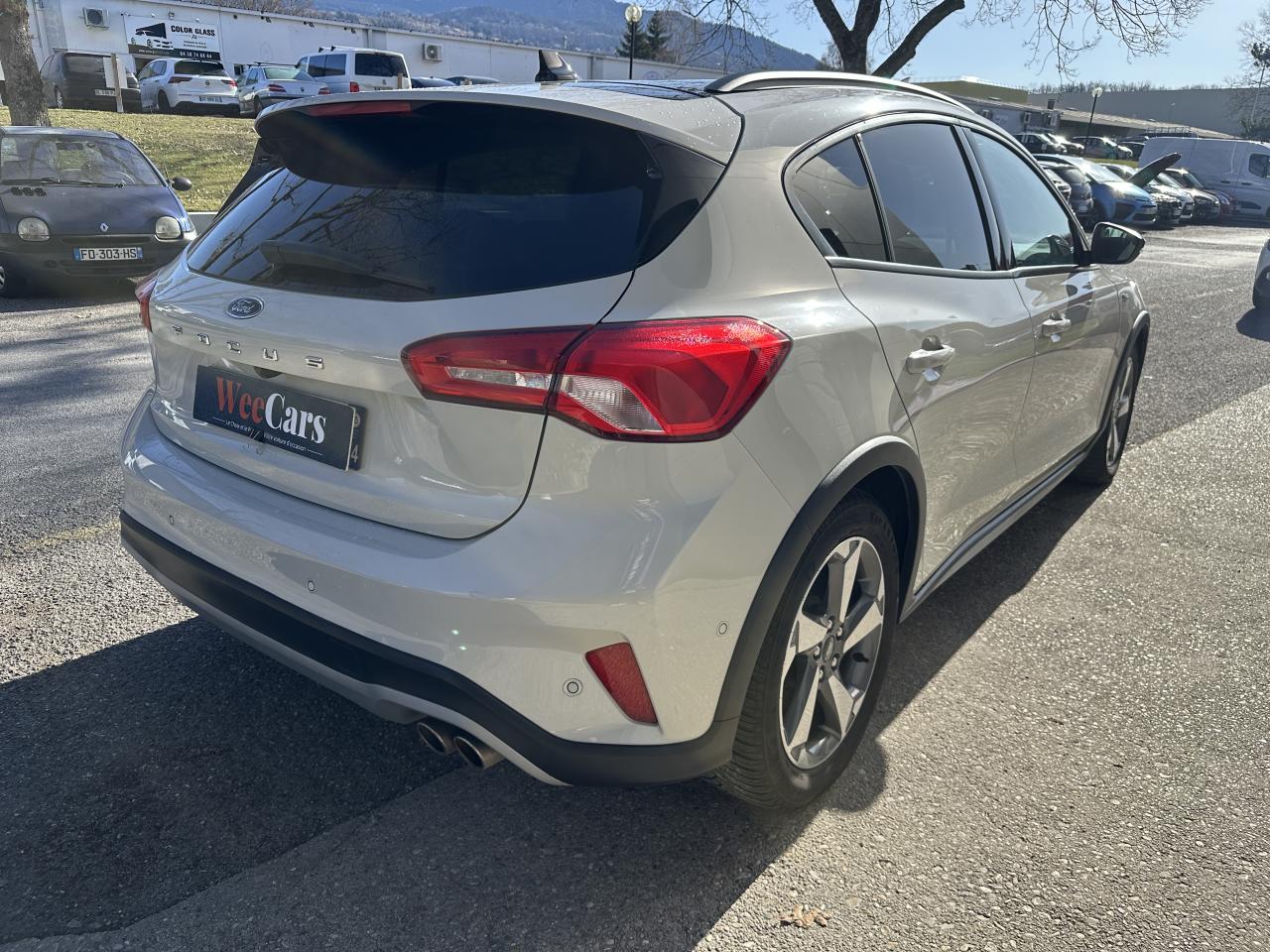 2 Modes de conduite sélectionnables supplémentaires : Trail et Terrain glissant, Aide au démarrage en côte, Aide au maintien dans la file (LKA), Aide au stationnement avant/arrière, Allumage automatique des projecteurs, Contrôle dynamique de stabilité (ESP), Double sortie d'échappement, Feux antibrouillard à LED avec éclairage d'angle, FordPass Connect : Modem embarqué, avec possibilité de Hotspot Wi-Fi (3 mois / 3 Go inclus), Frein de parking électrique, Jantes alliage 17" Active - 5 branches avec pneus spécifiques adaptés à une conduite tous chemins, Limiteur de vitesse intelligent, Pack Confort, Plaques de seuils de portes avec logo Active, Régulateur de vitesse, Rétroviseurs rabattables électriquement, Sélecteur de mode de conduite (ECO / NORMAL / SPORT), Sellerie tissu spécifique Active avec surpiqures bleues, Siège conducteur réglable en hauteur avec réglage lombaire, Suspension standard, Système de prévention de collisions, Système Multimédia Ford SYNC 3 avec navigation, commande vocale et écran tactile 8", Système MyKey Génération 2, Vitres avant et arrière électriques, Volant et pommeau de levier de vitesse gainés de cuir