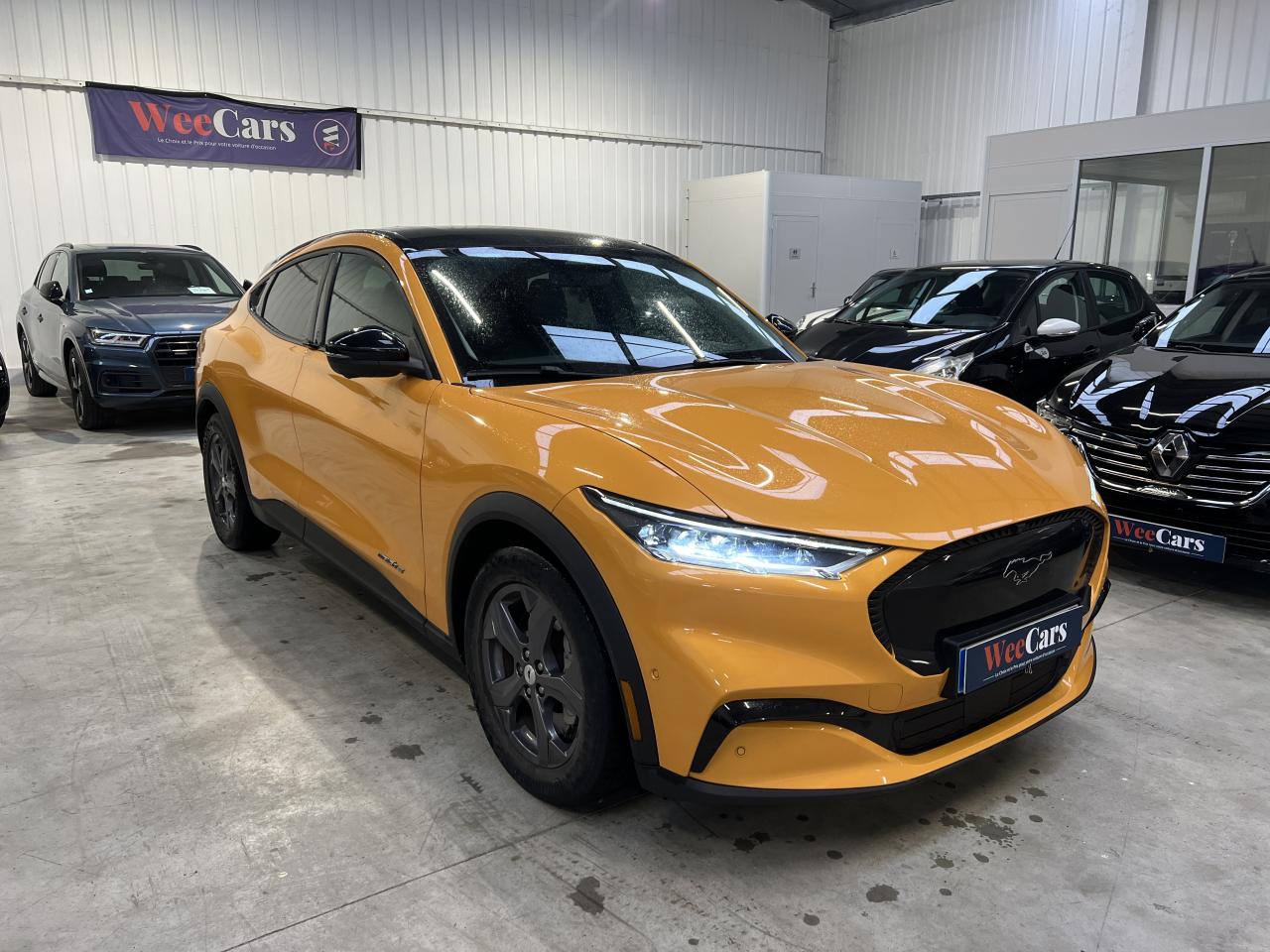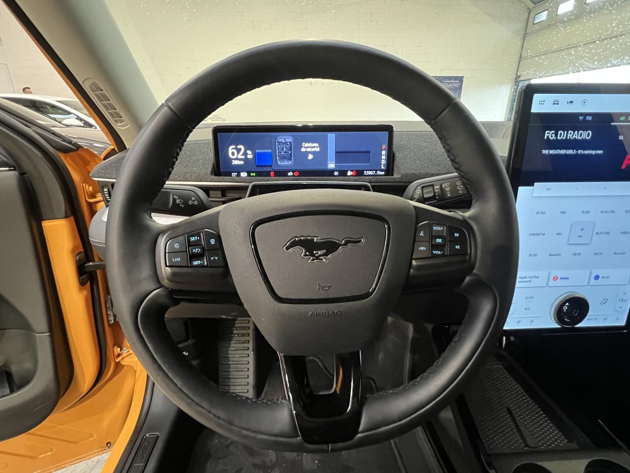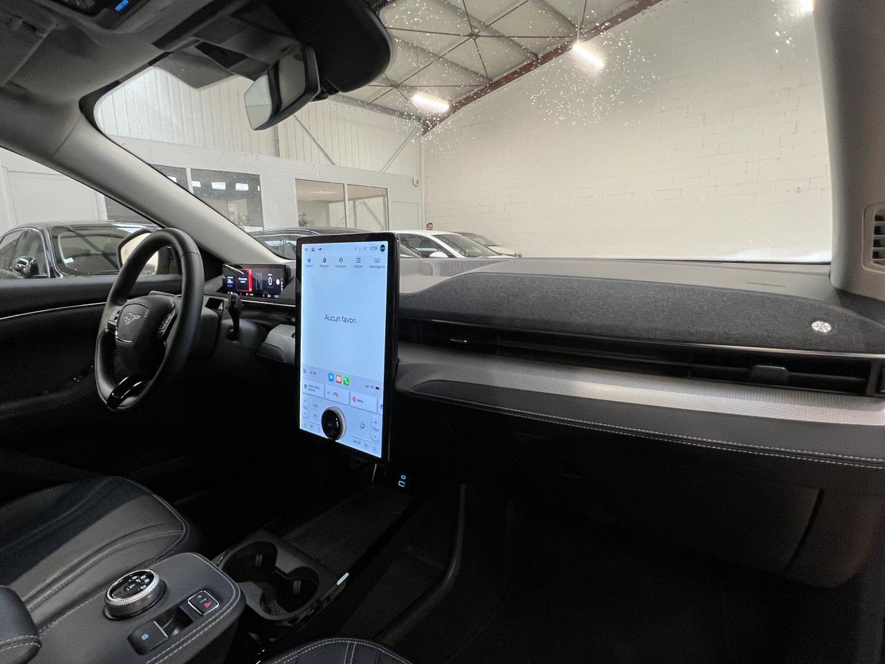 2 câbles de recharge pour une utilisation domestique et publique3 appuie-tête arrière3 modes de conduite sélectionnables : Active, Whisper et UntamedAccoudoir central arrièreActive Park Assist (système d'aide au stationnement avancé) avec caméra 360°Aide au maintien dans la voieAirbag genoux conducteurAirbags latéraux et rideauxAllumage automatique des projecteursBanquette arrière rabattable 40/60Chargeur de smartphone par inductionCiel de toit clairClimatisation automatique bi-zoneConsole centrale avec accoudoir fixe comprenant des rangementsContrôle de pression des pneus ( TPMS )E-Shifter - Sélecteur de vitesse rotatifEcran central tactile de 15,5"Entourage de calandre grisEssuie-glace à déclenchement automatiqueFeux arrière avec signature lumineuse distinctiveFixations IsofixFonction éclairage intelligent (commutation automatique entre feux de route et feux de croisement)FordPass Connect Modem embarqué - Abonnement gratuit pendant 10 ansFrein à main automatique avec fonction Auto HoldFreinage automatique post-collisionFrunk - Coffre avant avec protection imperméable et bouchon de vidangeJantes alliage 18" 5 branchesKeypad - Code de secours pour le démarrage ou l'ouvertureKit de réparation pneumatiqueLève vitres électriques avant et arrière impulsionnelsOne pedal drive - Accélération et décélération gérées grâce à une pédale uniqueOuverture/Fermeture électrique des portes grâce à un bouton - E-LatchPare-brise chauffantPeinture Mica Noir ShadowPhares avant avec réflecteurs LEDReconnaissance des panneaux de signalisationRégulateur de vitesse adaptatif intelligent avec fonction Stop & GoRétroviseur intérieur électrochromeRétroviseurs extérieurs chauffants avec éclairage d'approche "Signature Mustang"Rétroviseurs extérieurs couleur carrosserieSellerie SensicoSièges avant avec réglage manuelSièges avant chauffantsSYNC 4A avec navigation gérant les points de recharge connectée, mises à jour à distance "Over-The-Air" (OTA) et commandes vocalesSystème d'aide au stationnement avant et arrièreSystème de contrôle des angles morts avec détection des véhicules en approcheSystème de sécurité précollision avec détection des piétons et des cyclistesSystème de surveillance de la vigilance du conducteurTableau de bord 100% numérique 10,2"Tapis de sol avant et arrièreVolant chauffantVolant gainé de Sensico