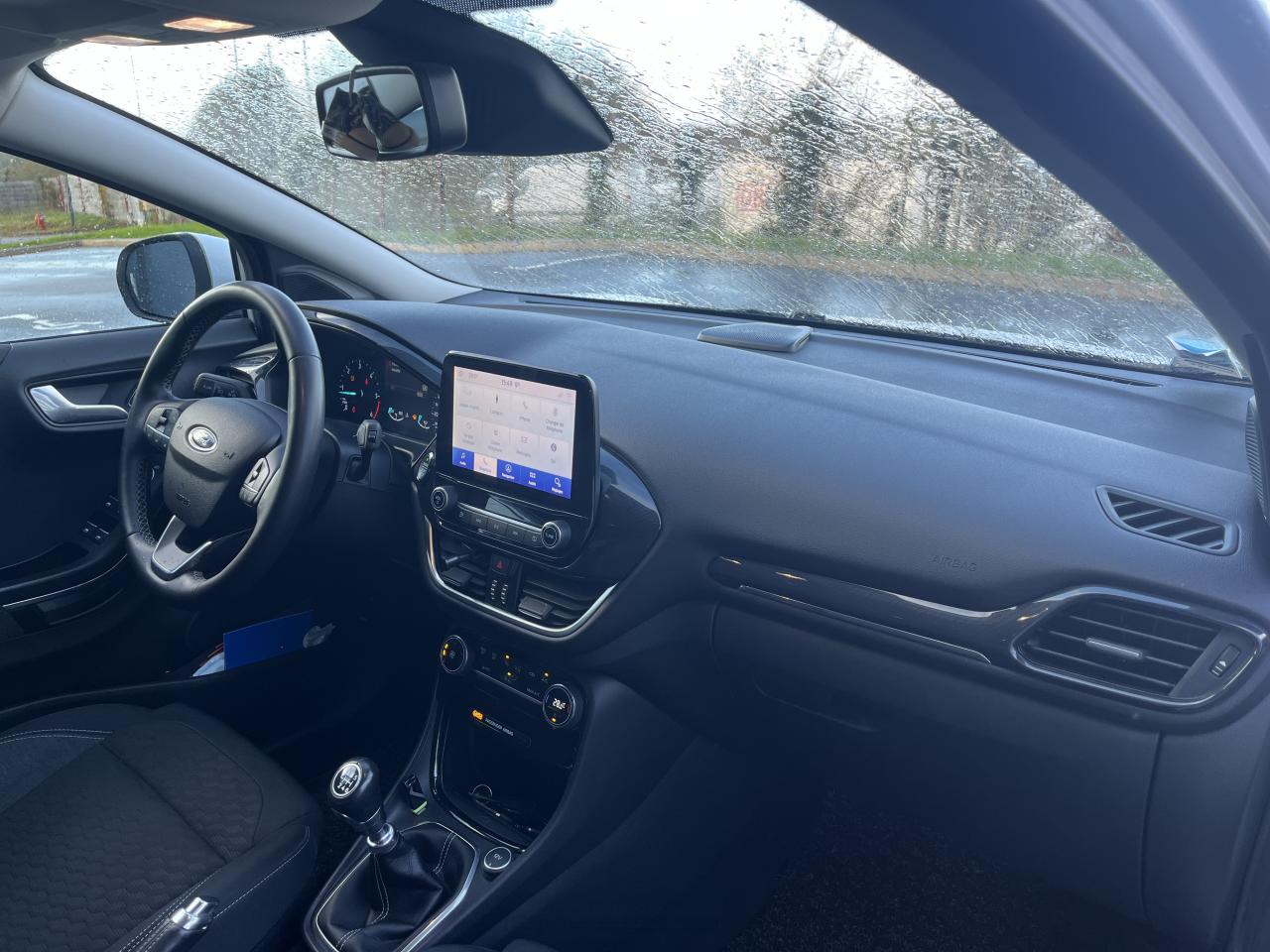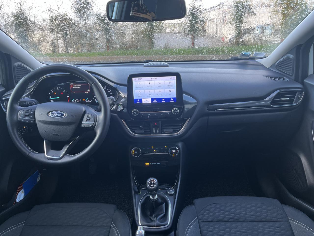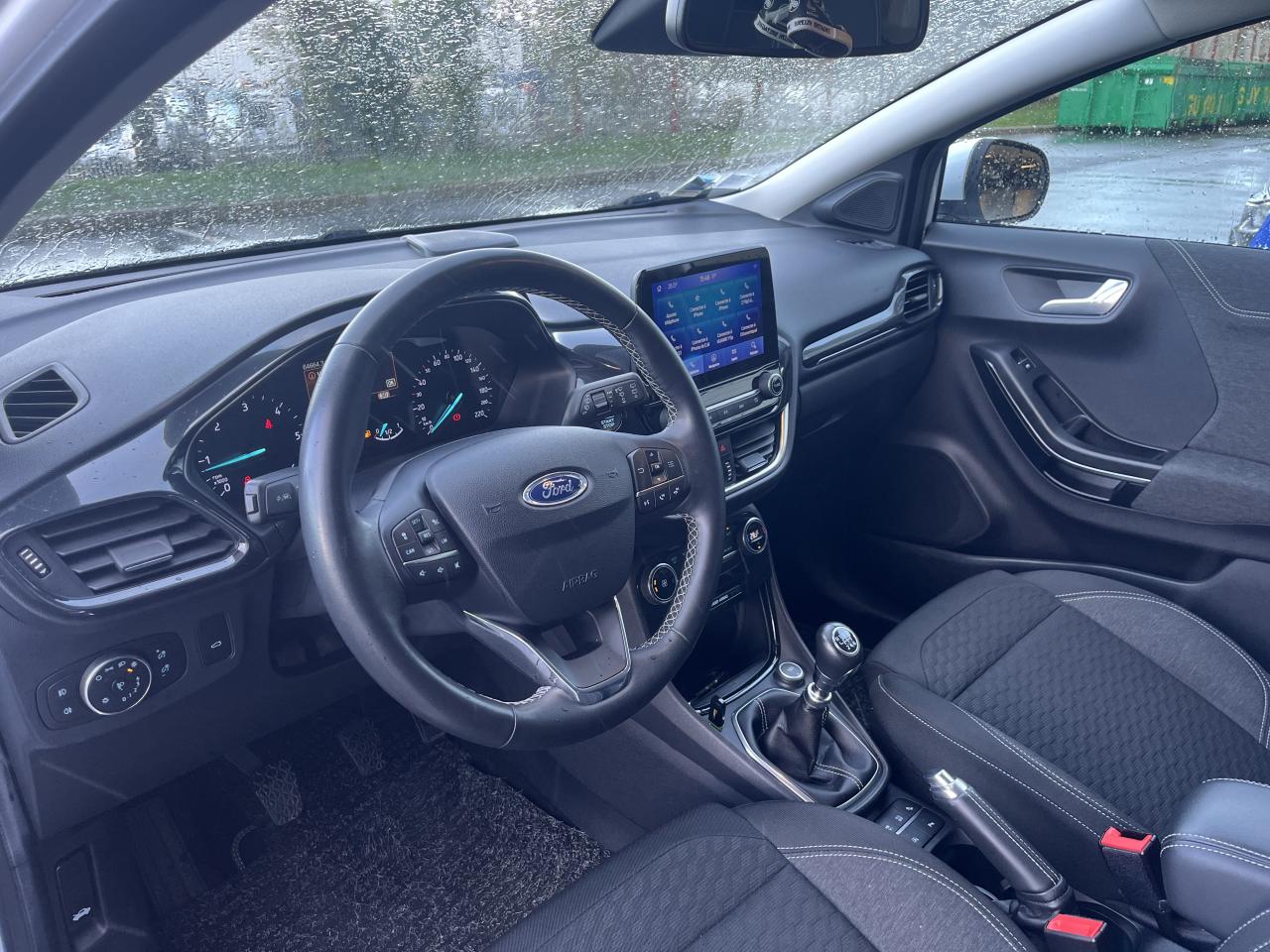 2 Fixations Isofix à l'arrière3 appuie-tête arrière5 ceintures de sécurité 3 points5 Modes de conduite sélectionnables (normal, eco, sport, faible adhérence, trail)Aide au démarrage en côteAide au maintien dans la voie avec détection des bas-côtésAide au stationnement arrièreAirbags frontaux, latéraux (thorax) et rideauxAlerte d'oubli de ceintures avant/arrièreAlerte de franchissement Involontaire de ligneAllumage automatique des projecteursAntipatinageAssistance au freinage d'urgenceBanquette arrière rabattable 40/60Bas de caisse avec finitions chroméesBecquet arrière couleur carrosserieClimatisation manuelleCombiné d'instrumentation TFT couleur 4,2" avec EcomodeConsole centrale avant avec deux porte-gobelets rétroéclairésConsole centrale avec accoudoir et rangementsContour des vitres latérales en noir finition brillanteCorrecteur électronique de trajectoire ESPDésactivation de l'airbag du passager avantDirection assistée électriqueEclairage d'ambiance intérieurFeux arrière à LEDFeux de jour à LEDFeux de route intelligents (passage feux de croisement/route automatique)FordPass Connect avec modem embarqué et fonction eCallFrein à disques à l'avantGrille de calandre avec barres horizontales et contour façon chromeJantes alliage 17" 10 branches finition Absolute BlackKit de réparation pneumatiqueLevier de frein à main gainé de SensicoLevier de vitesses gainé de SensicoLimiteur de vitesse intelligentLogo MHEV sur HayonPare-chocs couleur carrosseriePartie inférieure du pare-chocs avant noirPédalier designPeinture non-métallisée Bleu AbyssePhares avant antibrouillard avec fonction d'éclairage d'anglePlancher de coffre ajustablePlaques de seuil de porte avant TitaniumPrise 12 V sur console centrale avantRégulateur de vitesseRétroviseurs extérieurs électriques couleur carrosserie, dégivrant et rabattables avec rappels de clignotantsSellerie tissu noir AlhambraSièges avant réglables en hauteur avec soutien lombaireSuspension standardSystème audio Ford SYNC 3 avec écran tactile 8", commandes vocales, 2 ports USB, alerte contresens, compatible AppLink, Apple CarPlay et Android auto, 7 hauts-parleursSystème de freinage antiblocage (ABS)Système de Navigation Europe et points d'intérêt MichelinSystème de prévention de collision avec freinage post-collision et détection piétonsSystème de surveillance de pression des pneusSystème MyKey (seconde clé programmable)Système Stop & StartTapis de sol avant avec surpiquresTrappe à carburant Ford EasyFuelVitres électriques avant et arrière avec descente et remontée à impulsionVolant 3 branches Sensico