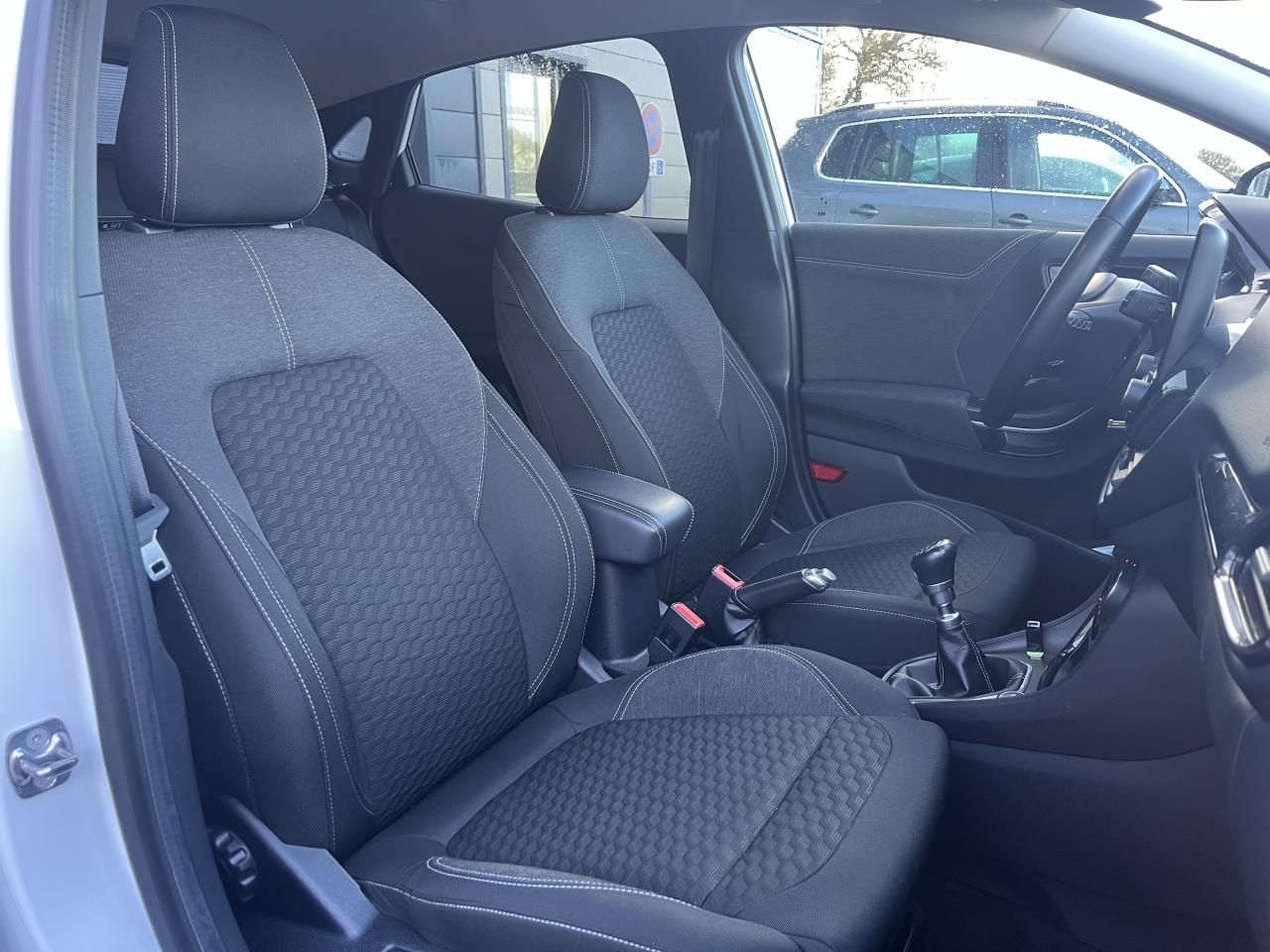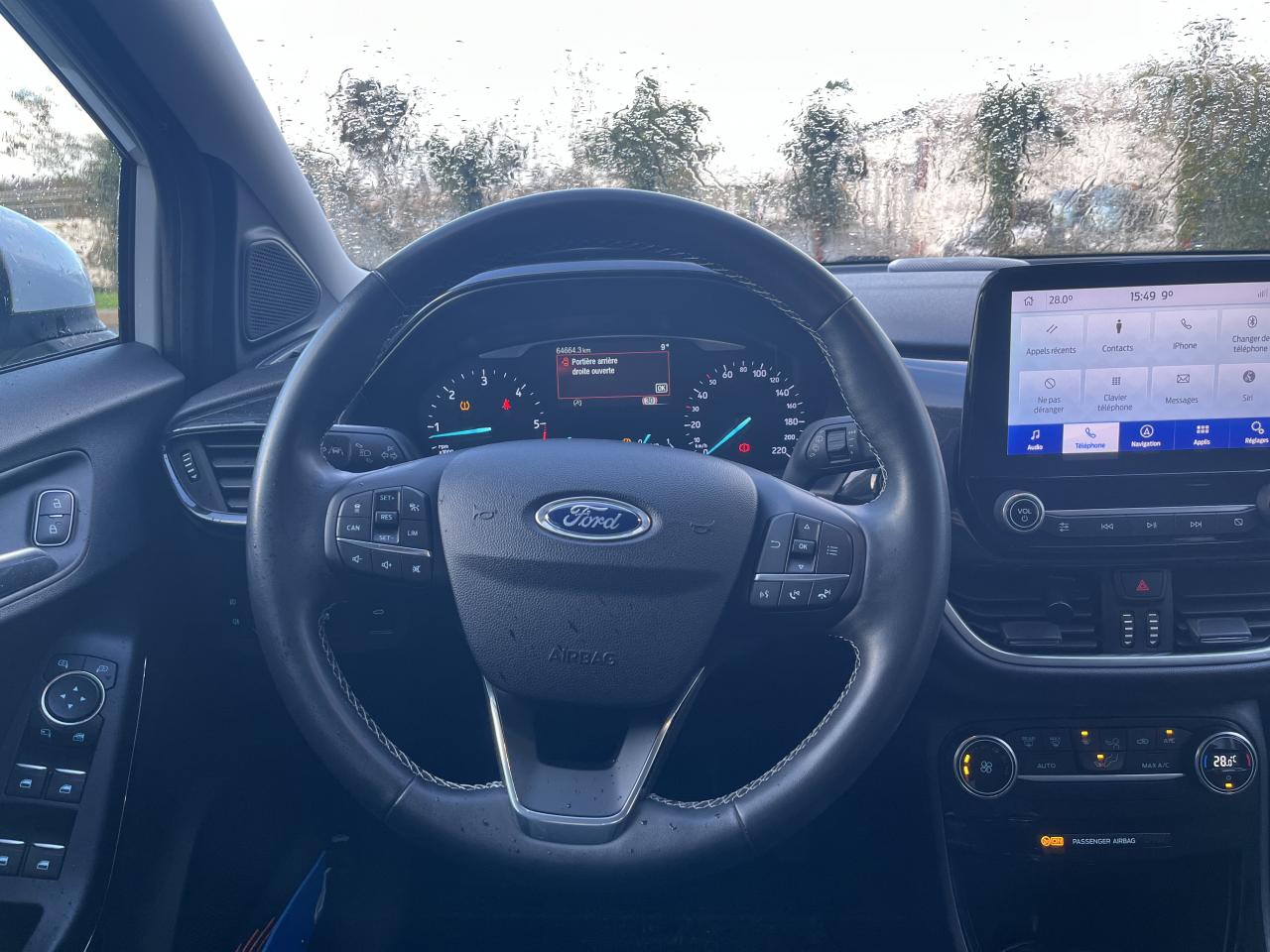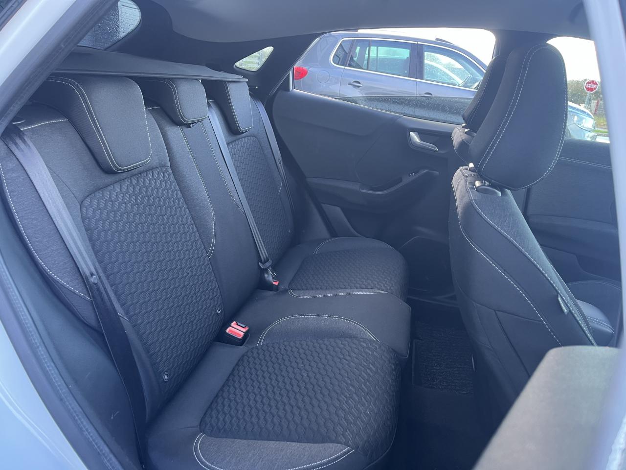 2 Fixations Isofix à l'arrière3 appuie-tête arrière5 ceintures de sécurité 3 points5 Modes de conduite sélectionnables (normal, eco, sport, faible adhérence, trail)Aide au démarrage en côteAide au maintien dans la voie avec détection des bas-côtésAide au stationnement arrièreAirbags frontaux, latéraux (thorax) et rideauxAlerte d'oubli de ceintures avant/arrièreAlerte de franchissement Involontaire de ligneAllumage automatique des projecteursAntipatinageAssistance au freinage d'urgenceBanquette arrière rabattable 40/60Bas de caisse avec finitions chroméesBecquet arrière couleur carrosserieClimatisation manuelleCombiné d'instrumentation TFT couleur 4,2" avec EcomodeConsole centrale avant avec deux porte-gobelets rétroéclairésConsole centrale avec accoudoir et rangementsContour des vitres latérales en noir finition brillanteCorrecteur électronique de trajectoire ESPDésactivation de l'airbag du passager avantDirection assistée électriqueEclairage d'ambiance intérieurFeux arrière à LEDFeux de jour à LEDFeux de route intelligents (passage feux de croisement/route automatique)FordPass Connect avec modem embarqué et fonction eCallFrein à disques à l'avantGrille de calandre avec barres horizontales et contour façon chromeJantes alliage 17" 10 branches finition Absolute BlackKit de réparation pneumatiqueLevier de frein à main gainé de SensicoLevier de vitesses gainé de SensicoLimiteur de vitesse intelligentLogo MHEV sur HayonPare-chocs couleur carrosseriePartie inférieure du pare-chocs avant noirPédalier designPeinture non-métallisée Bleu AbyssePhares avant antibrouillard avec fonction d'éclairage d'anglePlancher de coffre ajustablePlaques de seuil de porte avant TitaniumPrise 12 V sur console centrale avantRégulateur de vitesseRétroviseurs extérieurs électriques couleur carrosserie, dégivrant et rabattables avec rappels de clignotantsSellerie tissu noir AlhambraSièges avant réglables en hauteur avec soutien lombaireSuspension standardSystème audio Ford SYNC 3 avec écran tactile 8", commandes vocales, 2 ports USB, alerte contresens, compatible AppLink, Apple CarPlay et Android auto, 7 hauts-parleursSystème de freinage antiblocage (ABS)Système de Navigation Europe et points d'intérêt MichelinSystème de prévention de collision avec freinage post-collision et détection piétonsSystème de surveillance de pression des pneusSystème MyKey (seconde clé programmable)Système Stop & StartTapis de sol avant avec surpiquresTrappe à carburant Ford EasyFuelVitres électriques avant et arrière avec descente et remontée à impulsionVolant 3 branches Sensico