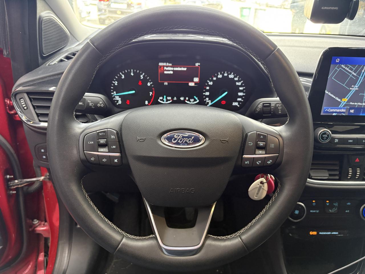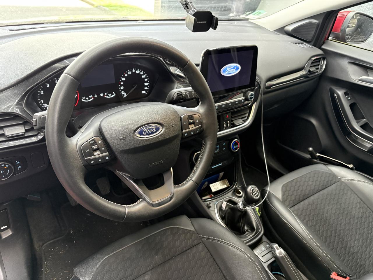 2 Fixations Isofix à l'arrière3 appuie-tête arrière5 ceintures de sécurité 3 points5 Modes de conduite sélectionnables (normal, eco, sport, faible adhérence, trail)Aide au démarrage en côteAide au maintien dans la voie avec détection des bas-côtésAide au stationnement arrièreAirbags frontaux, latéraux (thorax) et rideauxAlerte d'oubli de ceintures avant/arrièreAlerte de franchissement Involontaire de ligneAllumage automatique des projecteursAntipatinageAppuie-tête arrière réglables en hauteurAssistance au freinage d'urgenceAvertisseur de freinage d'urgenceBanquette arrière rabattable 40/60Bas de caisse avec finitions chroméesBecquet arrière couleur carrosserieClimatisation manuelleCombiné d'instrumentation TFT couleur 4,2" avec EcomodeConsole centrale avant avec deux porte-gobelets rétroéclairésConsole centrale avec accoudoir et rangementsContour des vitres latérales en noir finition brillanteCorrecteur électronique de trajectoire ESPDésactivation de l'airbag du passager avantDirection assistée électriqueEclairage d'ambiance intérieurFeux arrière à LEDFeux de jour à LEDFeux de route intelligents (passage feux de croisement/route automatique)FordPass Connect avec modem embarqué et fonction eCallFrein à disques à l'avantGrille de calandre avec barres horizontales et contour façon chromeJantes acier 17" avec enjoliveur structuré 8 branchesKit de réparation pneumatiqueLevier de frein à main gainé de SensicoLevier de vitesses gainé de SensicoLimiteur de vitesse intelligentLogo MHEV sur HayonPare-chocs couleur carrosseriePeinture non-métallisée Bleu AbyssePhares avant antibrouillard avec fonction d'éclairage d'anglePlancher de coffre ajustablePrise 12 V sur console centrale avantRégulateur de vitesseRétroviseurs extérieurs électriques couleur carrosserie, dégivrant et rabattables avec rappels de clignotantsSellerie tissu noir AlhambraSiège conducteur réglable en hauteur avec soutien lombairesSuspension standardSystème audio Ford SYNC 3 avec écran tactile 8", commandes vocales, 2 ports USB, alerte contresens, compatible AppLink, Apple CarPlay et Android auto, 6 hauts-parleursSystème de freinage antiblocage (ABS)Système de Navigation Europe et points d'intérêt MichelinSystème de prévention de collision avec freinage post-collision et détection piétonsSystème de surveillance de pression des pneusSystème MyKey (seconde clé programmable)Tableau de bord noirTapis de sol avant avec surpiquresTrappe à carburant Ford EasyFuelVerrouillage centralisé à distanceVitres électriques avant et arrière avec descente et remontée à impulsionVolant 3 branches Sensico
