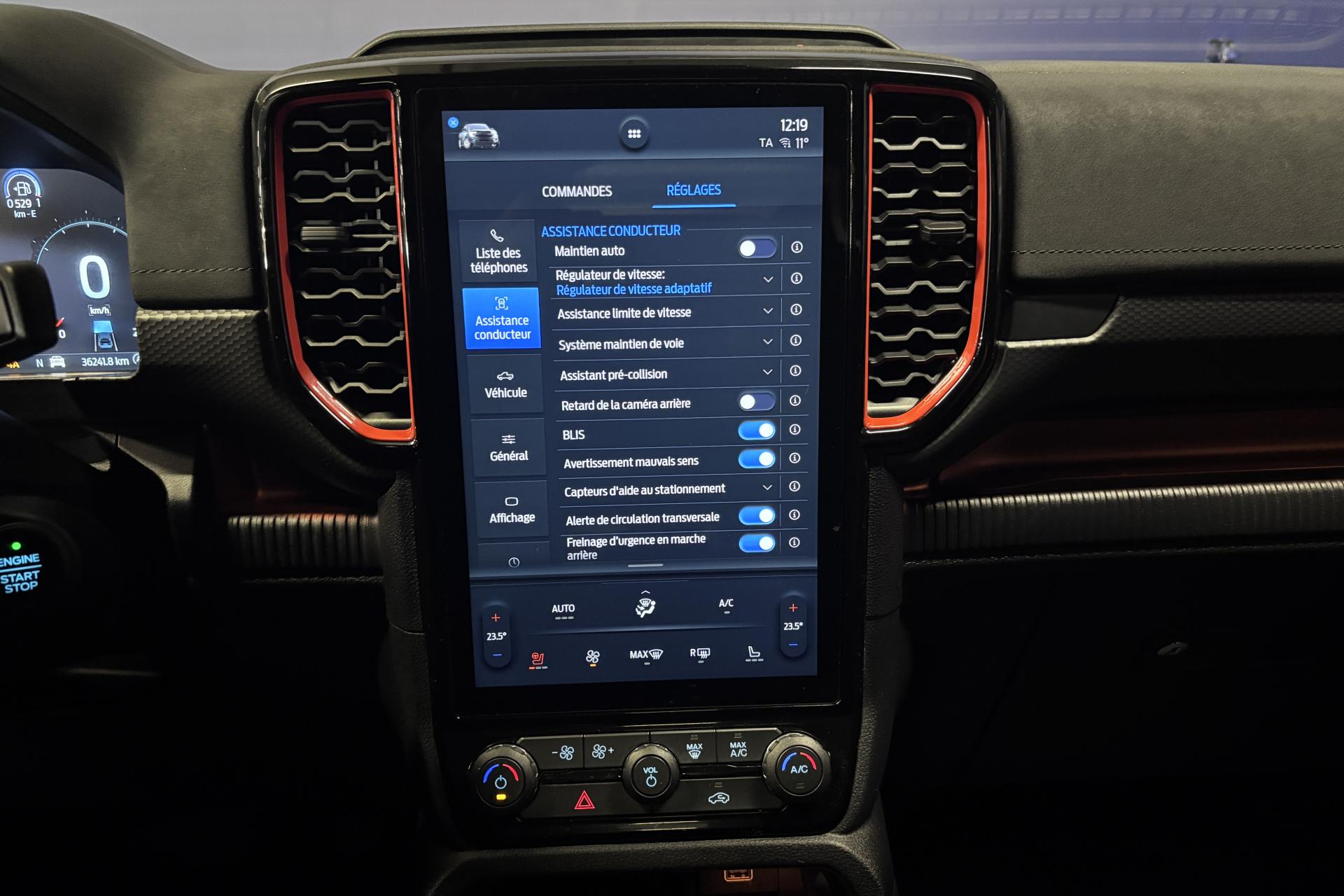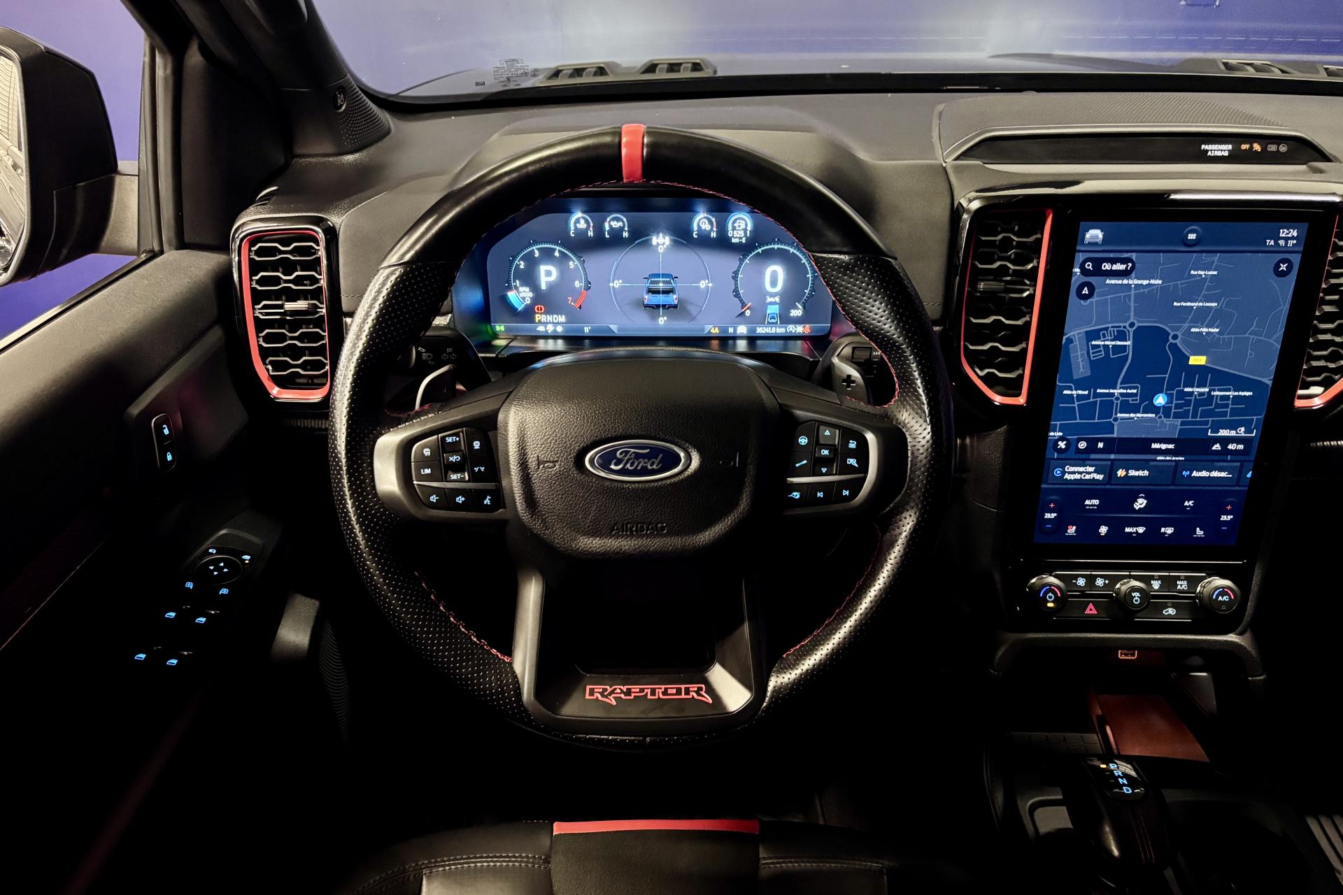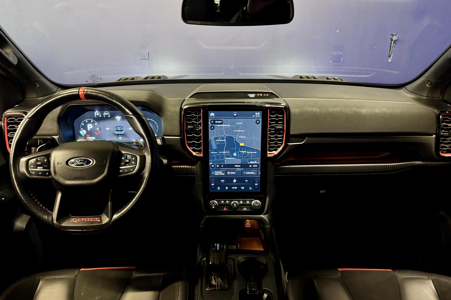 3ème feu stop arrièreABS (Antiblocage de roues)Active Park assist avancé avec fonction freinageAide au maintien dans la voieAirbag frontaux conducteur et passagerAirbag genoux côté conducteur et passagerAirbags latéraux, conducteur et passager avantAirbags thorax, conducteur et passager avantAllumage automatique des projecteursAnti-démarrage électronique (PATS)AntipatinageAssistance au démarrage en côte (HSA)Assistance au freinage d'urgenceAttelage remorque avec prise 13 brochesBac de protection plastique avec prise accessoire 12VBanquette 3 places, en rang 2Bavettes ARBavettes AVBlocage de différentiel arrièreBlocage de différentiel avantCalandre spécifique RaptorCaméra 360°Chargeur à inductionClimatisation automatique bi-zoneConsole centrale avec espace de rangement double formant accoudoir, deux porte-gobeletsConsole de pavillon avec plafonnier et lecteurs de carteContrôle adaptatif de la charge (LAC)Contrôle de stabilité de la remorque (TSM)Contrôle dynamique de la trajectoire (ESP)Convertisseur 400W dans la benne avec prise 220VCrochets d'arrimage intérieurs de plateau modulableDégivrage de la vitre arrièreEclairage d'ambiance à LEDEclairage extérieur 360° du véhiculeEclairage plafonnier arrièreEssuie-glace à déclenchement automatiqueEssuie-glace avant à balayage intermittent variable et lave-glaceFeu arrière antibrouillardFeux de freinage d'urgence - EBLFeux de jourFreinage automatique d'urgenceFreins à disques ventilés à l'avant et à l'arrièreLève-vitres avant électriques à descente par impulsionLimiteur de vitesse intelligentMarchepieds latéraux spécifiques RaptorMode gestion Tout terrain (TMS) (Terrain Management System)Pack Technologie 20Pare-brise chauffantPare-chocs arrière acier peint avec marchepiedParechocs avant avec plaque de protection aluminiumPassages de roues élargisPhares à LED Matrix intelligentsPlancher moquette dans l'espace passagersPlaques de pas de porte spécifiques RaptorPlateau en acier avec protection renforcée et ridelle arrière rabattable verrouillablePoche aumônière au dos du siège conducteurPoignées de portes et de ridelles arrières noiresPoints d'ancrage ISOFIXPommeau de levier de vitesses en cuirPortes arrièrePrise 12V à l'arrièreProjecteurs antibrouillard à LEDReconnaissance des panneaux de signalisationRéglage des phares en hauteurRégulateur de vitesse adaptatifRégulateur de vitesse adaptatif intelligent (i-ACC)Rétroviseur intérieur électrochromeRétroviseurs extérieurs couleur carrosserie avec éclairage du sol et répétiteurs de clignotantsRétroviseurs extérieurs réglables et rabattables électriquement et chauffantsRidelle à verrouillage électriqueRoue de secours aluminium avec cricSellerie cuir et Alcantara spécifique RaptorSièges conducteur et passager chauffantsSièges conducteur et passager électriques réglables 10 positionsSystème anti-collision avec freinage d'urgenceSystème audio SYNC 4 avec DAB, GPS, 2 ports USB, 10HP B&O, écran tactile couleur 12"Système d'avertissement anticollisionSystème de contrôle de la descente (HDC)Système de protection anti-retournement (ROM)Système pré-collision (PCS)Tapis de sol spécifique RaptorTrappes à carburant sans bouchon Ford Easy FuelVerrouillage centralisé double à commande à distanceVitres arrière électriquesVolant réglable en hauteurVolant spécifique Raptor avec palettes de commande de transmission