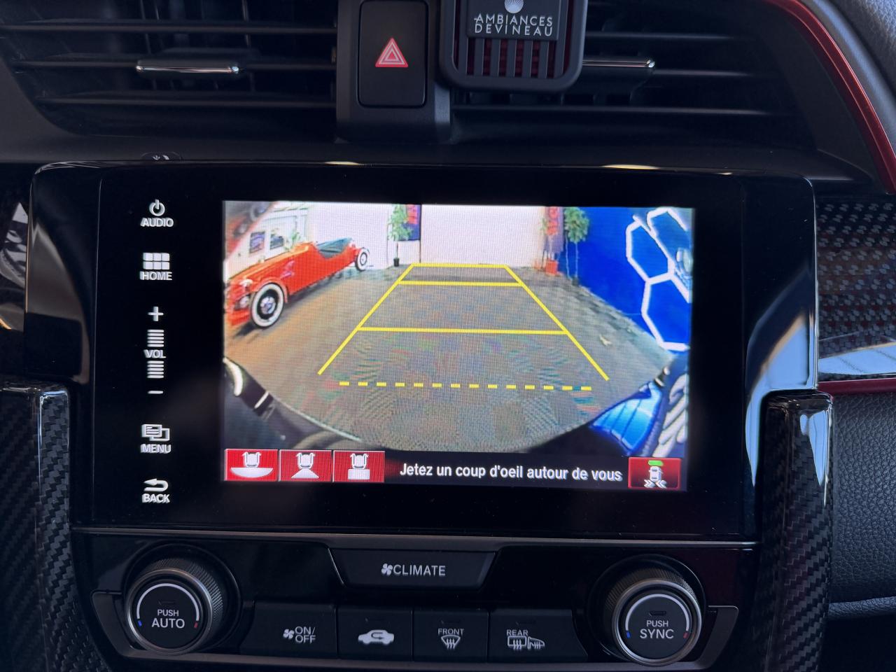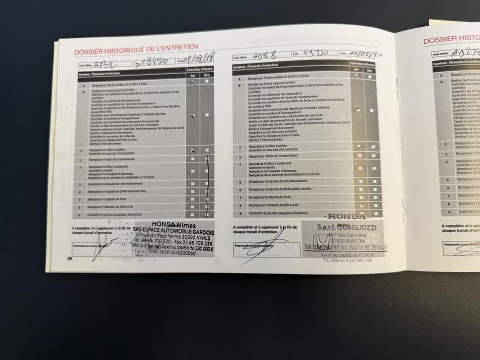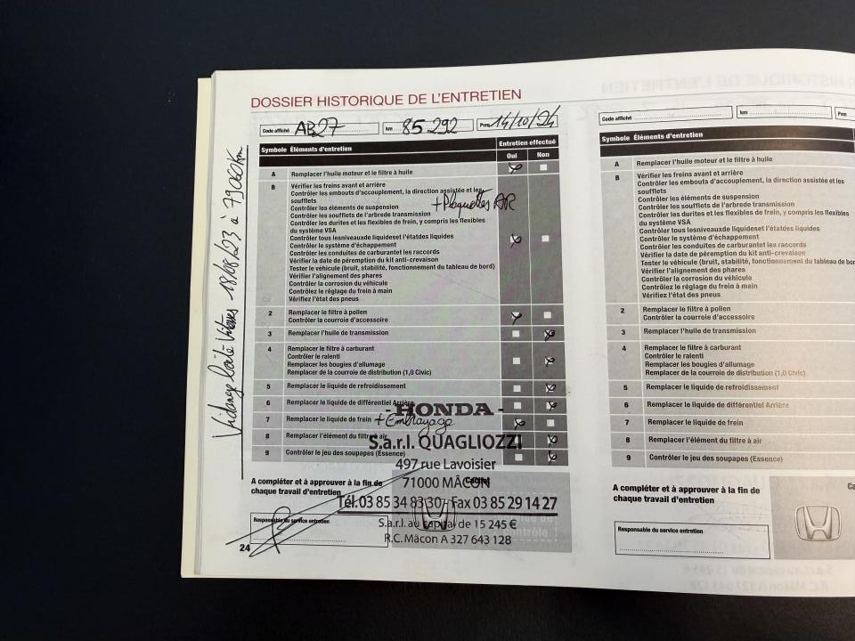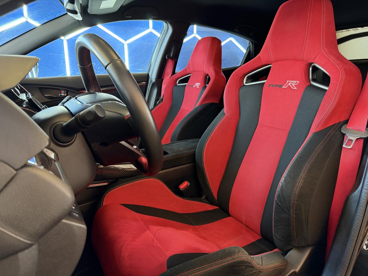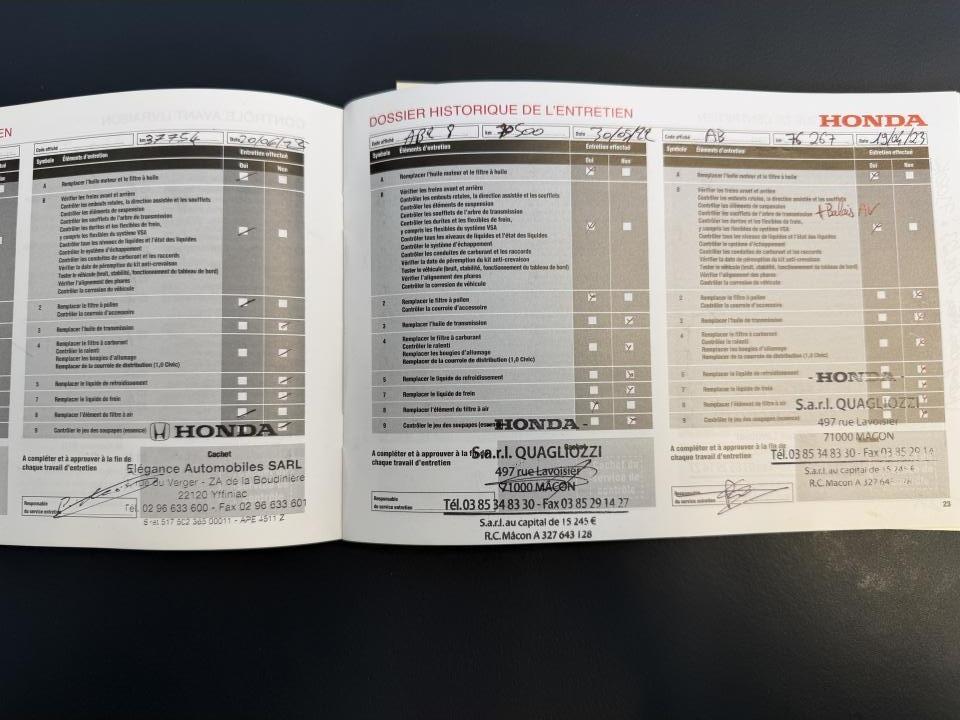 2 prises USB & prise HDMI3ème feu stop surélevéAileron arrière Type RAirbag conducteur à double mode de déclenchement (i-SRS)Airbag passager avant déconnectableAirbags latéraux avantAirbags rideauxAlerte de franchissement de ligne LDW (Lane Departure Warning)Allumage automatique des projecteursAncrages Isofix aux places latérales arrièreAntenne de toit « aileron de requin »Assistance au démarrage en côte (HSA)Assistance au freinage d'urgenceBanquette arrière rabattable 60/40 avec appuis-tête fixesCalandre noireCaméra de recul grand angle avec guides dynamiquesCeintures de sécurité arrière à prétensionneursCeintures de sécurité avant à prétensionneurs à double déclenchementChargeur sans fil pour SmartphoneCiel de pavillon noirClimatisation automatique bi-zoneCommandes audio au volantConsole centrale avec accoudoir et compartiment de rangementDAB (Digital Audio Broadcast)Déverrouillage des portières par télécommande en deux tempsDirection à assistance électrique variableDisques arrière pleins 16''Disques de freins ventilés et perforés avant 18''Eclairage d’ambianceEclairage de boîte à gantsEclairage de coffreEclairage de courtoisie intérieurEssuie-glace à déclenchement automatiqueEssuie-glace arrière à balayage intermittentFeux de jour à LEDFeux de route actifs HSS (Highbeam Support System)Fixations dans le coffre x 4Frein de stationnement électronique avec maintien de freinageGarnitures extérieures effet fibre de carbone et détails rouges (Avant / Arrière / Latérales)Honda CONNECT : Écran tactile 7”, AM / FM / DAB, Apple CarPlay / Android Auto, Radio internet, Application Aha et Navigation internetIllumination rouge du tableau de bordIncrustations et garnitures d'aérateurs rougesIndicateur de changement de rapport optimal SILInstrumentation digitale avec affichage couleurJantes alliage 20'' - Noir PianoKit de réparation anti-crevaisonLave-phares haute pressionLimiteur de vitesse intelligentLiseuse avantMiroirs de courtoisie éclairésNavigation GARMIN pour Honda CONNECTPédalier alliagePhares à LEDPlage arrièrePlaque d'identificationPneumatiques 245/30 ZR20Poignées de portes couleur carrosseriePommeau de levier de vitesses AlliagePrise 12V à l'arrièrePrise 12V à l'avantProjecteurs antibrouillard à LEDRadars de stationnement PDC avant et arrièreRéglage en hauteur manuel du siège conducteurRégulateur de vitesse adaptatif intelligent (i-ACC)Répartiteur électronique de freinage (EBD)Rétroviseur intérieur électrochromeRétroviseurs extérieurs chauffants réglables électriquementRétroviseurs extérieurs rabattables électriquement et télécommandésSièges sports Type R avec appuis-tête intégrés et sellerie rouge imitation daimSigles Types R avant et arrièreSortie d'échappement centrale triple Type R avec emboutsSystème d'alarmeSystème d'amortisseurs adaptatifs quatre pointsSystème d'antiblocage des freins (ABS)Système d'assistance au maintien dans la voie de circulation (KLAS)Système d'avertissement anticollision avant (FCW)Système d'immobilisation électroniqueSystème de coupure automatique du moteur à l'arrêt Auto StopSystème de déverrouillage et de démarrage sans cléSystème de prévention des collisions par freinage (CMBS)Système de prévention des sorties de route RDMSystème de reconnaissance des panneaux de signalisation TSR (Traffic Sign recognition)Système de surveillance de l'angle mort (BSI) avec alerte de véhicule en approche (CTM)Système de surveillance de la pression des pneumatiquesSystème de talon-pointe automatique (Rev Match System)Système de téléphonie mains-libres BluetoothSystème de temporisation de l'allumage/extinction des feuxSystème haute puissance - 11 haut-parleursTrappe à carburant sans bouchonTrois modes de conduite sélectionnables (Comfort/Sport/+R)Vitres électriques avant et arrière à impulsion et télécommandéesVitres surteintéesVolant réglable en hauteur et en profondeurVolant sport Type-R cuirVSA (contrôle électronique de trajectoire)