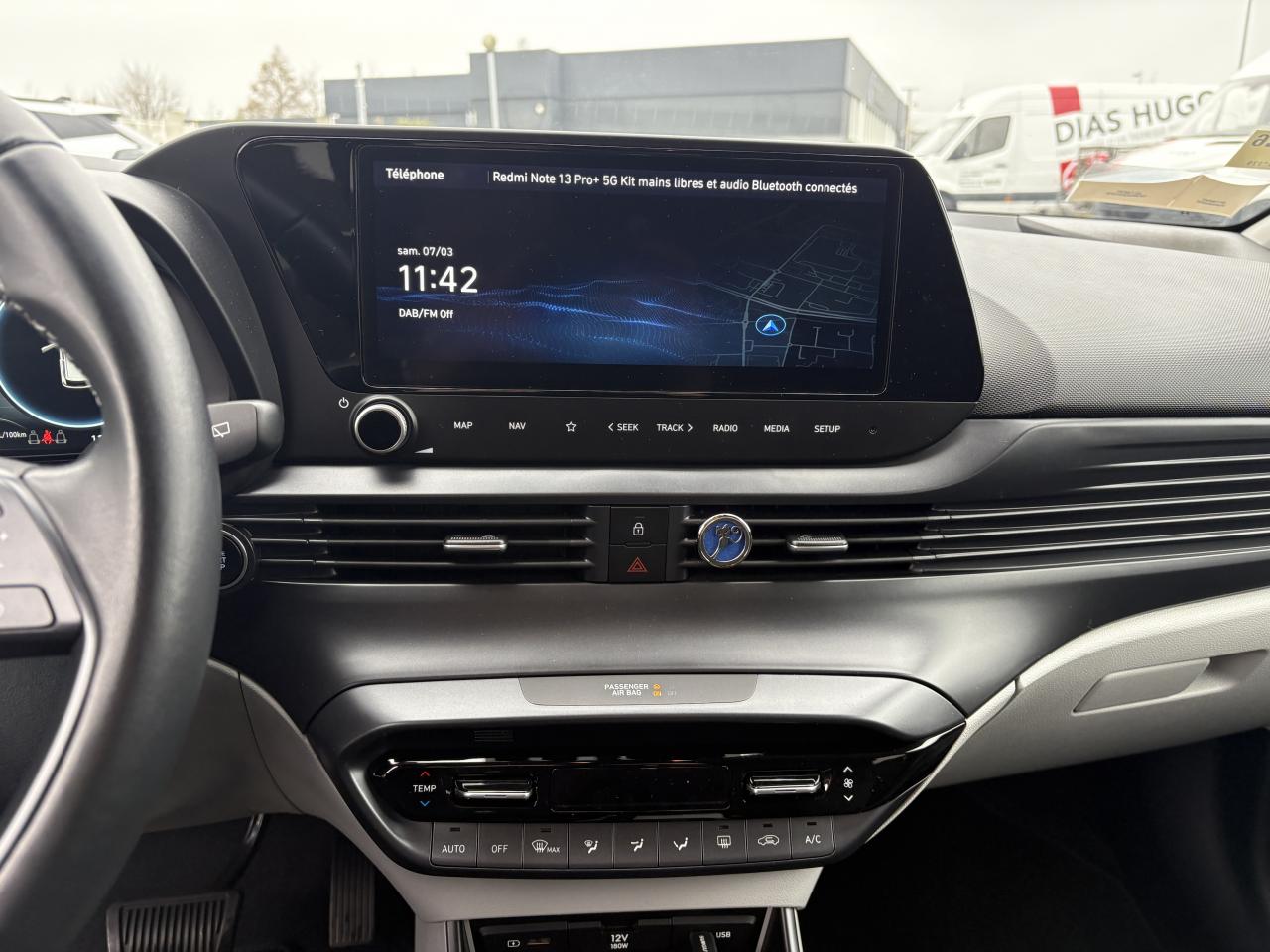 2 haut parleurs arrière2 haut-parleurs + 2 tweeters (à l'avant)Accès et démarrage mains-libresAccoudoir avant avec console de rangement intégréeAccoudoir central avant coulissantAide au démarrage en côteAide au stationnement arrièreAirbags frontaux conducteur et passager (déconnectable côté passager)Airbags latéraux avantAirbags rideaux avant et arrièreAllumage automatique des projecteursAntidémarrageAppuie-tête avant et arrière règlables en hauteurAssistance au maintien de voieBanquette arrière rabattable 40/60Calandre noir laquéCaméra de reculCapteur de pluieChargeur sans fil pour smartphones compatiblesClimatisation automatique avec désembuage automatiqueCommandes au volantCompatibilité Apple CarPlay et Android AutoCompteurs numériques 10,25''Connexion BluetoothContrôle de la pression des pneumatiquesContrôle de trajectoire électronique (ESP & VSM)Détecteur de fatigue du conducteureCall : appel d'urgence automatique aux services de secours avec géolocalisation du véhiculeEclairage d’ambianceFeux arrière à LEDFeux avant bi-LED avec éclairage additionnel en virageFeux de jour et feux de position à LEDFeux de route intelligentsFilet de coffreIntérieur bi-ton noir et gris clairJantes alliage 17''Joncs de vitres chromésKit de réparation anti-crevaisonLimiteur de vitesse intelligentMiroirs de courtoisie éclairésMiroirs de courtoisie pour conducteur et passagerModes de conduiteNavigation Europe (Ecran tactile 10,25", Programme de mise à jour de la navigation, Services connectés Bluelink et Hyundai Live)Peinture Mangrove GreenPlancher de coffre modulablePoche aumônière au dos du siège passager avantPoignées de portes intérieures grain métalPort USB de recharge à l'arrièrePort USB de recharge à l'avantPorte-gobelets avantProjecteurs antibrouillardRéception radio numérique (DAB)Reconnaissance des panneaux de limitation de vitesseRégulateur de vitesseRétroviseur intérieur électrochromeRétroviseurs extérieurs électriques et dégivrantsRétroviseurs rabattables électriquementSécurité enfants sur portes arrièreSiège conducteur réglable en hauteurSkis avant et arrière noir laquéSystème audio RDS compatible MP3 avec connexion USBSystème de freinage d’urgence autonome (FCA) avec détection des piétonsSystème Isofix aux places latérales ARVerrouillage automatique des portes en roulantVerrouillage centralisé à distance avec clé rétractableVitres arrière et lunette arrière surteintéesVitres électriques (séquentielle côté conducteur)Vitres électriques avant et arrièreVolant et levier de vitesses gainés cuirVolant réglable en hauteur et en profondeur