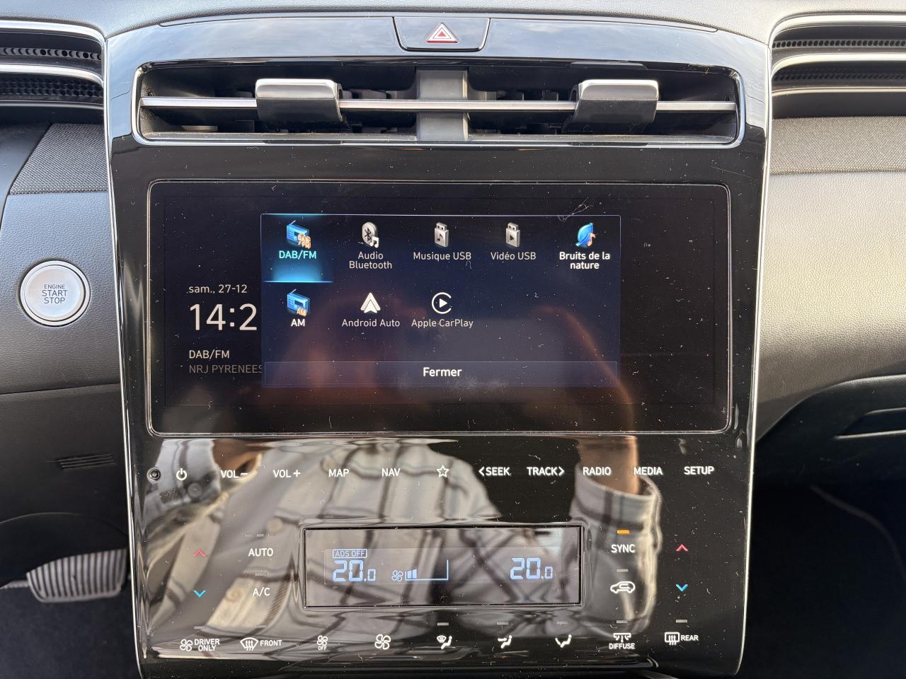 Accès et démarrage mains-libresAccoudoir avantAccoudoir central arrière avec porte-gobeletAide au démarrage en côteAide au stationnement arrièreAide au stationnement avantAirbag central avantAirbag passager déconnectableAirbags conducteur et passagerAirbags latéraux avantAirbags rideaux avant/arrièreAlarme périmétriqueAlerte de circulation transversale à l'arrière avec fonction freinageAllumage automatique des projecteursAntenne de toit « aileron de requin »Appuie-têtes arrière réglables en hauteurAppuie-têtes avant réglables en hauteur et ajustablesAssistance active au maintien de voieAssistance active au suivi de voieAssistant de sortie du véhiculeCache-bagages à enrouleurCalandre chromée "Parametric Dynamics"Caméra de recul avec lignes de guidage activesCapteur de désembuage automatique du pare-briseCapteur de pluieCeintures avant réglables en hauteur avec prétensionneursChargeur sans fil pour smartphones compatiblesClignotants avant à LEDClimatisation automatique bi-zone avec capteur de désembuage automatiqueCommandes audio au volantCompatibilité Apple CarPlay et Android AutoCompteurs numériques 10,25''Connexion BluetoothConsole centrale avec bac de rangement sous l'accoudoirContrôle de pression des pneus ( TPMS )Contrôle de trajectoire électronique (ESP) avec gestion de la stabilité pour remorqueContrôle de vitesse en descenteDirection assistée électrique asservie à la vitesseDossier arrière rabattable 40/20/40 à distance avec commande depuis le coffreDouble sortie d'échappementDrive ModeeCall : appel d'urgence automatique aux services de secours avec géolocalisation du véhiculeEclairage additionnel en virageEclairage d'ambiance intérieur à LED personnalisableFatigue Detection : Système de détection de fatigue du conducteurFeux arrière à LED avec bandeau lumineuxFeux de jour et de position avant à LED à effet miroirFeux de route intelligentsFilet de coffreFrein de parking électrique avec fonction Auto-HoldFreinage actif d'urgence avec détection des piétons et cyclistesJantes alliage 17''Joncs de vitres chromésLimiteur de vitesse intelligentMiroirs de courtoisie éclairésNavigation Europe avec programme de mise à jour de la cartographie et services Hyundai LivePalettes au volantPare-brise athermiquePare-soleil intégrés dans les portes arrièrePoches aumônières au dos des sièges avantPoignées de portes couleur carrosseriePoignées de portes intérieures grain métalPorte-gobelets à l'avant et à l'arrièrePrise 12V à l'avant et dans le coffrePrise USB arrièrePrise USB avantProjecteurs avant bi-LEDProtection arrière grain métalProtection avant grain métalProtections de seuils de portes grain métalRadio Numérique DABRails de toitReconnaissance des panneaux de limitation de vitesseRégulateur de vitesseRétroviseur intérieur électrochromeRétroviseurs électriques dégivrants, rabattables électriquement avec répétiteur intégréRétroviseurs extérieurs couleur carrosserieServices connectés BlueLink avec carte SIMSiège conducteur à réglage lombaire électriqueSièges arrière inclinablesSièges avant chauffantsSièges avant réglables en hauteurSurveillance des angles morts avec assistance au changement de voieSystème audio RDS, MP3, 4 haut-parleurs et 2 tweetersSystème de fixations ISOFIX pour siège enfant aux places latérales arrièreSystème de freinage anti multi-collisionsSystème multimédia avec écran couleur tactile 10,25'' et reconnaissance vocaleTransmission à commande électriqueVerrouillage automatique des portes en roulantVerrouillage centralisé à distanceVide-poches dans portes avant/arrièreVitres arrière surteintéesVitres avant et arrière électriques séquentiellesVolant et pommeau de levier de vitesses gainés cuirVolant réglable en hauteur et en profondeur