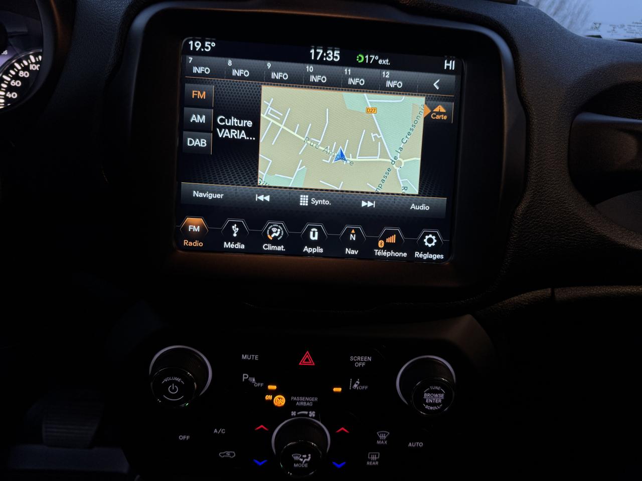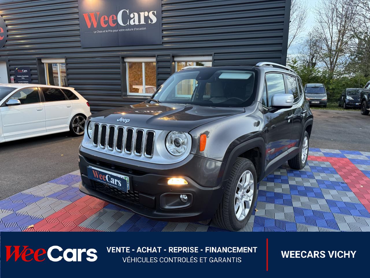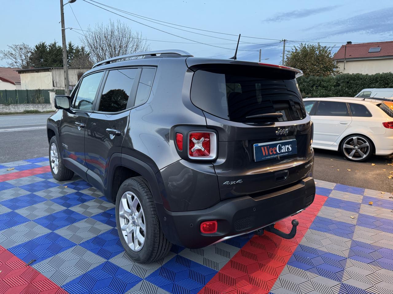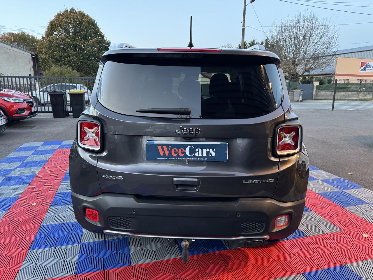 3 appuie-tête arrière réglables en hauteur6 AirbagsAccoudoir central avant coulissant avec rangementAide au stationnement arrièreApplique gris clair sur le pare-choc arrièreAppuie-tête actifs à l'avantAvertisseur de perte de pression des pneusBarres de toit longitudinales gris clairBlocage de la répartition du couple 50/50Calandre gris clairCapteur de pluieCapteurs de stationnement avantCeinture de sécurité réglable en hauteurCeintures de sécurité arrière 3 pointsCerclage des feux arrière gris clairCerclages de calandre chromésClimatisation automatique bi-zoneColoris pastel Colorado RedContrôle dynamique de stabilité (ESP)Crochets d'arrimage dans le coffreDéconnexion de l'essieu arrièreDétecteur de luminositéDirection assistée électriqueDossier du siège passager rabattable à platEclairage d'ambiance à LEDFrein de parking électriqueJantes alliage 17" PassionKit anti-crevaisonLimiteur de vitessePack FonctionnalitéPneumatique 3 saisonsPoignées de portes couleur carrosseriePort USB ; Prise auxiliaire Jack et lecteur de carte SDPrises 12V ; console centrale et espace de chargementProjecteurs antibrouillard avant avec éclairage statique d'intersectionProtection des bas de caisses off-road en plastique noirRapport de démultiplication final supérieurRégulateur de vitesseRétroviseurs extérieurs électriques et dégivrantsRétroviseurs extérieurs réglables électriquementRétroviseurs gris clairSièges avant à réglage manuel : 6 points pour le conducteur; 4 pour le passagerSièges en cuirSortie d'échappement chroméeSystème antipatinage 4 roues par action sur les freinsSystème audio à 6 haut-parleursSystème d'aide à la descenteSystème d'aide au démarrage en côteSystème d'aide au freinage d'urgence (prépositionnement des plaquettes de freins en anticipation)Système d'avertissement anticollision avec arrêt à faible vitesseSystème d'avertissement de franchissement de ligne avec correctionSystème de contrôle de la stabilité en conditions de remorquageSystème de fixation pour siège enfant ISOFIXSystème de gestion de la motricité Select-Terrain : 4 Terrains (Auto/Snow/Sand/Mud)Système de navigation GPS Uconnect Live 8,4"Système de téléphonie mains-libres BluetoothSystème préventif anti-retournement (ERM)Système Stop & StartTapis de coffre réversibleTapis de sol avant et arrièreVerrouillage centralisé avec télécommandeVitres avant et arrière électriquesVolant gainé cuirVolant multifonctionsVolant réglable en hauteur et en profondeur