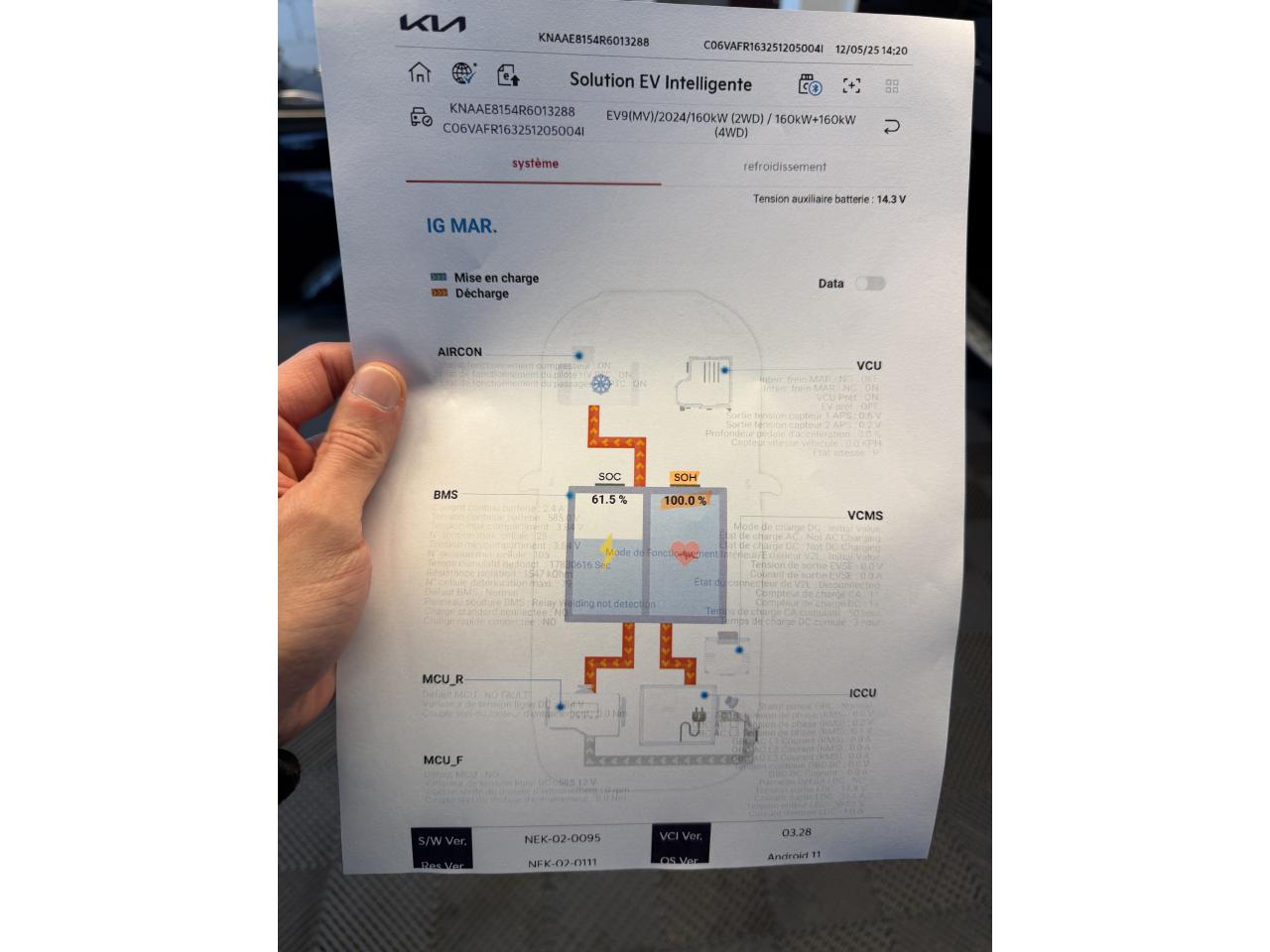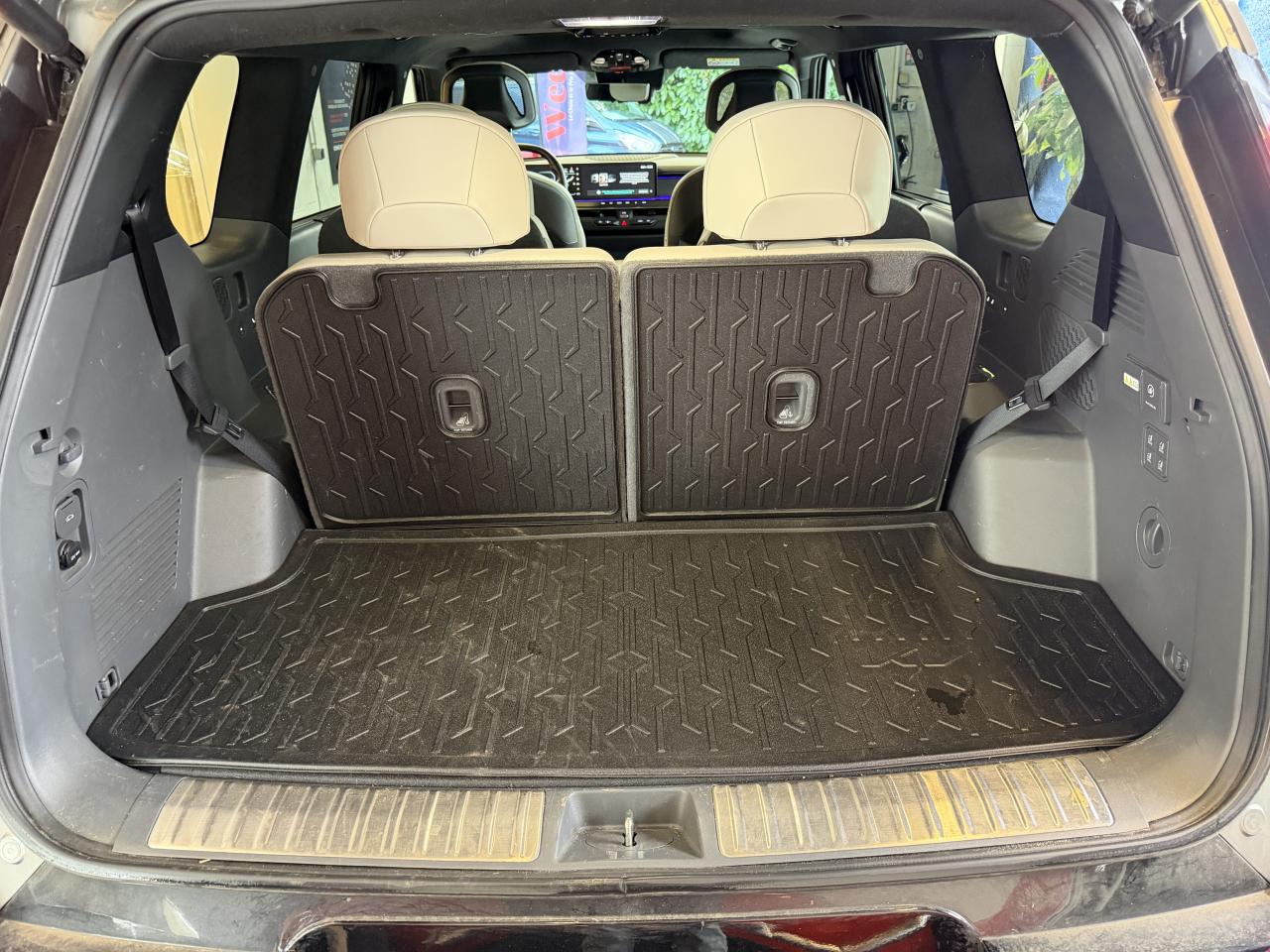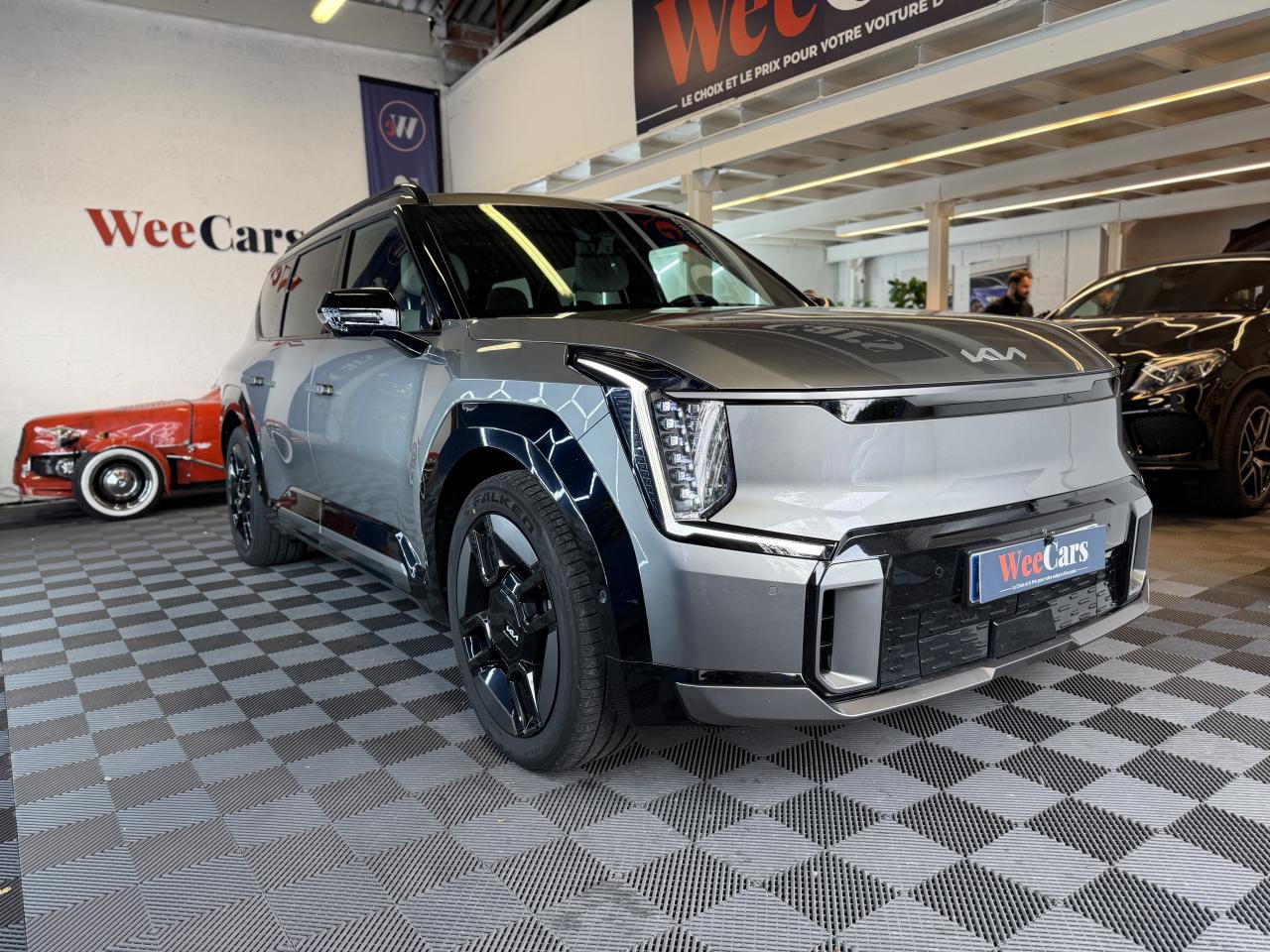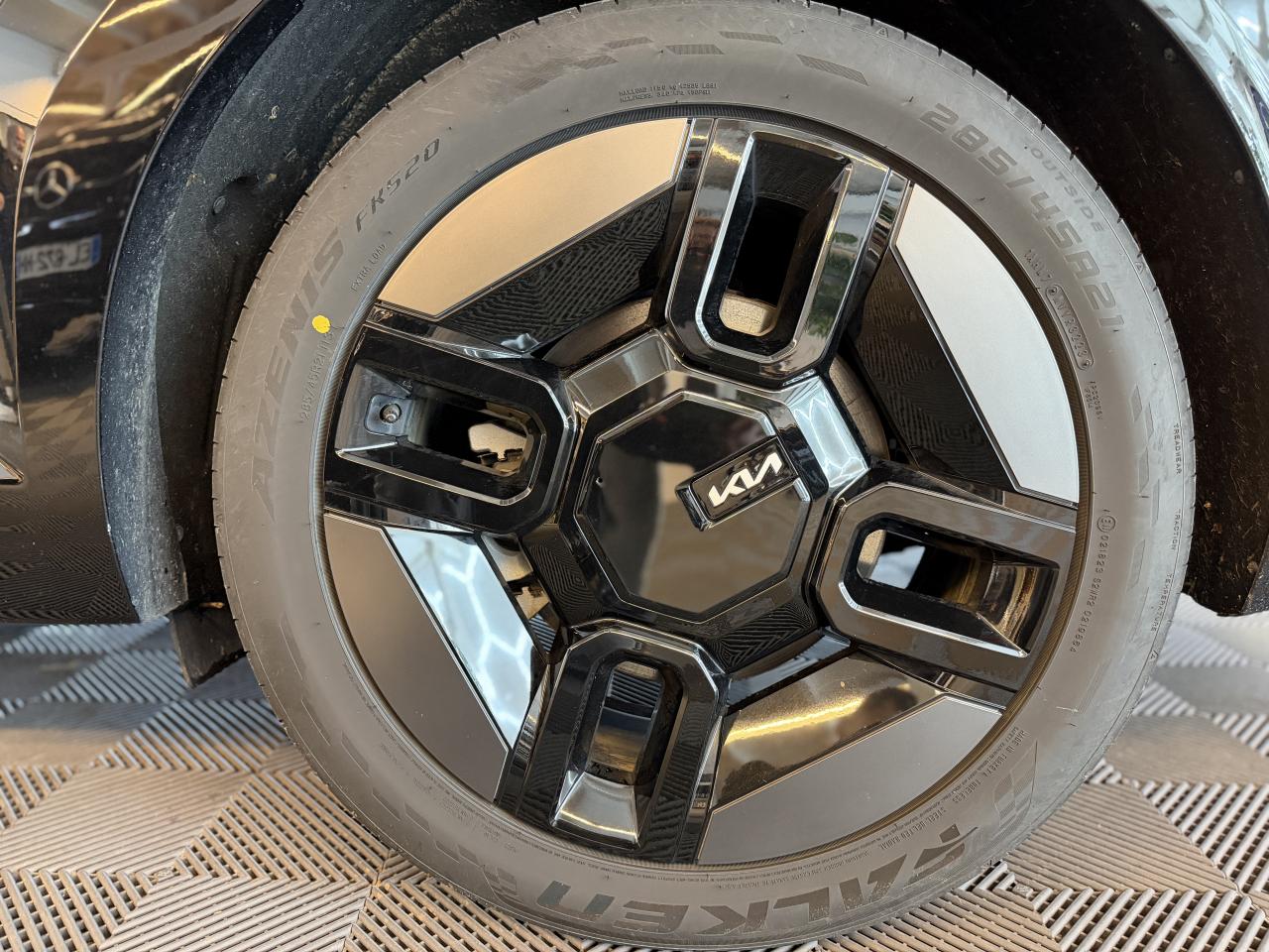 3ème rangée de sièges rabattable électriquementAbonnements Kia Charge Plus et IONITY Power offerts pendant 36 moisAccoudoirs latéraux au rang 3 avec porte gobeletAffichage tête hauteAide à la stabilité au remorquage (TSA)Aide au démarrage en côte (HLA)Aide au maintien dans la file (LKA)Aide au stationnement avant/arrièreAirbags conducteur et passagerAirbags latéraux conducteur et passagerAirbags rideauxAllumage automatique des projecteursAppuie-têtes à l'avant réglables en hauteur et inclinablesAppuis-tête arrière réglables en hauteurAssises de rang 2 et 3 avec ancrage ISOFIXAssistance active à la conduite dans les embouteillagesAssistance active à la conduite sur autoroute avec détection des mains sur le volant (HDA 2.0 avec HOD)Barres de toitBoucliers avant et arrière spécifiques GT LineBuses de ventilation pour les deuxièmes et troisièmes rangées avec réglage indépendant de la températureCâble de recharge standard sur prise domestiqueCaméra de recul avec lignes de guidage activesCapteur de pluieCarte Kia Charge (accès gratuit au service de recharge et à l'application)Chargeur embarqué triphasé 11 kWCiel de toit en SuédineClé digitale et reconnaissance biométriqueClimatisation automatique tri-zoneCompatibilité Apple CarPlay et Android AutoConnectique USB-C au dos des sièges conducteur et passager avantConnectique USB-C sur la partie inférieure du tableau de bordConnectique USB-C sur sur les garnitures latérales de la troisième rangéeConnectiques USB à charge rapideContour des vitres latérales satiné foncéContrôle électronique de la trajectoire (ESC)Eclairage d'ambiance personnalisableEclairage intérieur à LEDFrein de parking électrique avec fonction Auto-HoldGéolocalisation des bornes de recharge via la navigation embarquée et les services connectés Kia LiveHayon à ouverture électrique mains-libresJantes 21’’ avec inserts aérodynamiquesMoniteur avec vision panoramique 360°Palettes de modulation de la puissance de freinage régénératif au volant (en mode Eco)Pédalier finition AluminiumPeinture métallisée Rouge VolcanPlancher de coffre amoviblePlanificateur d'itinéraire intelligentPoche aumônière au dos des sièges passager et conducteurPoignées de porte escamotables électriquementPompe à chaleurPorte gobelets avantPorte-gobelets sur la console centrale pour le second rangPrise 12V sur la console centralePrise 220VPrise Combo 2 (CCS)Programmation de la recharge et de la température de l’habitacleProjecteurs avant à LED matriciels, 12 cubesRecharge bi-directionnelle (fonction V2L – Vehicle-to-Load)Reconnaissance des panneaux de limitation avec régulation de vitesse (ISLA)Régulateur de vitesse adaptatif couplé au système de navigation (NSCC-C) et avec fonction Stop & GoRépartiteur de freinage EBD et ABSRétroviseur intérieur digitalRétroviseur intérieur électrochromeRétroviseurs extérieurs électrochromatiques, électriques, chauffants et rabattablesSécurité enfants électrique pour portes et vitres ARSélecteur de mode de conduiteSélecteur Multi-terrainSellerie cuir artificiel végan GT-lineServices télématiques Kia ConnectSiège conducteur à mémoire et à réglage lombaires électrique (4 positions)Siège conducteur massantSièges avant à réglages électriquesSièges avant et arrière (second rang) ventilés et chauffantsSièges conducteur et passager avant premium à réglages électriques et fonction détenteSolution de recharge pour prise domestique 230V (adaptateur pour câble T2-T2)Système anticollision avec détection et affichage des angles morts (BCA & BVM)Système audio premium Meridian comprenant 14 haut-parleurs et un amplificateur externeSystème d'ouverture et de démarrage sans clé "Smart Key"Système d’assistance au stationnement à distance (RSPA)Système de chargement du smartphone par inductionSystème de détection d’obstacles arrière avec fonction freinage (PCA)Système de détection d’obstacles avant et latéral avec fonction freinage (PCA)Système de freinage à récupération d'énergie avec fonction "i-pedal"Système de freinage d'urgence autonome avec détection des piétons et des cyclistes (FCA) et fonction de croisementSystème de Freinage Multicollision : ce dispositif freine automatiquement le véhicule après un premier choc afin de limiter le risque de multicollisionSystème de navigation avec cartographie Europe et services connectés Kia Connect Live offerts pendant 7 ansSystème de pré-conditionnement de la batterieSystème de surveillance de la vigilance du conducteurTechnologie Plug and ChargeToit ouvrant avant et toit arrière vitréTriple écran panoramique, intégrant un ordinateur de bord « Supervision » de 12,3”, un écran d'affichage des réglages de confort de 5,1”Verrouillage automatique des portes asservi à la vitesseVitres avant et arrière électriques séquentiellesVitres latérales et lunette arrière surteintéesVolant à réglage électrique avec fonction mémoireVolant chauffantVolant cuir artificiel végan