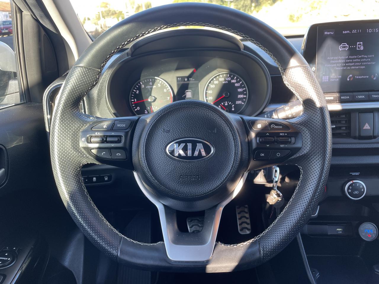6 haut parleurs dont 2 tweeters à l'avantABS (antiblocage des roues) avec EBD (répartiteur électronique de la force de freinage)Accoudoir central AV coulissant avec compartiment de rangementAirbags frontaux conducteur et passager (déconnectable côté passager)Airbags latéraux conducteur et passagerAirbags rideaux avant et arrièreAllumage automatique des feux de détresseAllumage automatique des projecteursAntenne de toit « aileron de requin »Appuie-tête avant et arrière règlables en hauteurAssistance au démarrage en côteBanquette arrière rabattable 40/60Boîte à gants avec couvercleBoucliers avant et arrière spécifique GT Line avec inserts noir laquéCache-bagagesCalandre avec application noir laqué et contour finition chromeCaméra de recul avec lignes de guidage activesCeintures de sécurité arrière 3 points (X3)Ceintures de sécurité avant à prétensionneurs, limiteur d'effortCeintures de sécurité avant réglables en hauteurClimatisation manuelleCommandes au volantCompte-toursCompteur de tableau de bord central "Supervision" TFT LCD 4,2"Condamnation centralisée à distanceConnexions Apple CarPlay et Android AutoConsole centrale avant avec double compartiment de rangementContrôle de pression des pneus ( TPMS )Contrôle de Stabilité en Courbe (CSC)Contrôle de stabilité en ligne droite (SLSC)Contrôle électronique de la trajectoire (ESC)Diffuseur arrière avec double sortie d'échappement esthétiqueDirection à assistance électrique (MDPS)Eclairage dans le coffreEcran tactile multimédia 8" avec système audioFeux avant diurnes et feux arrière à LEDFreinage d'urgence autonome (AEB)Insert finition aluminium sur la planche de bordInserts noir laqué au niveau des entourages des ouïes d'aération latérales et de la console centraleInserts rouges (ou gris selon couleur carrosserie) : calandre, bas de caisse et diffuseur arrièreJantes alliage 15”Jupes latérales spécifiques GT LineKit de dépannage en cas de crevaisonLève-vitres avant électriques à impulsion côté conducteur (descente et montée)Lève-vitres électriques arrièreLigne de vitrage chroméePare-soleil avec miroir de courtoisie conducteur éclairéPare-soleil avec miroirs de courtoisie conducteur et passagerPédalier finition AluminiumPlafonnier à l'avantPoche aumônière au dos du siège passager avantPoignées de portes couleur carrosseriePoignées de portes intérieures façon aluminiumPommeau de levier de vitesses en cuirPort USB avantPrise 12 volts sur la console centrale avantProjecteurs antibrouillardProjecteurs antibrouillard arrière à LEDProjecteurs avant à technologie dite de projectionRadio Numérique DABRégulateur et limiteur de vitesseRétroviseurs extérieurs couleur carrosserieRétroviseurs extérieurs électriques et dégivrantsSellerie tissu noir "Comet"Siège conducteur réglable en hauteurSystème de fixation ISOFIX à 3 points d'ancrage sur sièges arrièreSystème de téléphonie mains libres Bluetooth avec reconnaissance vocale et fonction streaming audioVolant à méplat gainé de cuir tendu et perforéVolant réglable en hauteur