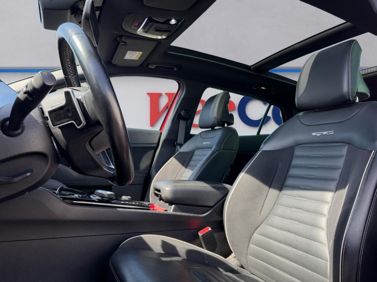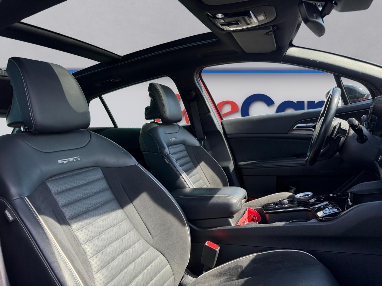 1 prise 12 volts dans le coffreABS avec répartiteur électronique de freinage (EBD)Accoudoir central arrière avec porte-gobelets intégrésAccoudoir central avant avec compartiment de rangementAffichage de la pression des pneumatiquesAide au stationnement avant/arrièreAirbag central entre les sièges avantAirbags frontaux, latéraux avant et rideauxAllumage automatique des projecteursAssistance active à la conduite dans les embouteillagesAssistance active au maintien de voie (LKAS)Assistance au démarrage en côteBanquette arrière rabattable 40/20/40 avec système de pliage à distance dans le coffreBouclier arrière noir laqué et protection du bouclier contrastée couleur carrosserie/chrome satinéBouclier avant couleur carrosserie et protection du bouclier chrome satinéCaméra de recul avec lignes de guidage activesCapteur de pluieCintres intégrés au dos des sièges avantClimatisation automatique tri-zoneCombiné d'instrumentation 100% digital 12.3''Compartiments de rangement sous le plancher de coffreConnectique USB à charge accélérée au dos des sièges avantConsole avant avec porte-gobelets intégrésContrôle de la pression des pneumatiquesContrôle de vitesse en descenteContrôle électronique de la trajectoire (ESC)Coques de rétroviseurs noir laquéCrochets intégrés au dos des sièges avantDésembuage automatique du pare-briseDossier de sièges arrière inclinable avec poignée de réglage intégrée à l'assiseDrive ModeEclairage d'ambiance à LED autour de la grille de ventilation et de la console centrale (64 couleurs)Ecran tactile couleur 12.3", compatible Android Auto et Apple CarPlayEntourage des vitres chroméFeux arrière à LEDFeux de jour avant à LED aspect boomerangFrein de parking électrique avec fonction Auto-HoldGrille de calandre noir laqué spécifique GT LineHayon à ouverture électrique mains-libresInserts antibrouillard couleur carrosserieInserts finition chrome satinéJantes en alliage 19 pouces GT LineKit de dépannage en cas de crevaisonLève-vitres avant et arrières électriques, séquentiel et anti-pincement à l'avantLimiteur de vitesseMoulures de bas de porte noir laquéPack DriveWise Park Plus en relation avec le Pack DriveWise PlusPack DriveWise PlusPalettes de changement de rapports au volantPare-soleil avec miroir de courtoisie illuminé conducteur et passagerPoches aumônières au dos des sièges avantPoignées de portes couleur carrosseriePort USB avantPrise 12 volts sur la partie inférieure de la planche de bordPrise USB à charge accélérée sur la partie inférieure de la planche de bordProjecteurs antibrouillard avant à LEDProjecteurs avant "Full LED" matricielsRadio Numérique DABRails de toitReconnaissance des panneaux de limitation avec régulation de vitesse (ISLA)Réglages lombaires électrique côté conducteurRétroviseur intérieur électrochromeRétroviseurs extérieurs électriques et dégivrantsRétroviseurs extérieurs rabattables électriquement avec répétiteur de clignotant LEDSellerie cuir artificiel/suède noir avec insert GT-lineSiège conducteur à mémoire de positionSiège conducteur réglable en hauteurSiège passager avant réglable en hauteurSièges avant à réglages électriquesSièges avant et arrière chauffantsSièges avant ventilésSurlignage des passages de roue en finition noir laquéSystème audio premium Harman Kardon comprenant 8 hauts-parleurs dont 2 tweeters, un caisson de basse et un amplificateur externeSystème d'ouverture et de démarrage sans clé "Smart Key"Système de chargement du smartphone par inductionSystème de fixation ISOFIX aux places arrière latéralesSystème de freinage d'urgence autonome avec détection des voitures, piétons et cyclistes (FCA)Système de gestion intelligente des feux de route (HBA)Système de navigation avec cartographie Europe et services connectés Kia Live offerts pendant 7 ansSystème de surveillance de la vigilance du conducteurSystème de téléphonie mains-libres Bluetooth avec reconnaissance vocale, mode personnalisé et fonction streaming audioSystème Kia Connect - services télématiques offerts pendant 7 ansTémoin de niveau de lave-glaceTémoins de non-bouclage des ceintures avant et arrièreToit vitré panoramique ouvrant / entrebâillant électriquement avec store occultant électrique et éclairage intérieur à LEDVerrouillage automatique des portes asservie à la vitesseVitres latérales et lunette arrière surteintéesVolant à méplat gainé cuir avec insert GT-lineVolant chauffantVolant réglable en hauteur et en profondeur