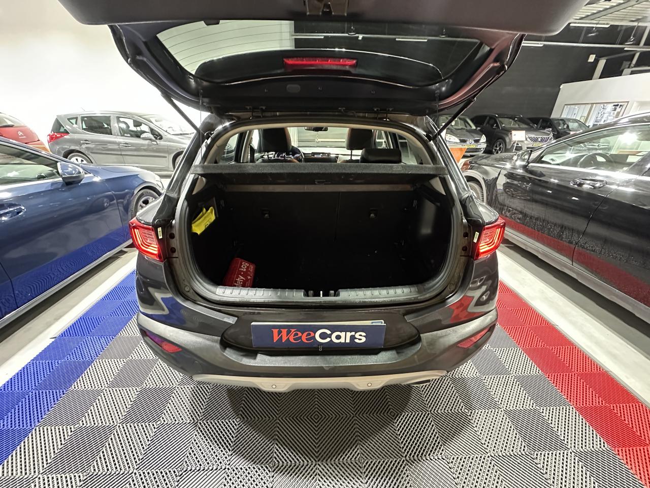 2 porte-gobelets dans la console centraleABS avec répartiteur électronique de freinage (EBD)Airbags frontaux conducteur et passager (déconnectable côté passager)Airbags latéraux conducteur et passagerAirbags rideaux avant et arrièreAllumage automatique des feux de détresseAllumage automatique des projecteursApplication finition chrome satiné sur le volantAppuie-tête AV réglables en inclinaisonAppuie-tête avant et arrière règlables en hauteurAssistance au démarrage en côteBanquette arrière rabattable 40/60Boîte à gants éclairéeCache-bagagesCalandre avec application noir laqué et contour finition aluminiumCaméra de recul avec lignes de guidage activesCapteur de pluieCeintures de sécurité arrière 3 points (X3)Ceintures de sécurité avant à prétensionneurs, limiteur d'effort et réglage en hauteurClimatisation automatiqueCommandes de l'autoradio au volantCompte-toursCondamnation centralisée à distanceConnectique audio AUX et USBConnectique de chargement USB au dos de la console centraleConsole centrale avant avec double compartiment de rangementConsole centrale avec accoudoir coulissant et compartiment de rangement intégréContrôle de pression des pneus ( TPMS )Contrôle de Stabilité en Courbe (CSC)Contrôle de stabilité en ligne droite (SLSC)Contrôle électronique de la trajectoire (ESC)Contrôle vectoriel de coupleDésembuage automatique du pare-briseDirection à assistance électrique (MDPS)Double plancher dans le coffreEclairage dans le coffreEssuie-glace arrière avec lave-glaceEssuie-glace avant à intermittenceFeux arrière à LEDFeux diurnes à LEDIndicateur de changement de rapportIndicateur de niveau de lave-glaceInserts noir laqué au niveau de la console centrale et des ouïes d'aération du tableau de bordJantes alliage 17''Kit de réparation pour crevaisonLève-vitres arrière électriques verrouillables par le conducteurLève-vitres avant électriques à impulsion côté conducteur (descente et montée)Ligne de vitre chroméeOrdinateur de bordOuverture et démarrage sans clé “Smart Key”Pack NavigationPare-soleils avec miroir de courtoisie illuminé conducteur et passagerPédalier finition AluminiumPoche aumônière au dos du siège passager avantPoignées de portes couleur carrosseriePoignées de portes intérieures finition chrome satinéPrise 12 volts sur la console centrale avantProjecteurs antibrouillard avant avec éclairage statique d'intersectionProjecteurs avant à technologie dite de projectionProtection de bouclier avant et arrière finition aluminiumRadars de stationnement arrièreRails de toit aluminium satinéRégulateur de couple et assistance au contre-braquage (VSM)Répétiteur de clignotant intégré aux rétroviseurs extérieursRétroviseur intérieur électrochromeRétroviseurs extérieurs chauffants et électriqueRétroviseurs extérieurs couleur carrosserieRétroviseurs extérieurs rabattables électriquementSellerie cuir de synthèse bi-ton anthracite/gris galetSiège conducteur réglable en hauteurSièges avant chauffantsSurlignage des passages de roues en composite noirSurveillance de l'angle mort et système de détection de présence arrièreSystème de téléphonie mains-libres Bluetooth avec reconnaissance vocaleSystème ISOFIX à 3 points d'ancrage sur sièges arrièreSystèmes avancés d'aide à la conduiteTroisième feu stop à LEDVerrouillage automatique des portes en roulantVitres latérales et lunette arrière surteintéesVolant chauffantVolant et pommeau de levier de vitesse gainés cuirVolant réglable en hauteur et en profondeur