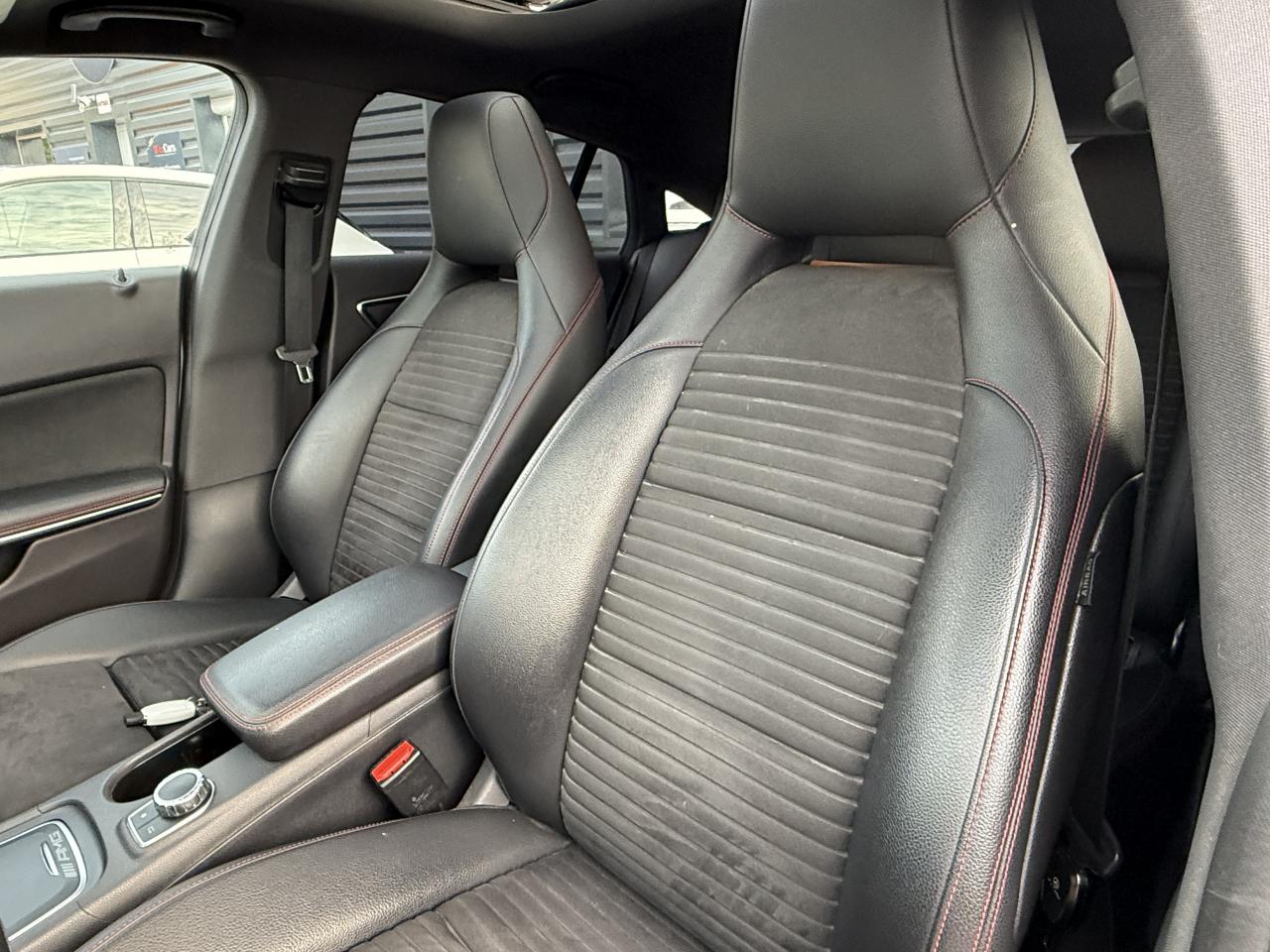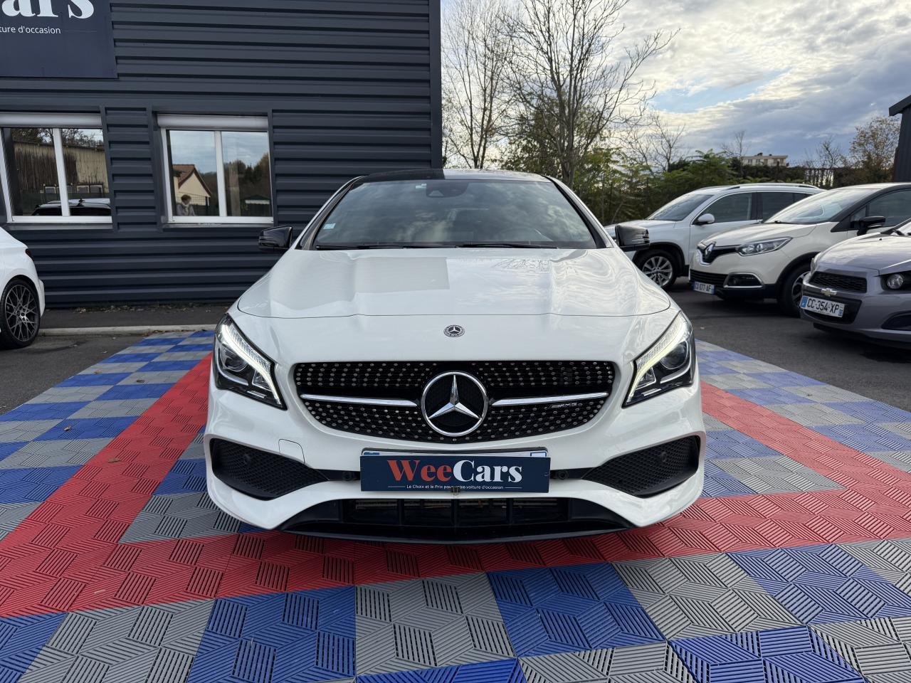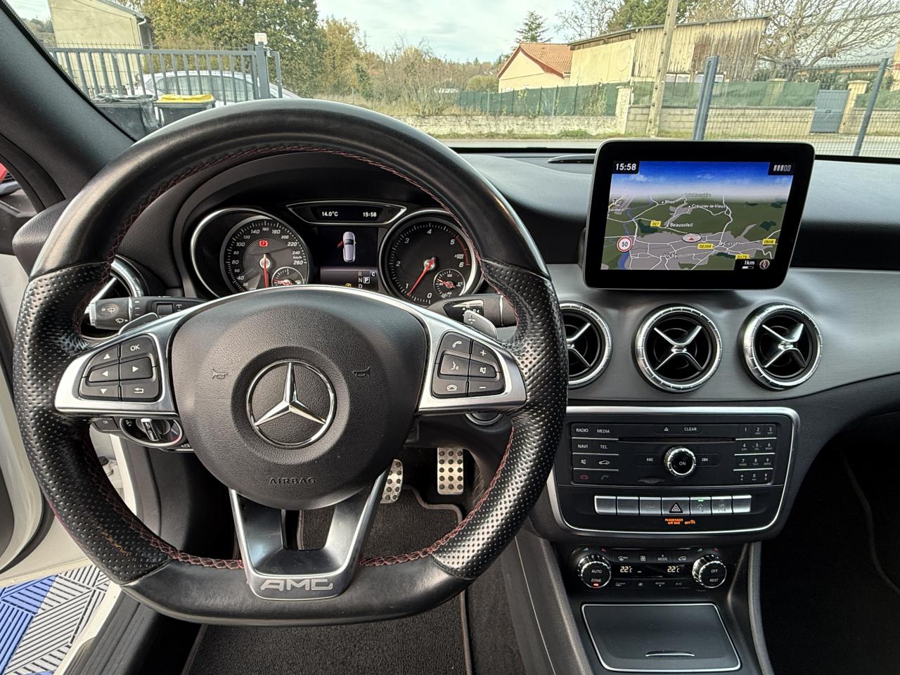 ABS (antiblocage de roues) et ASR (antipatinage)Accoudoir avant fixe avec vide-pochesAccoudoir central avant ajustable avec vide pochesADAPTIVE BRAKE avec fonction HOLD et aide au démarrage en côteAirbag genoux conducteurAirbags bassin intégrés aux sièges conducteur et passager avantAirbags frontaux à plusieurs seuils de déclenchement pour le conducteur et le passager avantAirbags latéraux et airbags rideauxAssistant de feux de routeAttention Assist : système de détection de somnolenceAudio 20 CD avec écran couleur 17,8 cm (7") et pré-installation pour Garmin MAP PILOT. Radio, double tuner, lecteur CD, Bluetooth, 2 ports USB et 1 SD card. Interface Média pour iPod ou iPhone intégréeBanquette arrière inclinable en position cargoBanquette arrière rabattable 1/3-2/3BAS (freinage d'urgence assisté)Boîte à gants éclairéeBoîte automatique à double embrayage 7 rapports 7G-DCT avec palettes de commandes au volantBuses d’aération avec cerclage et croix centrale chromés argentésCaméra de recul avec lignes de guidage et vue 180°Capot moteur actifCasier de rangement sous le plancher du coffreCeintures de sécurité à 3 points à toutes les placesCiel de pavillon noirClé design chroméeClignotant avec commande confort par impulsionsClimatisation automatique confort THERMOTRONIC à 2 zones avec affichage digital et réglages séparés conducteur/passagerColonne de direction réglable mécaniquement en hauteur et en profondeurCombiné d'instruments couleurs à 2 cadrans analogiques et visuel multifonctionsConnexion Bluetooth pour téléphone portable et clavier numérique intégréContrôle de pression des pneus ( TPMS )Couvercle sur vide-poches à l'avantDésactivation automatique de l'airbag passager AVDétecteur d'occupation du siège passager avantDétecteur de pluie et allumage automatique des projecteursDéverrouillage électrique du coffre depuis l'habitacleDirection paramétrique sportDYNAMIC SELECT : 4 modes de conduite (Confort, Sport, Eco ou Personnalisé) agissant sur le moteur et sa sonorité, la transmission et le train de roulementEclairage de secours en cas d'accidentESP (régulation de comportement dynamique)Feux antibrouillard arrièreFeux stop adaptatifsFiltre à particulesFixations ISOFIX pour sièges enfants sur places arrièreFonction d'arrêt/redémarrage "Stop/Start ECO" avec commutateur de désactivation manuelleFrein de parking électriqueFreinage d'urgence assisté actif : système d'avertissement des risques de collision et de pré-freinage incluant l'assistance au freinage adaptifGrand écran central 20,3 cm (8")Hayon EASY-PACK à ouverture/fermeture automatiqueIndicateur de température extérieureIndicateur dynamique de maintenance (ASSYST PLUS)Interface Média USB dans l'accoudoir central avantJantes alliage AMG 46 cm (18") design 5 doubles branches bicolores avec pneus 225/40 R18Kit anti-crevaison TIREFITLève-vitres électrique (x4) à commande séquentielle et dispositif anti-pincementMercedes-Benz Connect meOrdinateur de bordPack AMG Line extérieurPack AMG Line intérieurPack chrome extérieur incluant ceinture de caisse chroméePack d'éclairage intérieurPack GarminPack Sport BlackPare-chocs couleur carrosseriePilote automatique de stationnement : système d'aide au stationnement avec radars de proximité avant/arrière et fonction manoeuvres automatiquesPlancher du coffre réglable en hauteurPrise 12 V à l'arrièrePrise 12 V dans le compartiment de chargeProjecteurs hautes performances à technologie LED comprenant les feux de jours et la fonction d'éclairage en bleu "Coming Home"Rétroviseurs extérieurs électriques chauffants et asphériques avec rappels de clignotant intégrésRétroviseurs extérieurs rabattables électriquement et rétroviseurs extérieur gauche et intérieur jour/nuit automatiqueSécurité enfant avec verrouillage manuel des portes arrière et électrique des vitres arrièreSiège conducteur à réglages électriques avec fonction Mémoires pour le siège et le rétroviseur extérieur gaucheSiège conducteur réglable manuellement en hauteurSiège passager avant à réglages électriques avec fonction MémoiresSièges Sport intégrauxSoutien lombaire à 4 réglages pour conducteur et passagerTEMPOMAT (régulateur de vitesse) et SPEEDTRONIC (limiteur de vitesse)Toit ouvrant panoramique électrique avec store pare-soleil électrique, fonction de fermeture automatique en cas de pluie et protection anti-pincementVerrouillage centralisé à télécommande avec fonction verrouillage automatique désactivableVitres teintées vertesVolant multifonctions à 12 touches